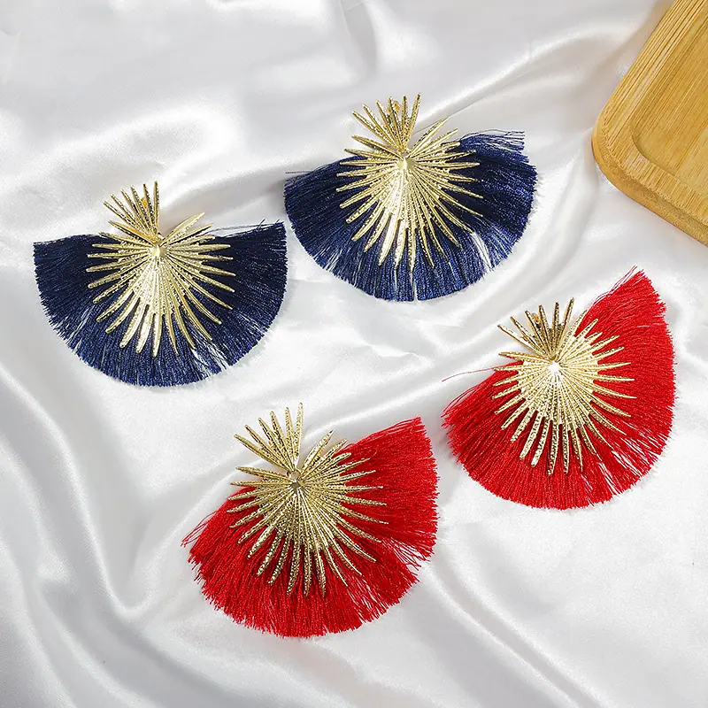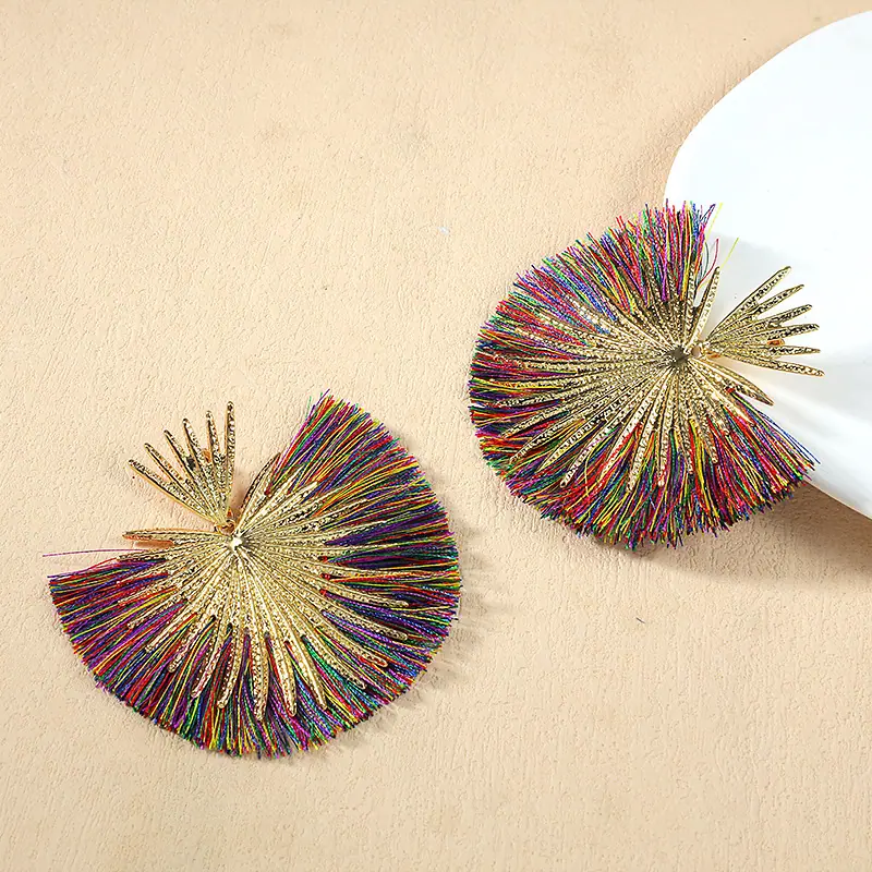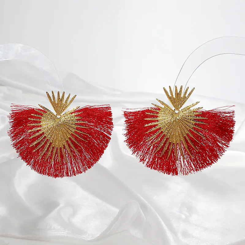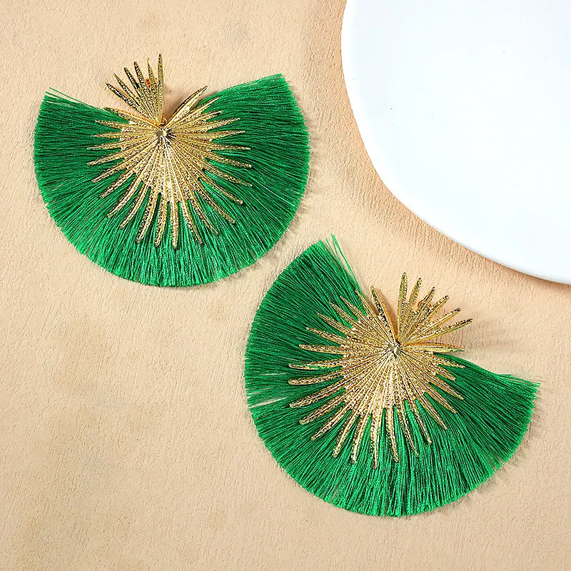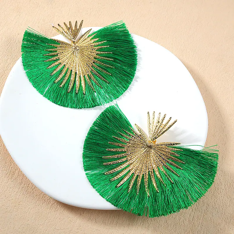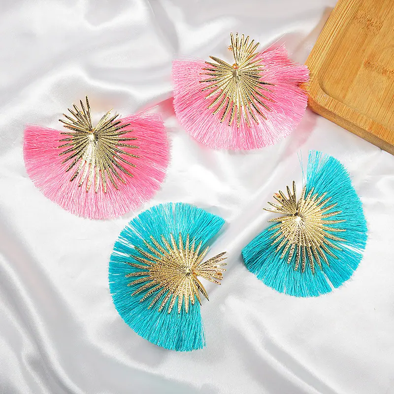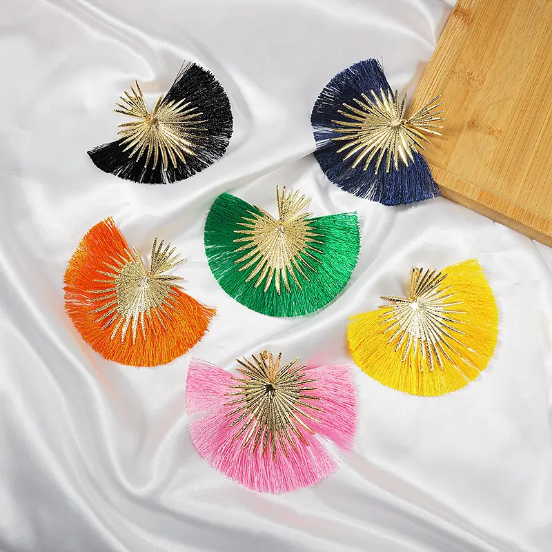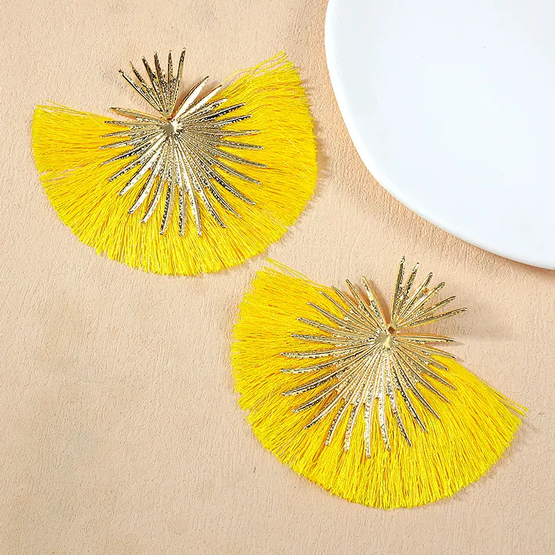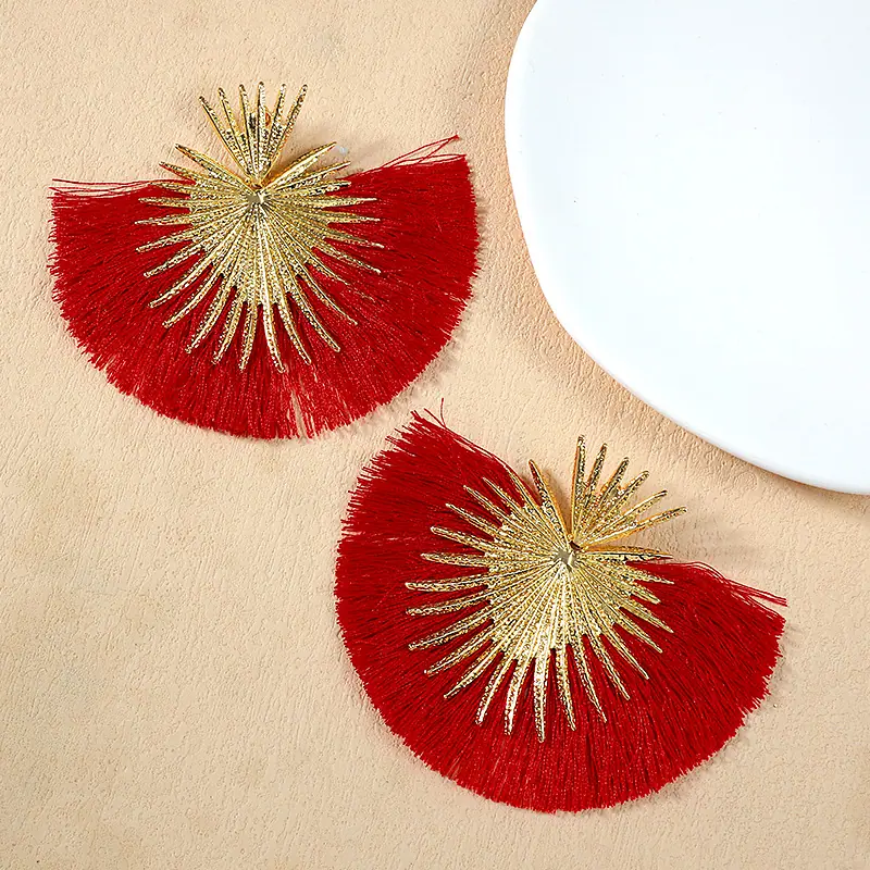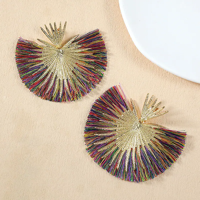 Aretes Europeos y Americanos Transfronterizos Retro Moda Elegantes con Borlas en Forma de Abanico Estilo Vacacional Elegantes Simples Exagerados Geométricos