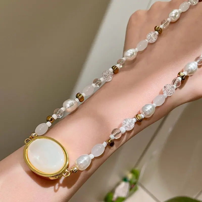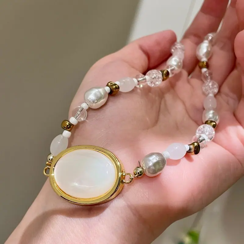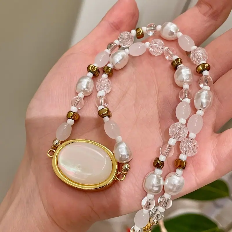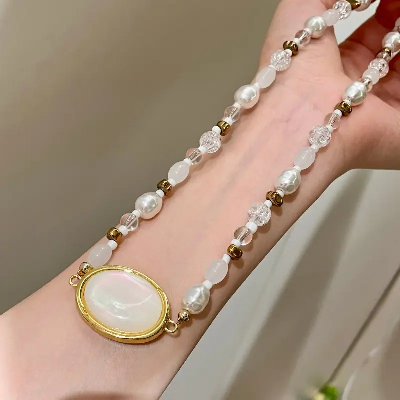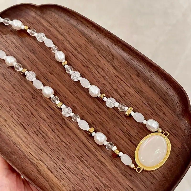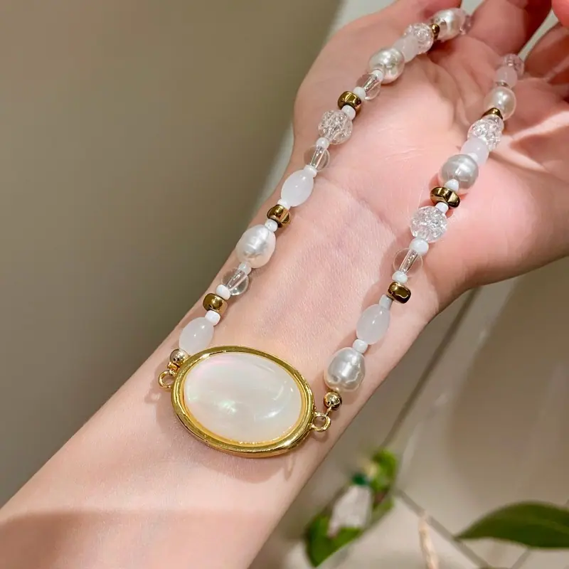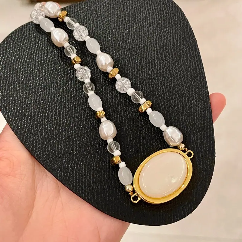 Collar Ovalado de Cristal con Cuentas de Lujo Ligero y Alta Gama Diseño Nicho Cadena Transparente para el Cuello Cadena de Clavícula de Perlas Accesorios