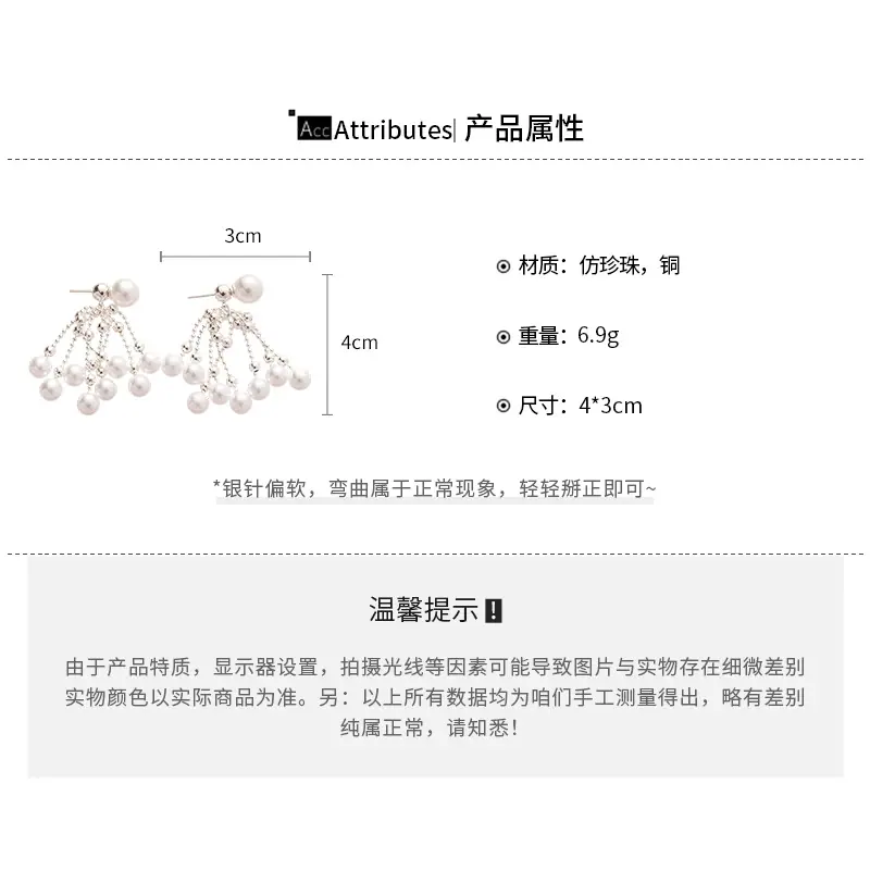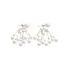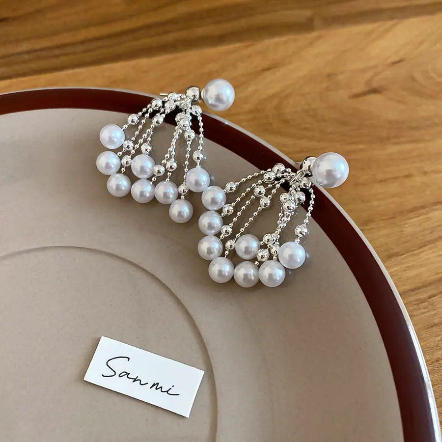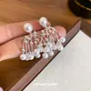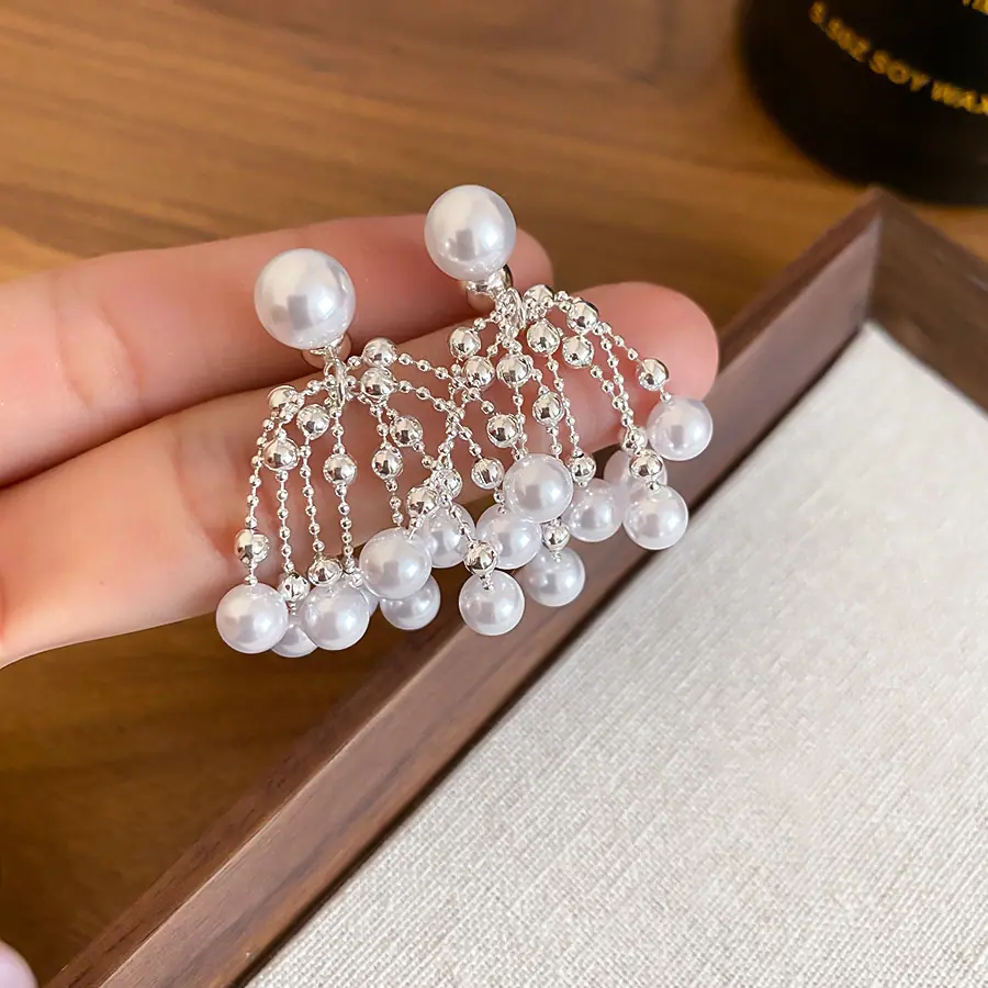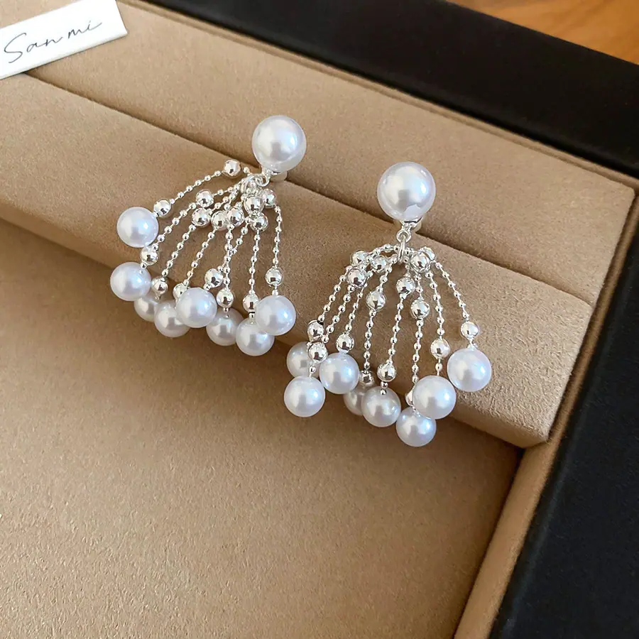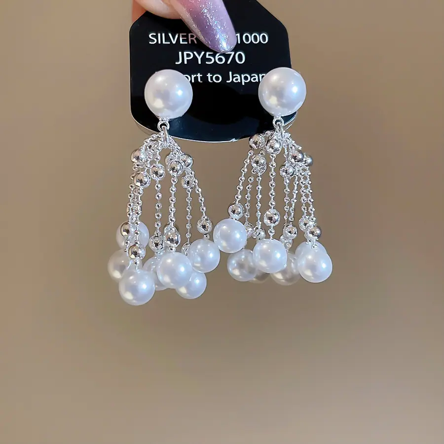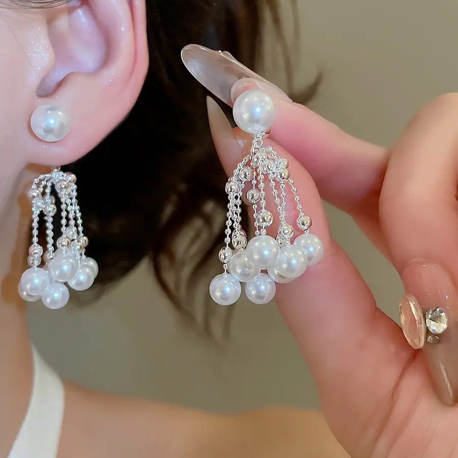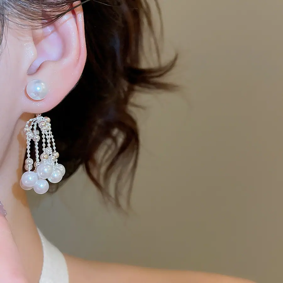 Aretes de Tuerca de Perlas con Borla Retro Francesa de Aguja de Plata Aretes Nicho de Alta Gama de Lujo Ligero Aretes Elegantes de Temperamento para Mujer