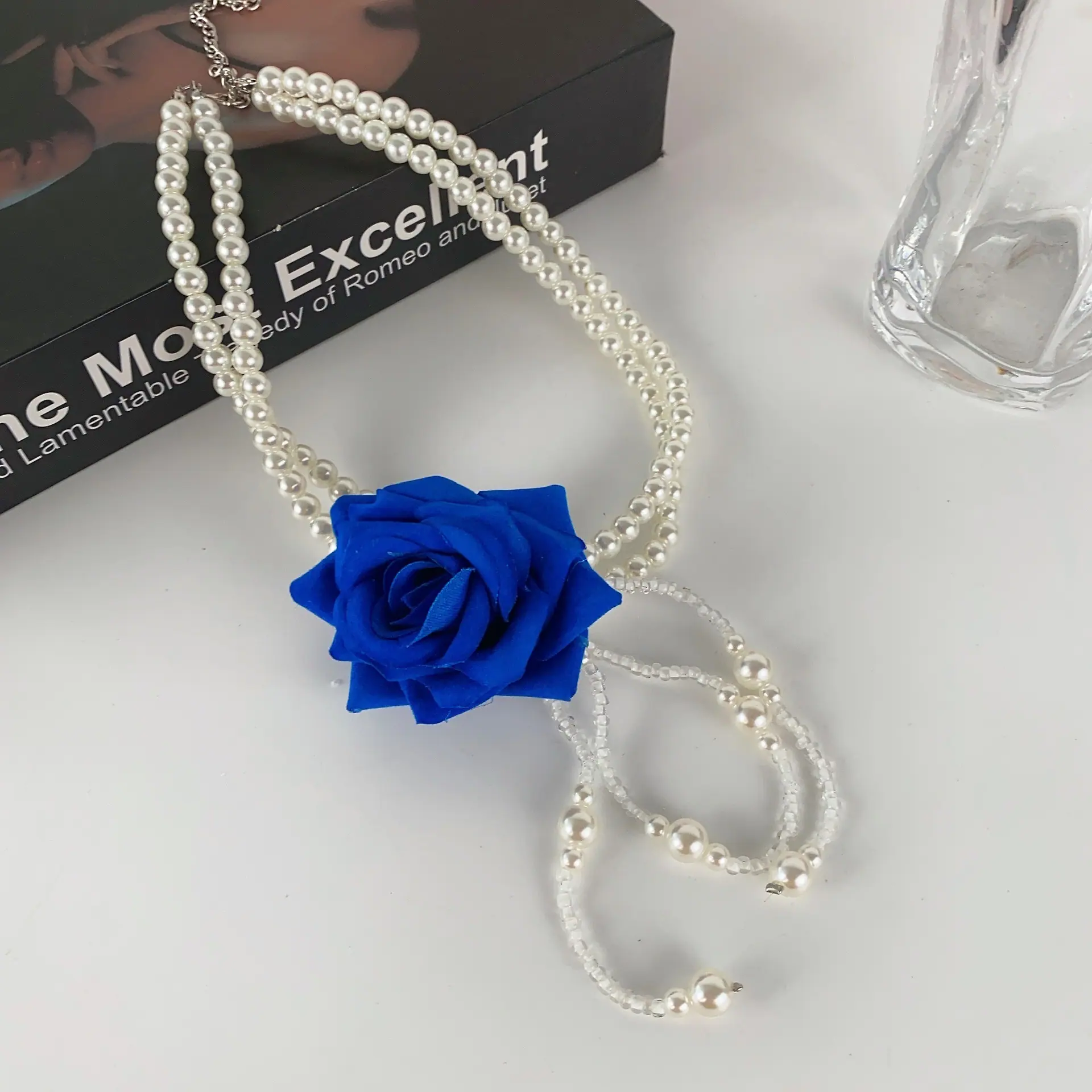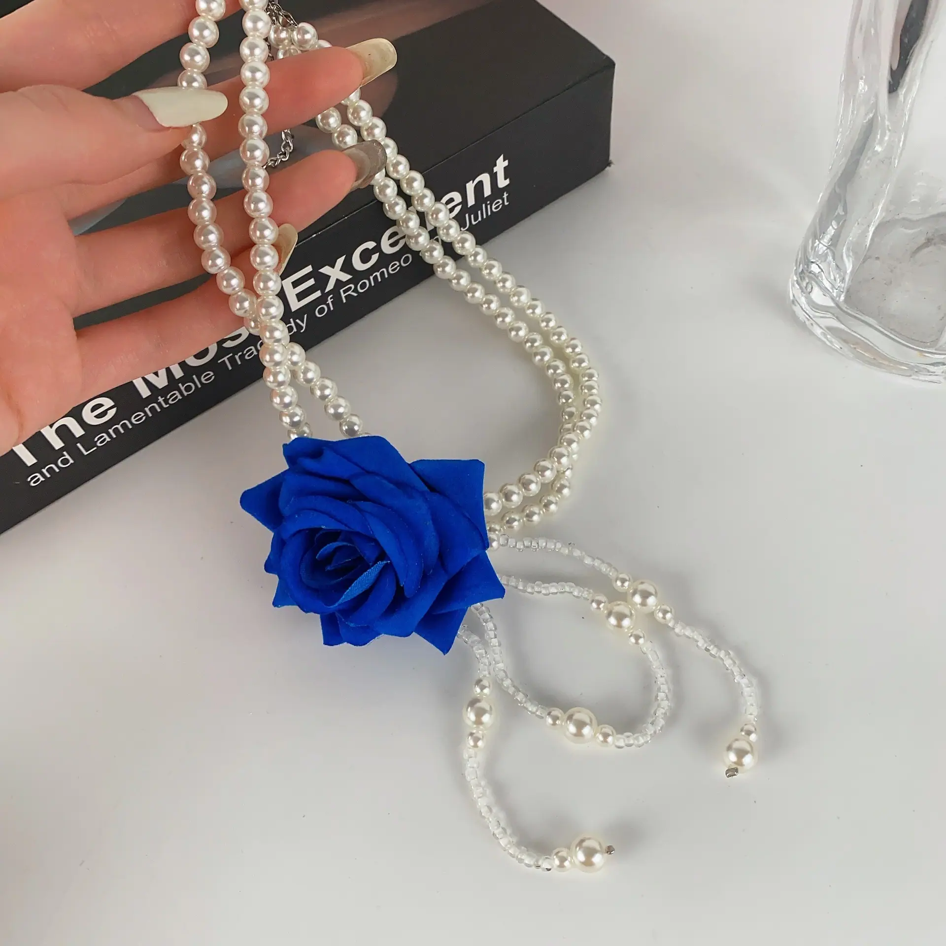 Compra Elegante Collar de Perlas de Rosa Azul Collar Choker Transfronterizo Europeo y Americano Cadena de Clavícula Apilada Versátil y a la Moda al por mayor en Joom.pro