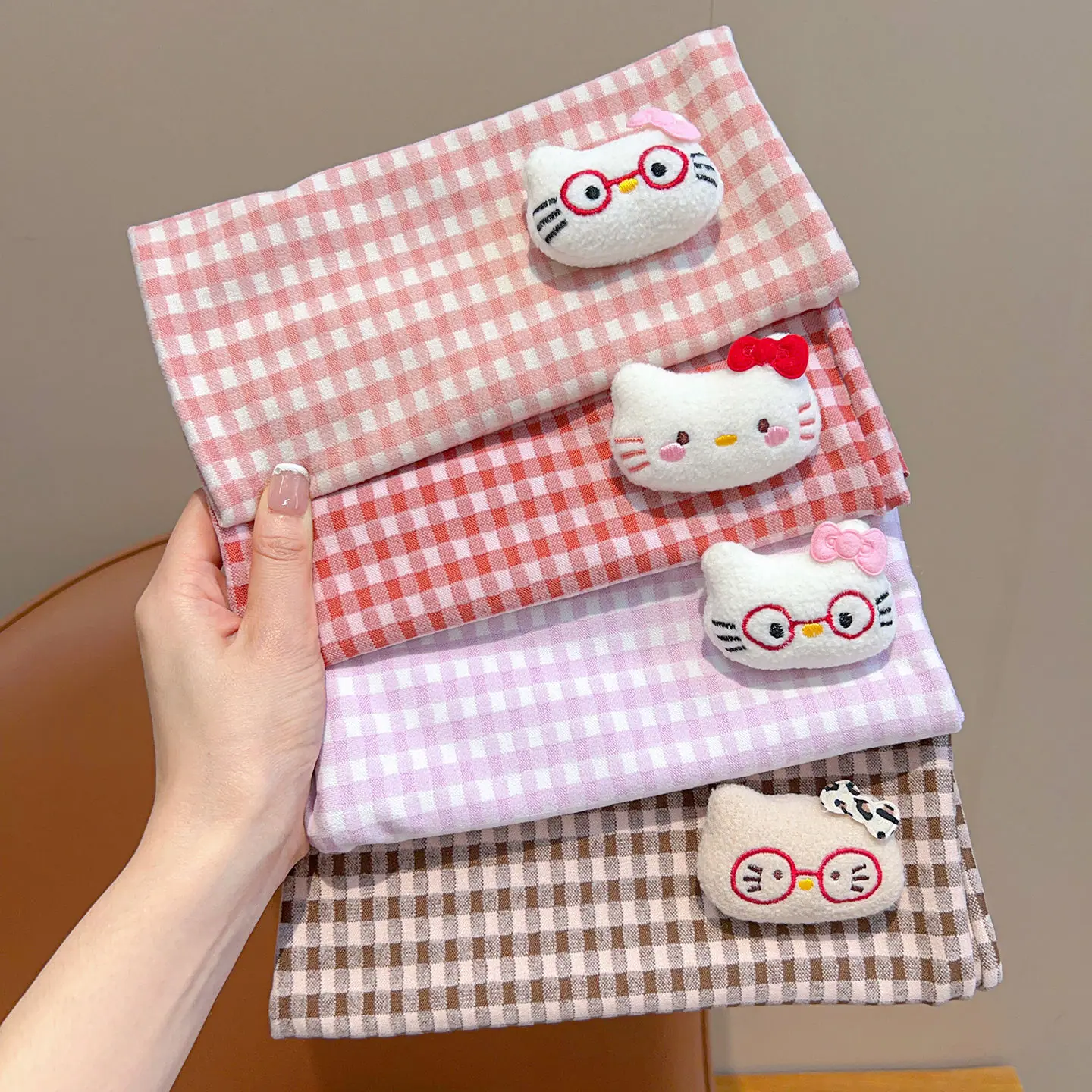 1# Brown Kitten Plaid Snood (Size approx. 31.5x22cm), 2#Red Kitten Plaid Snood (size approx. 31.5x22cm), 3#Pin...