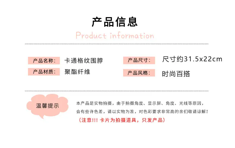 3#Pink Kitten Plaid Snood (Size approx. 31.5x22cm)