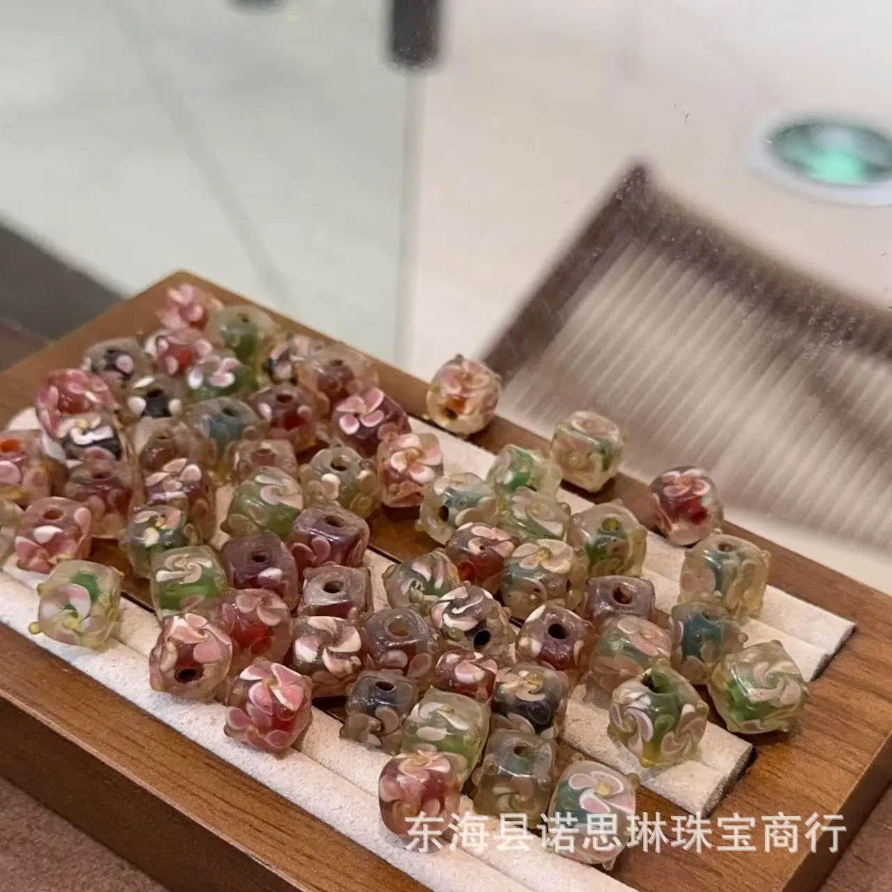 Old glass square flower beads