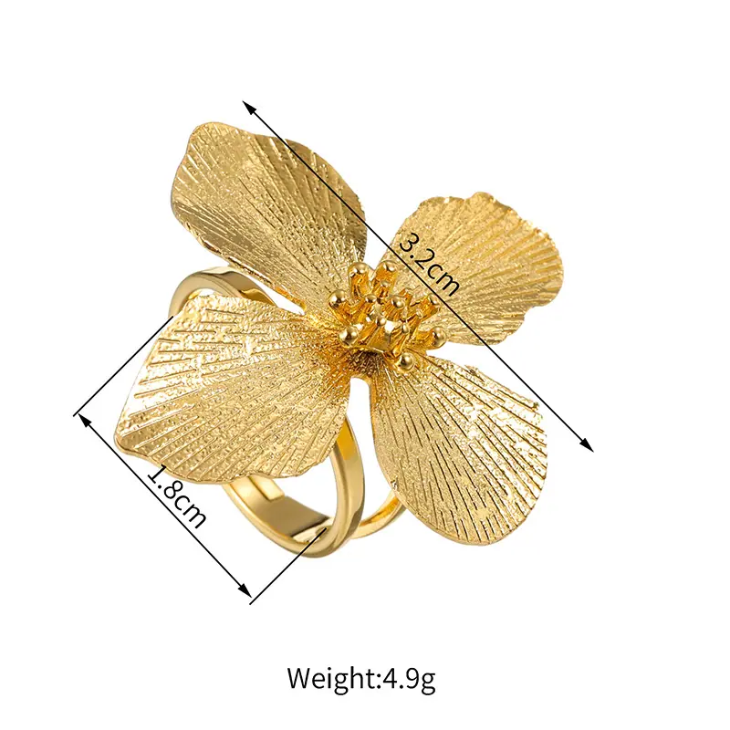Anillo de flor dorada estilo bohemio ins de venta caliente transfronteriza acero de titanio no se desvanece personalidad exquisito anillo abierto