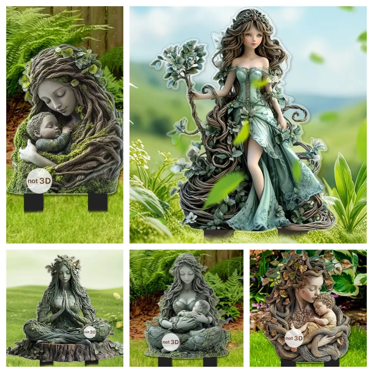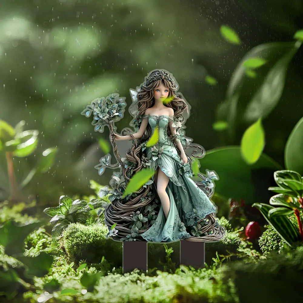 Hada Verde Transfronteriza Hada Hada Hermosa Acrílico 2D Exterior Jardín Patio Estaca Plantada Maceta Decoraciones de Plantas