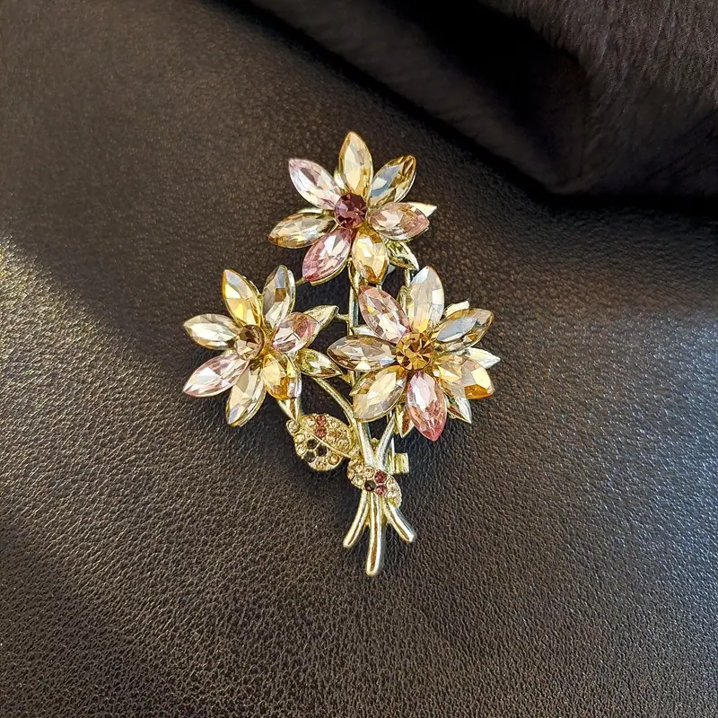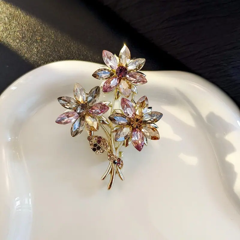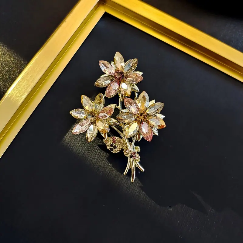 Nuevo Broche de Flor de Cristal de Alta Gama Nicho Alta Gama Moda Corsage Exquisito Pin Accesorios para Traje de Ropa de Mujer