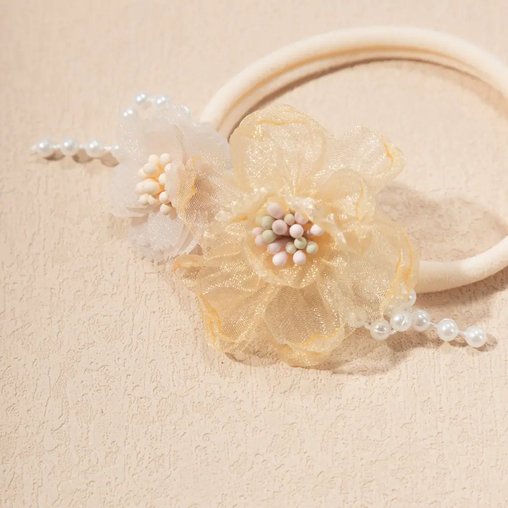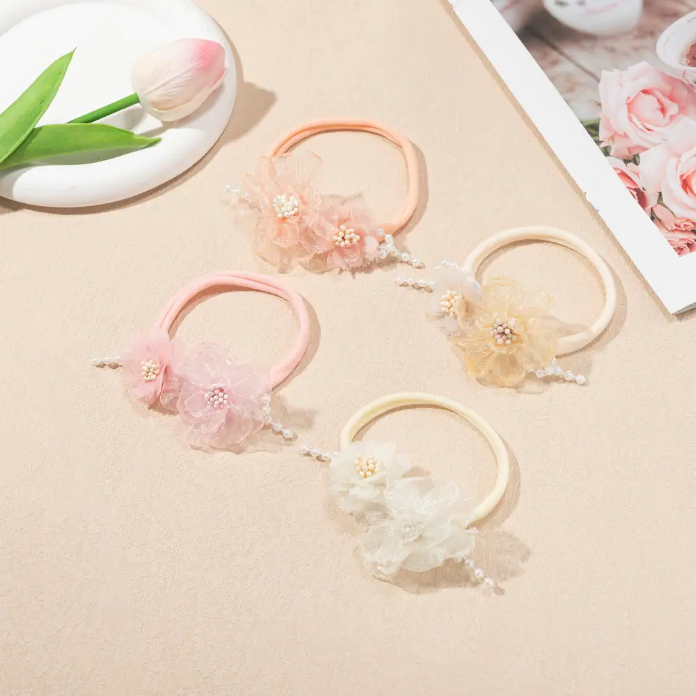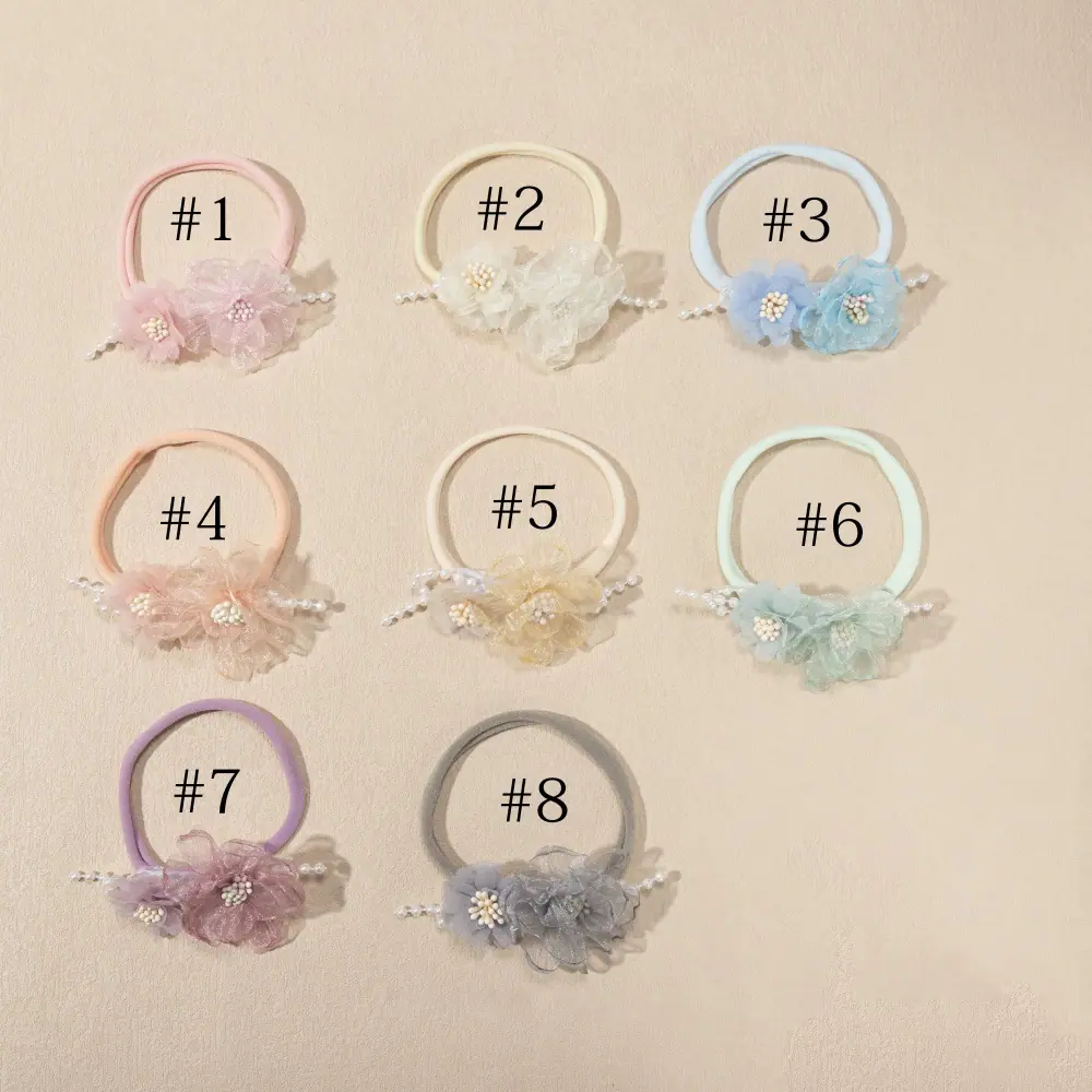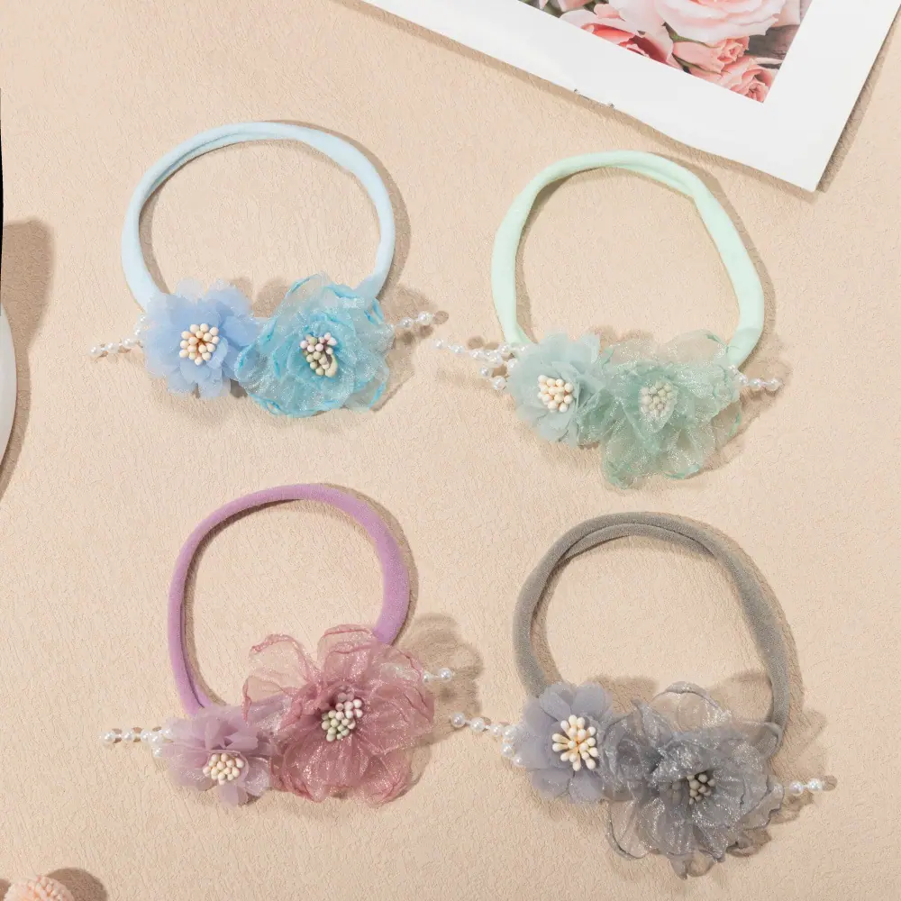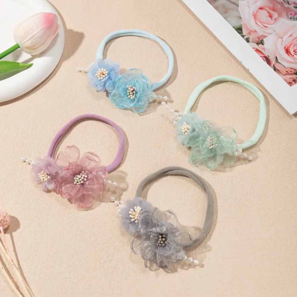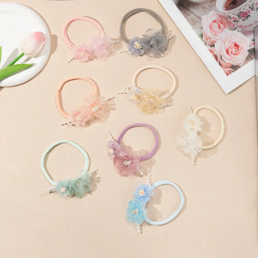 Europeo y Americano Nuevo Niños Malla Cabeza Flor Accesorios para el Cabello Diadema Bebé Flor de Encaje Bebé Suave Elástico Diadema Fina
