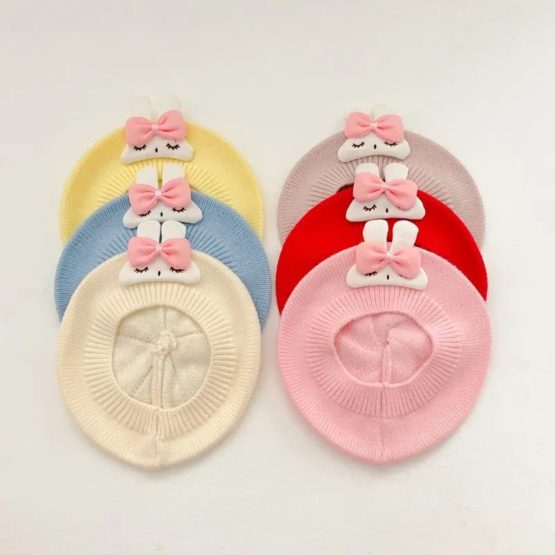 Sombrero de Bebé Primavera Otoño Boina Infantil Lindo Conejo Sombrero de Pintor de Bebé Otoño Invierno Sombrero de Lana a Prueba de Viento para Niñas