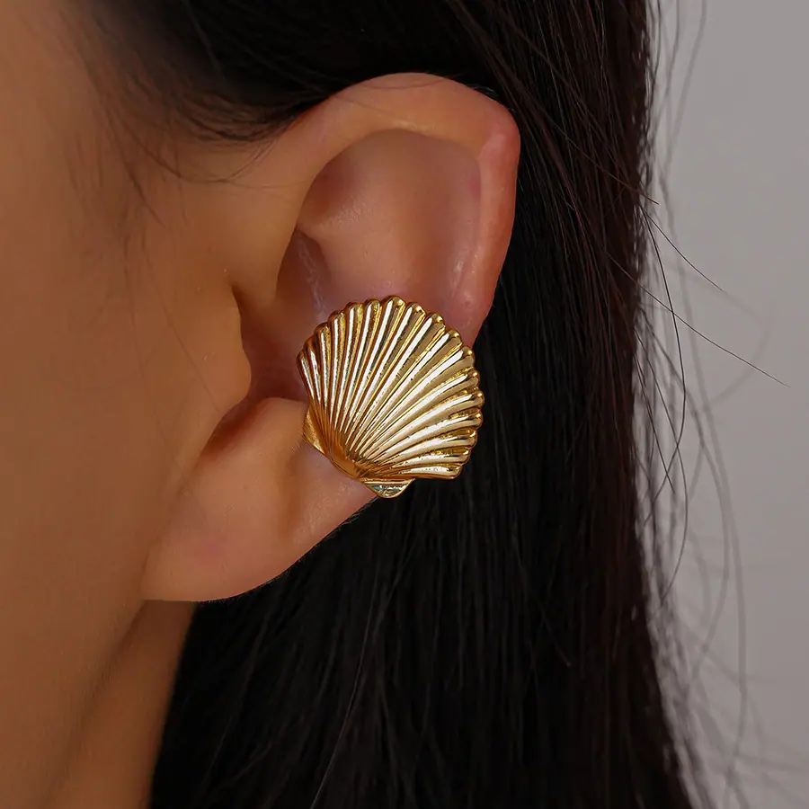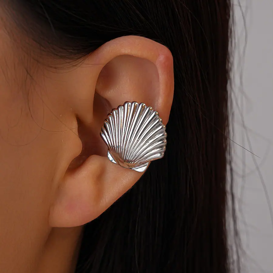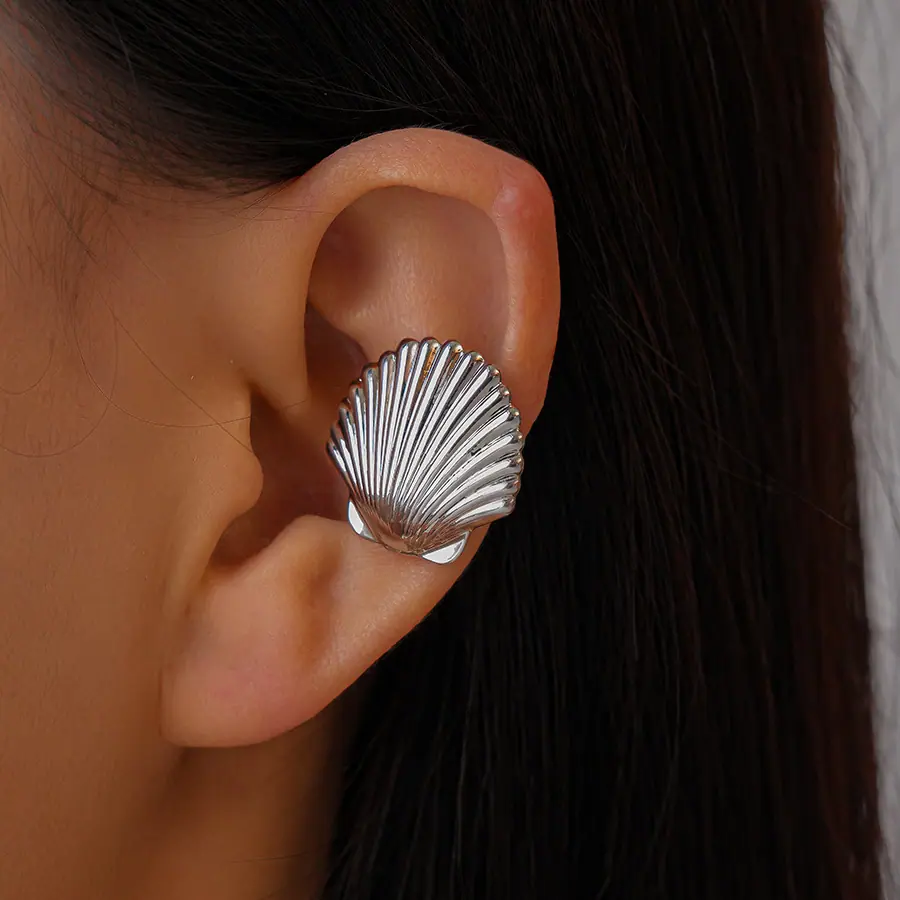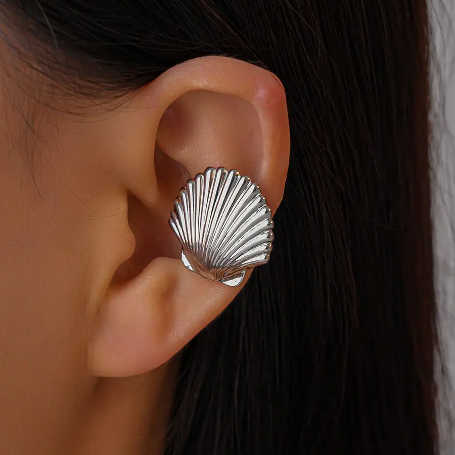 Concha de Textura Brillante Transfronteriza Europea y Americana Puño de Oreja Sin Perforación Personalidad de Nicho Única Temperamento Aretes de Gama Alta Mujeres
