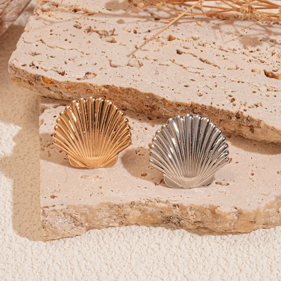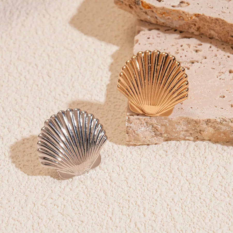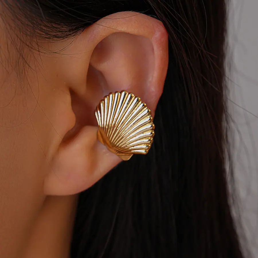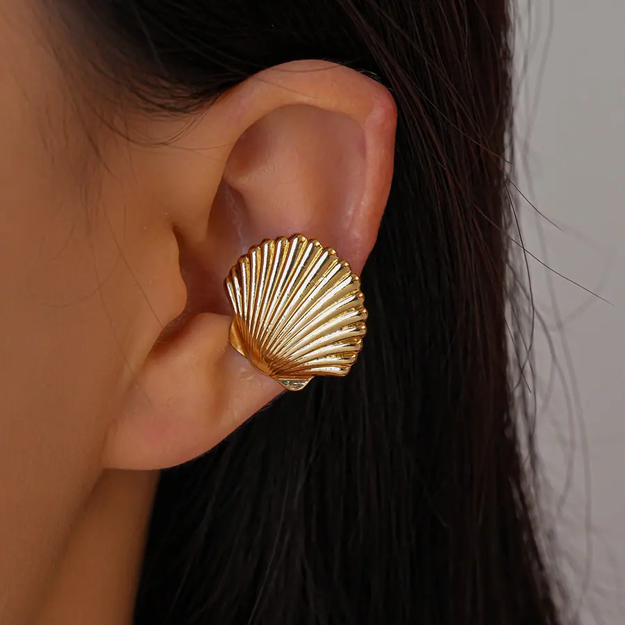 Concha de Textura Brillante Transfronteriza Europea y Americana Puño de Oreja Sin Perforación Personalidad de Nicho Única Temperamento Aretes de Gama Alta Mujeres