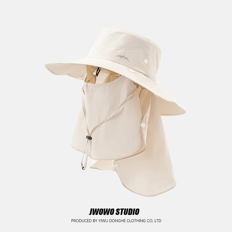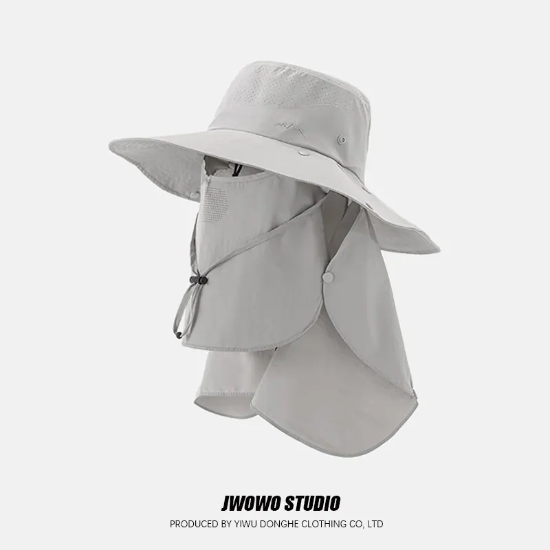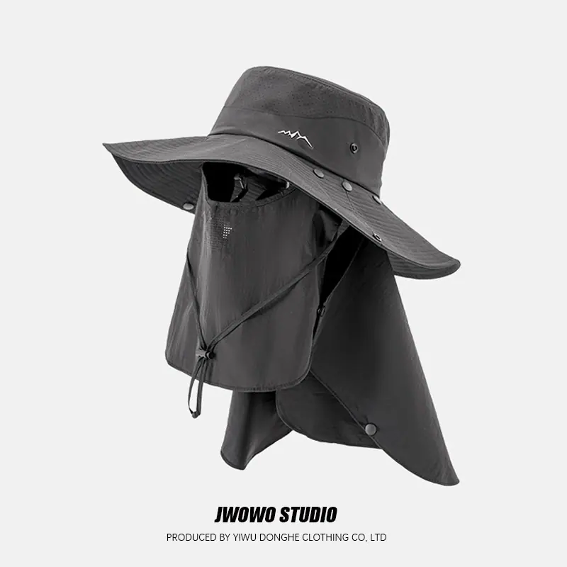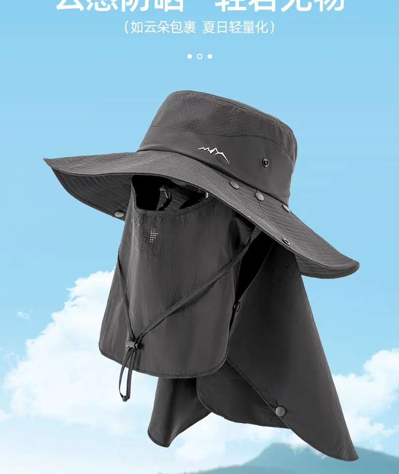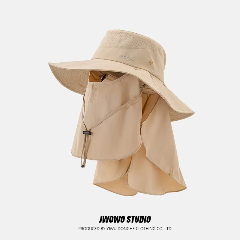 Sombrero de Sol de Verano para Hombre, Mascarilla Protectora Solar para Cara Completa para Exteriores, Sombrero de Montañismo Anti-UV, Sombrero de Pescador Delgado