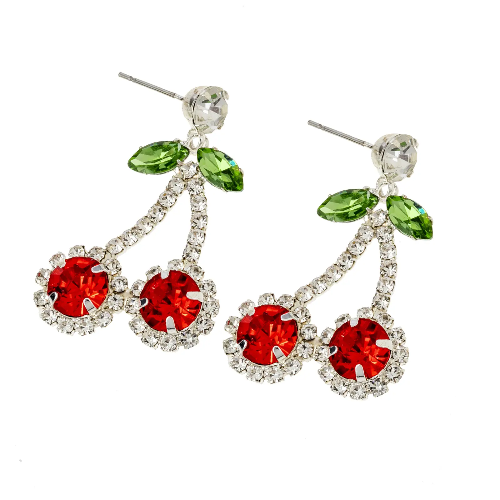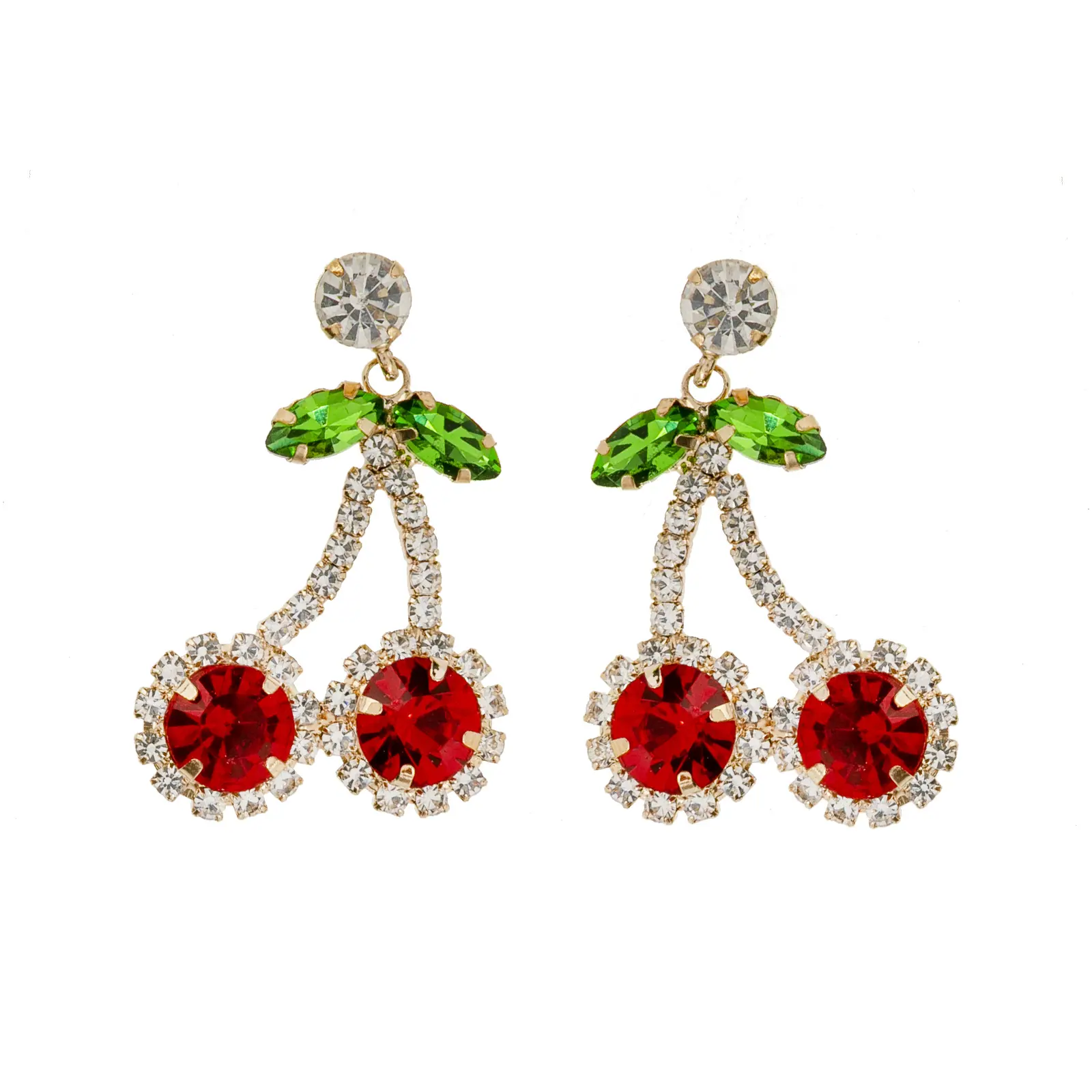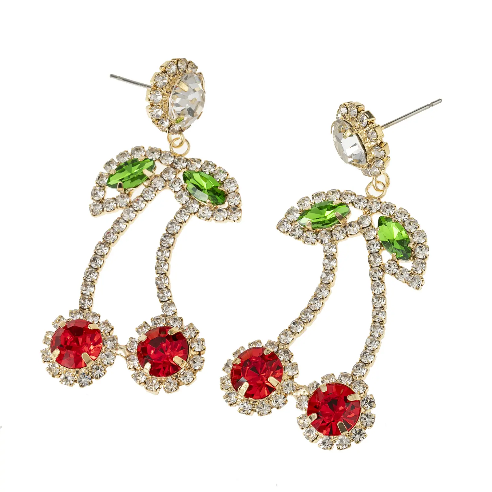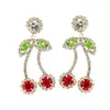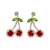 Aretes de Moda Europea y Americana Transfronteriza Nuevo Diseño de Cereza Roja con Pedrería Aretes Colgantes Personalizados con Diamantes al por Mayor para Mujer
