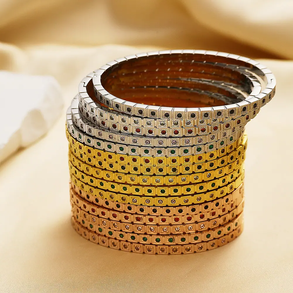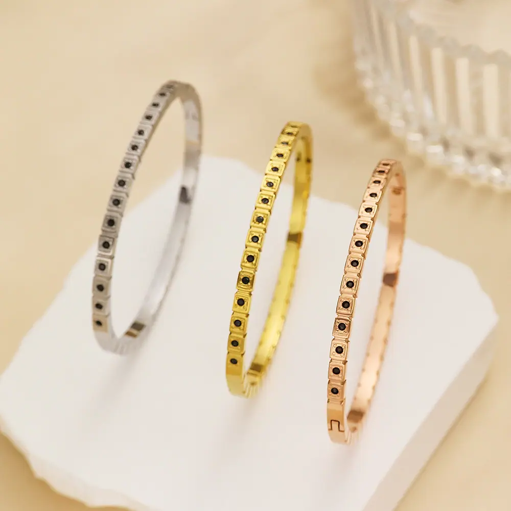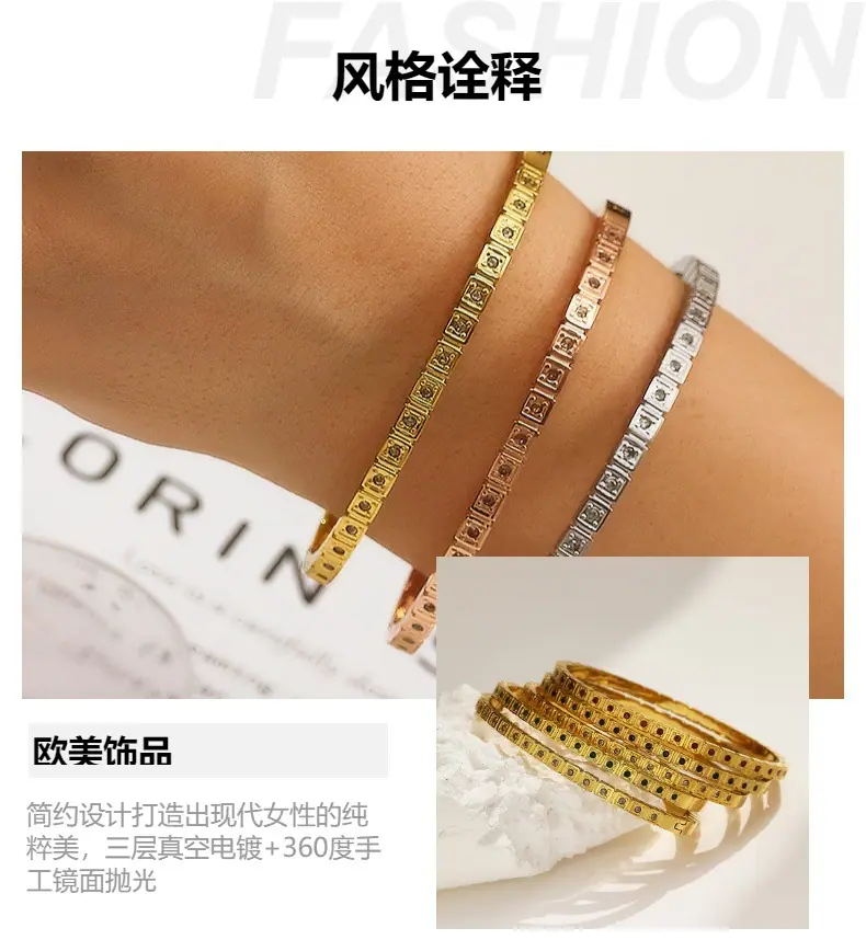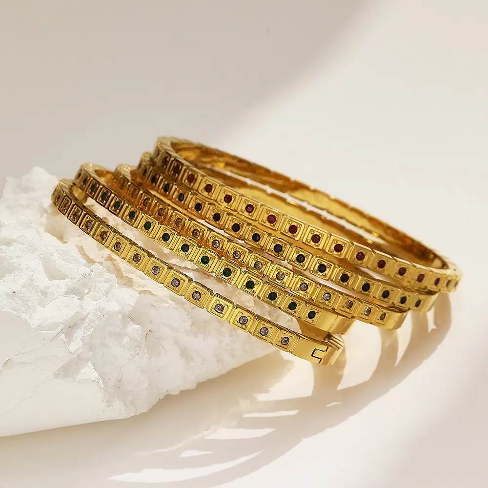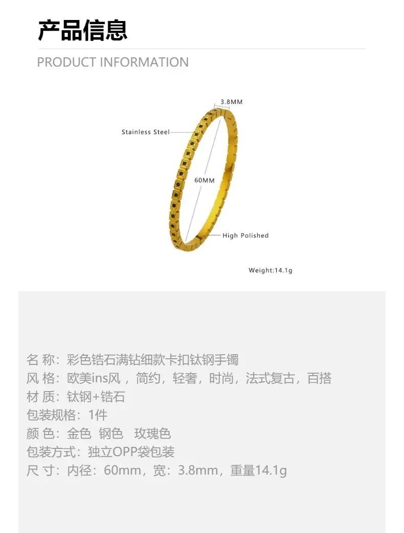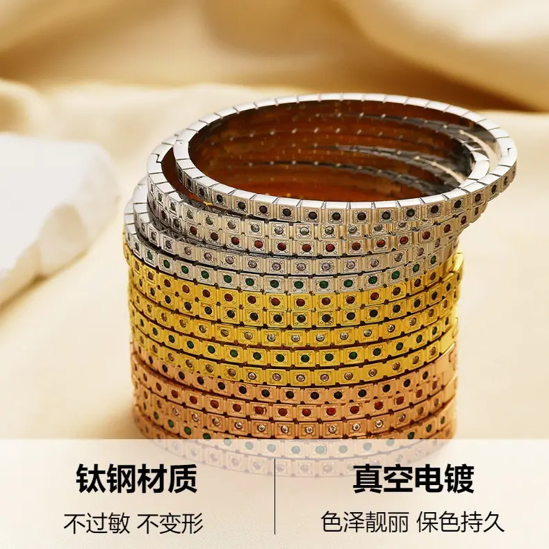 European and american retro high-end color zircon fine buckle stainless steel bracelet for women wholesale