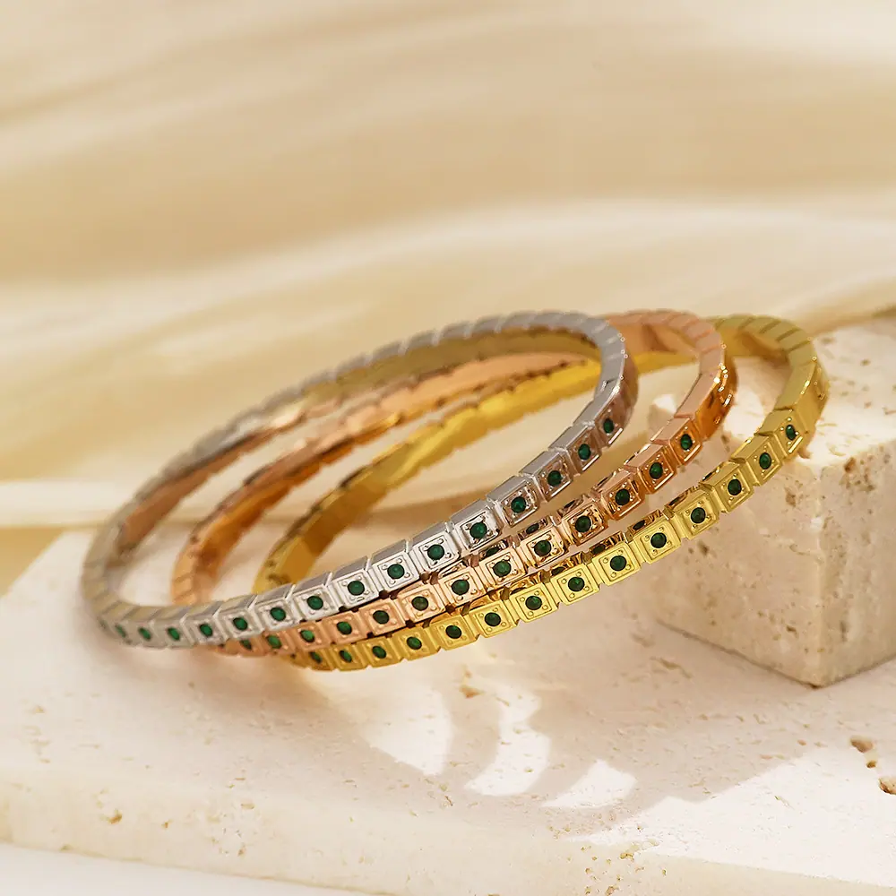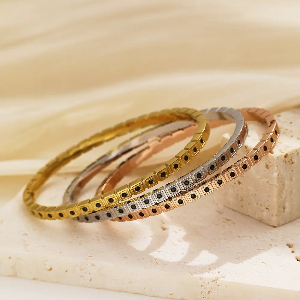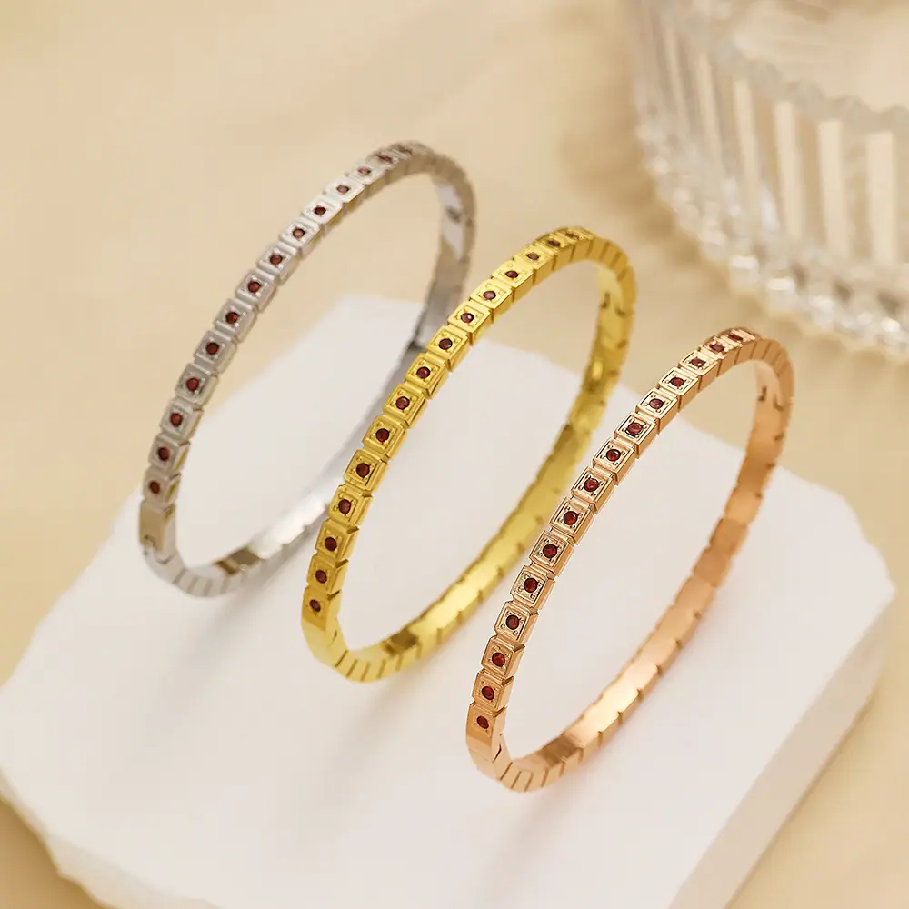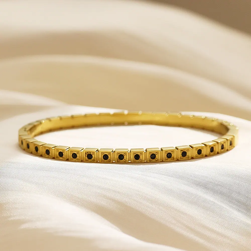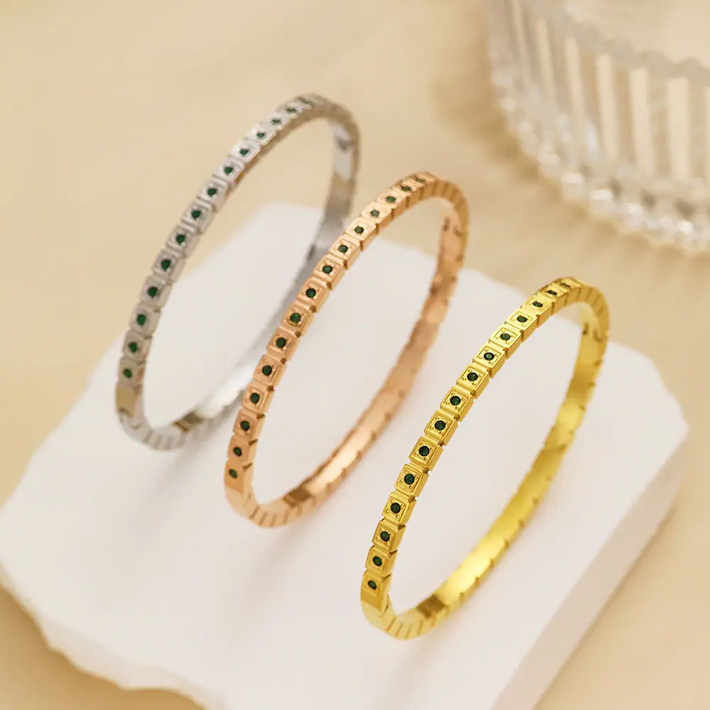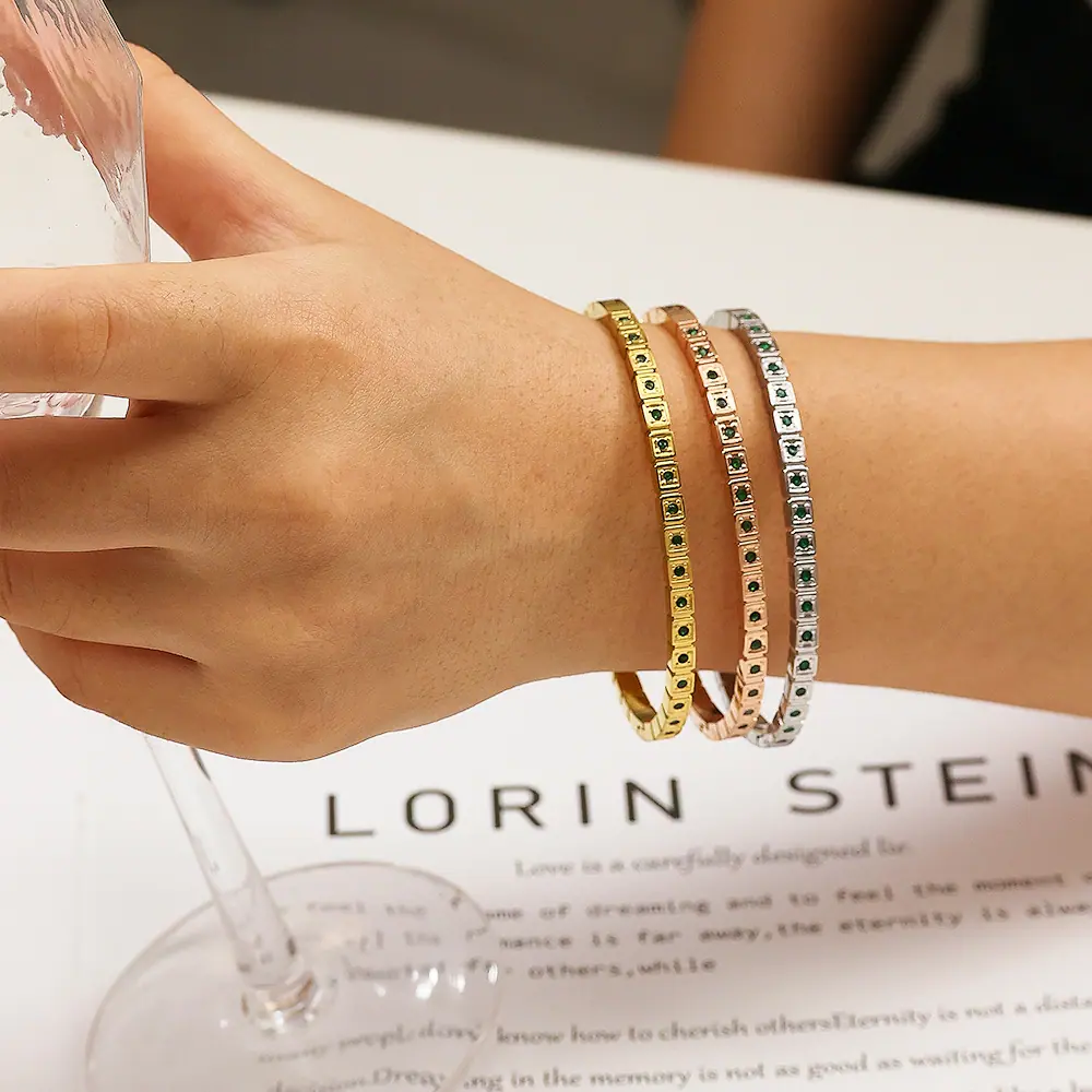 European and american retro high-end color zircon fine buckle stainless steel bracelet for women wholesale