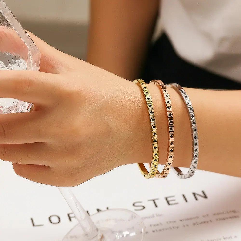 Pulsera de Moda Estilo Ins Europeo y Americano Pulsera de Circonio a Cuadros Cuadrados Colorida de Diamantes Completos Fina Pulsera de Acero Inoxidable para Mujer