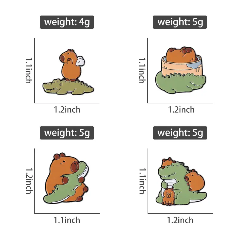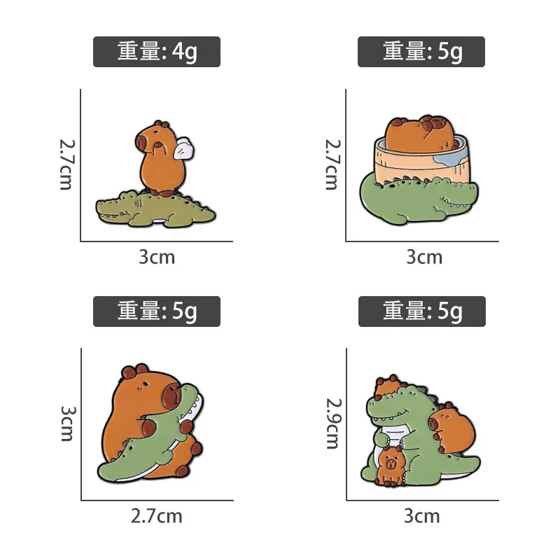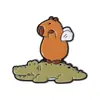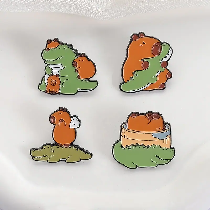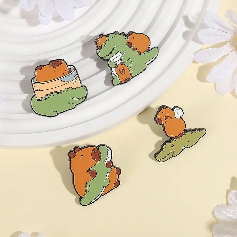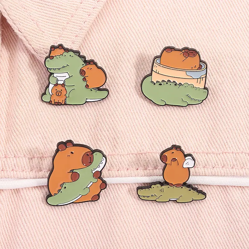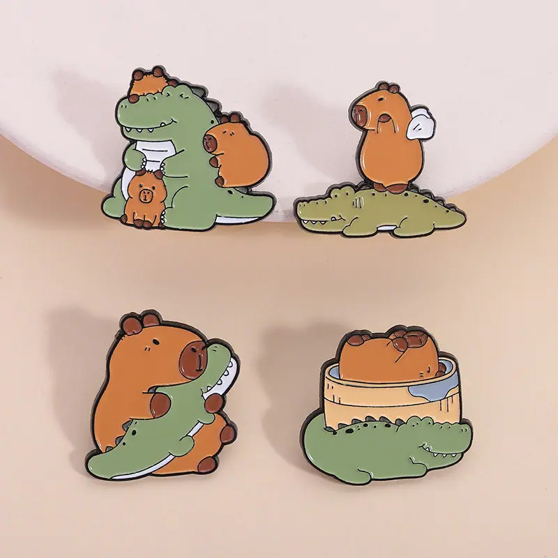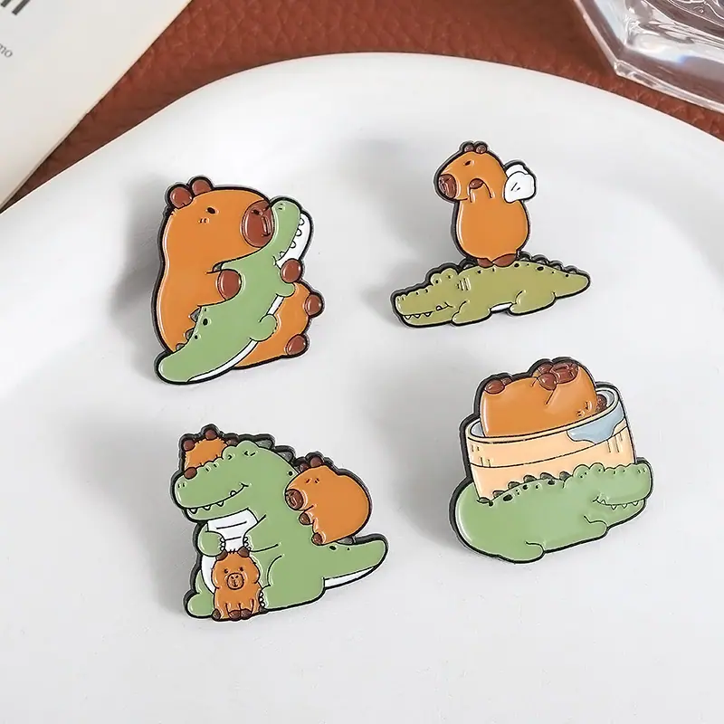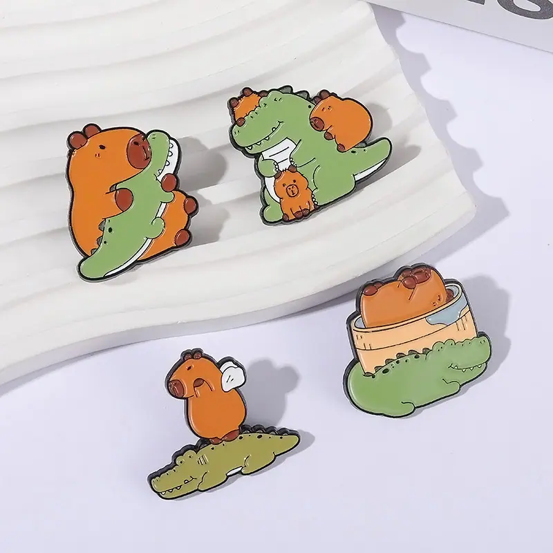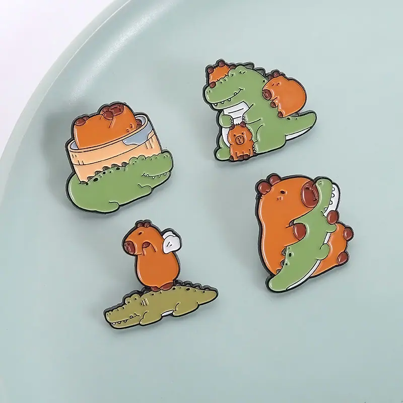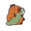 Insignia de metal con pintura esmaltada con patrón de cocodrilo de capibara de nuevo diseño de venta caliente transfronteriza, broche de animal lindo de dibujos animados creativo