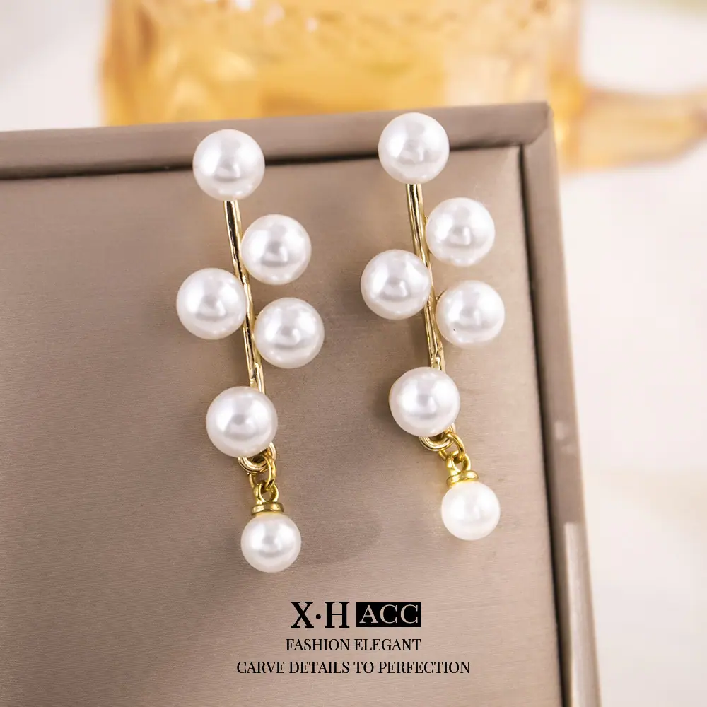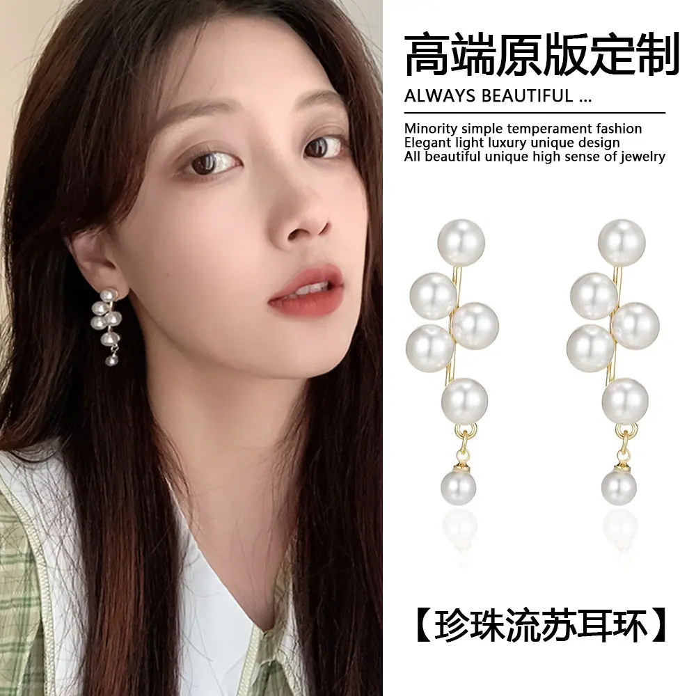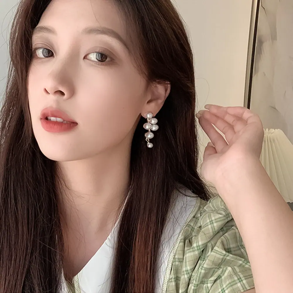 Aretes de Botón de Perla de Racimo de Uvas Francesas Aguja de Plata Nicho Lujo Ligero Elegantes Aretes de Borla Nicho Aretes de Diseño de Temperamento