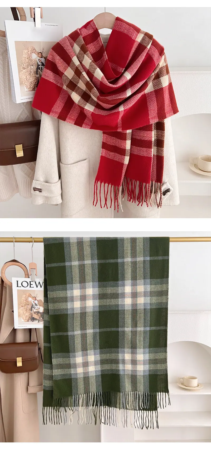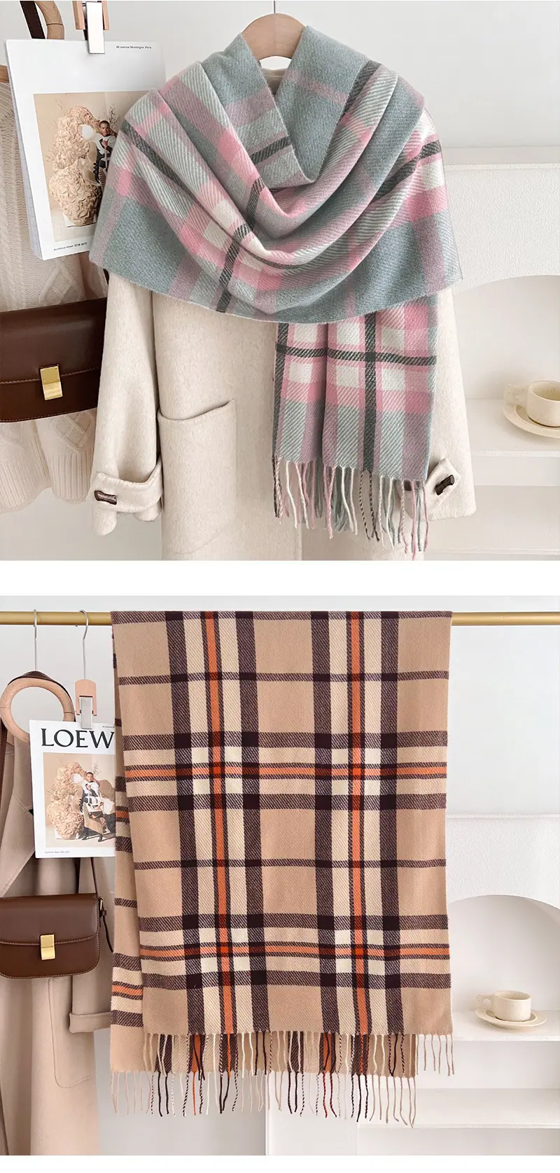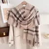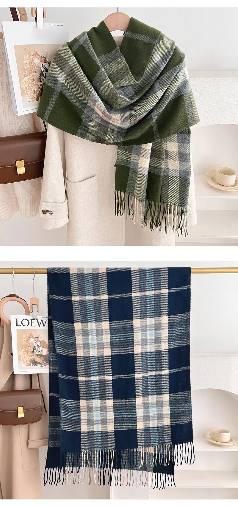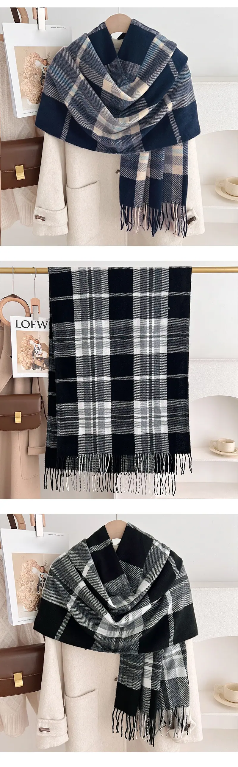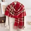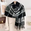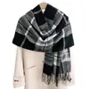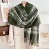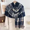 Bufanda de cuadros de cachemira de imitación retro para mujer, atmósfera, otoño e invierno, nuevo estilo coreano, chal de cuadros, pañuelo para el cuello cálido grueso