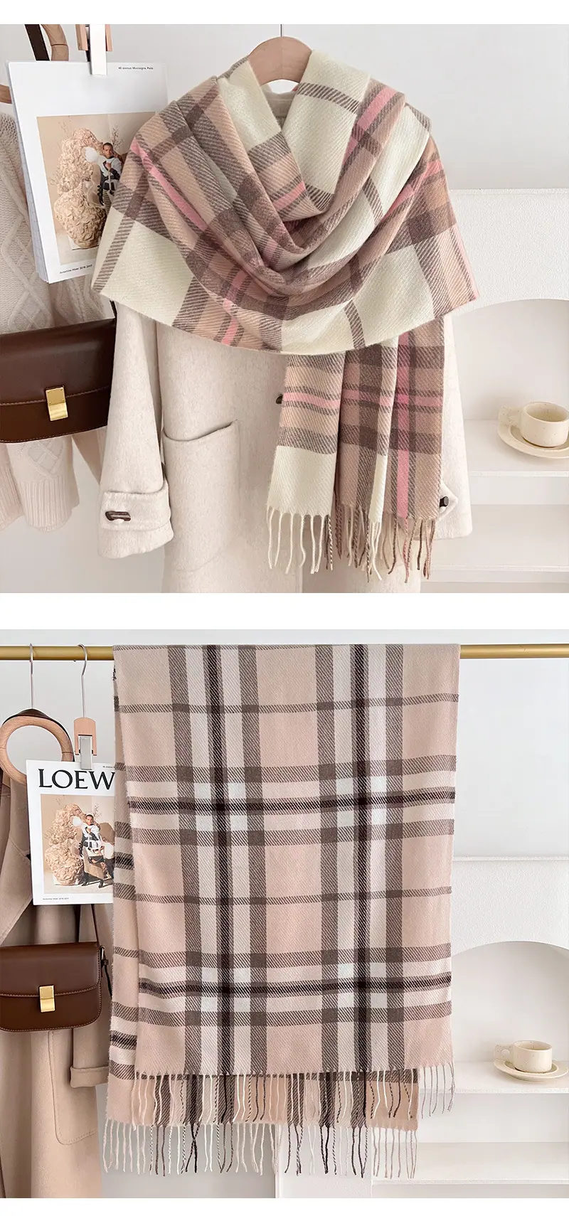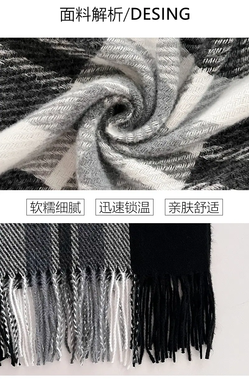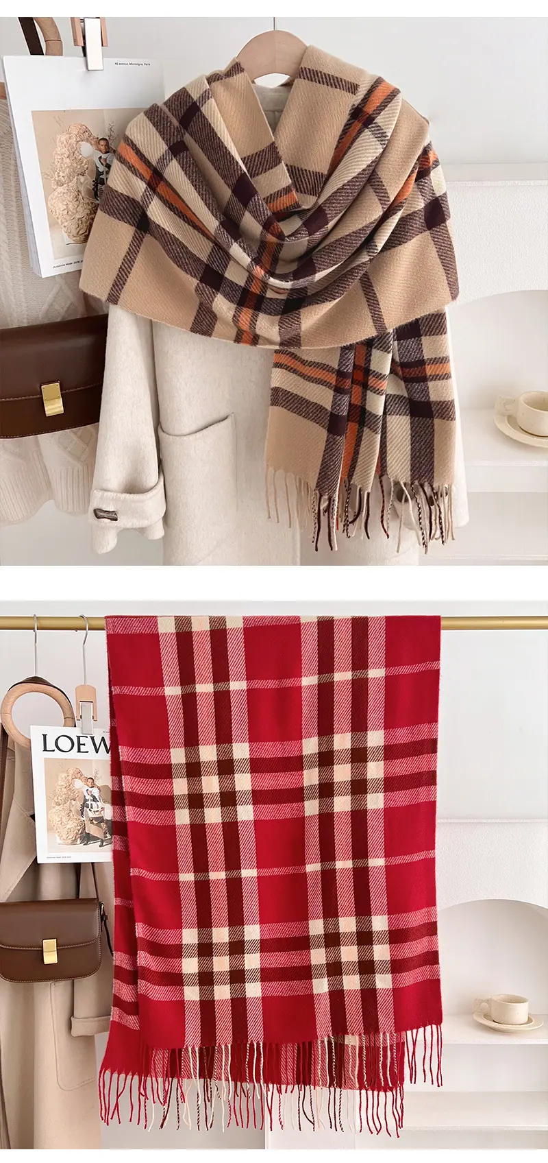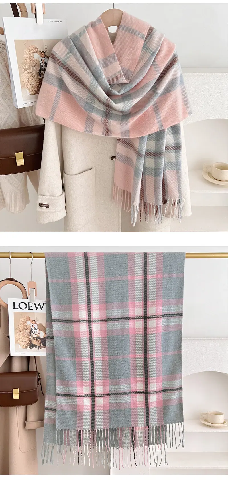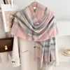 Bufanda de cuadros de cachemira de imitación retro para mujer, atmósfera, otoño e invierno, nuevo estilo coreano, chal de cuadros, pañuelo para el cuello cálido grueso
