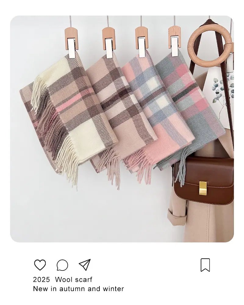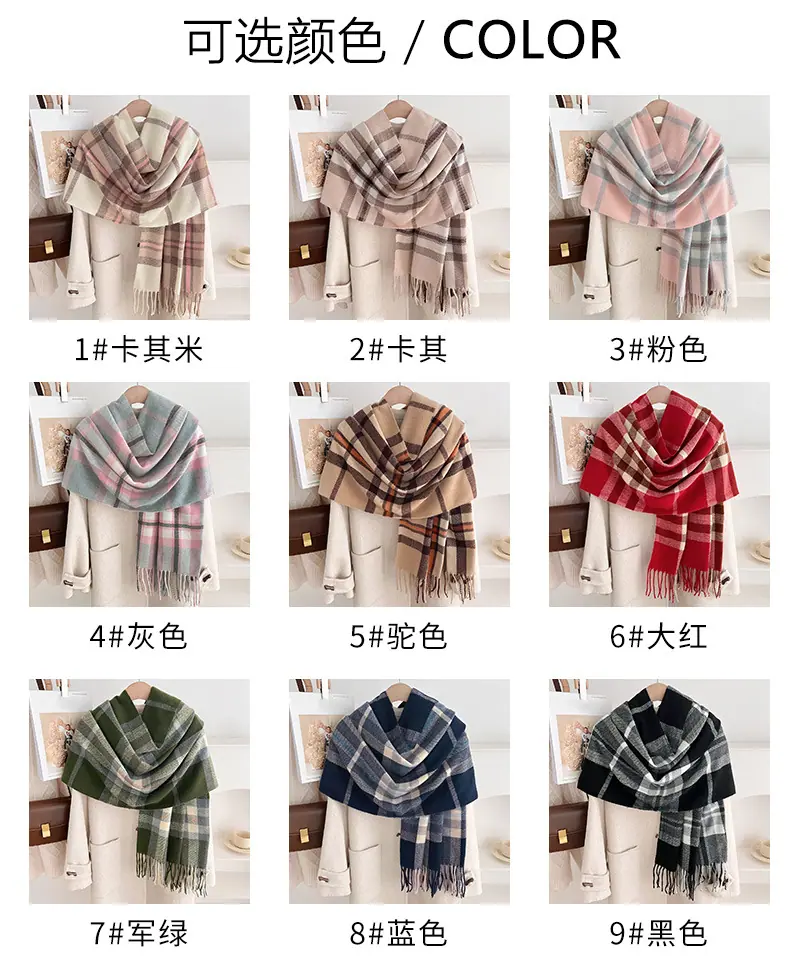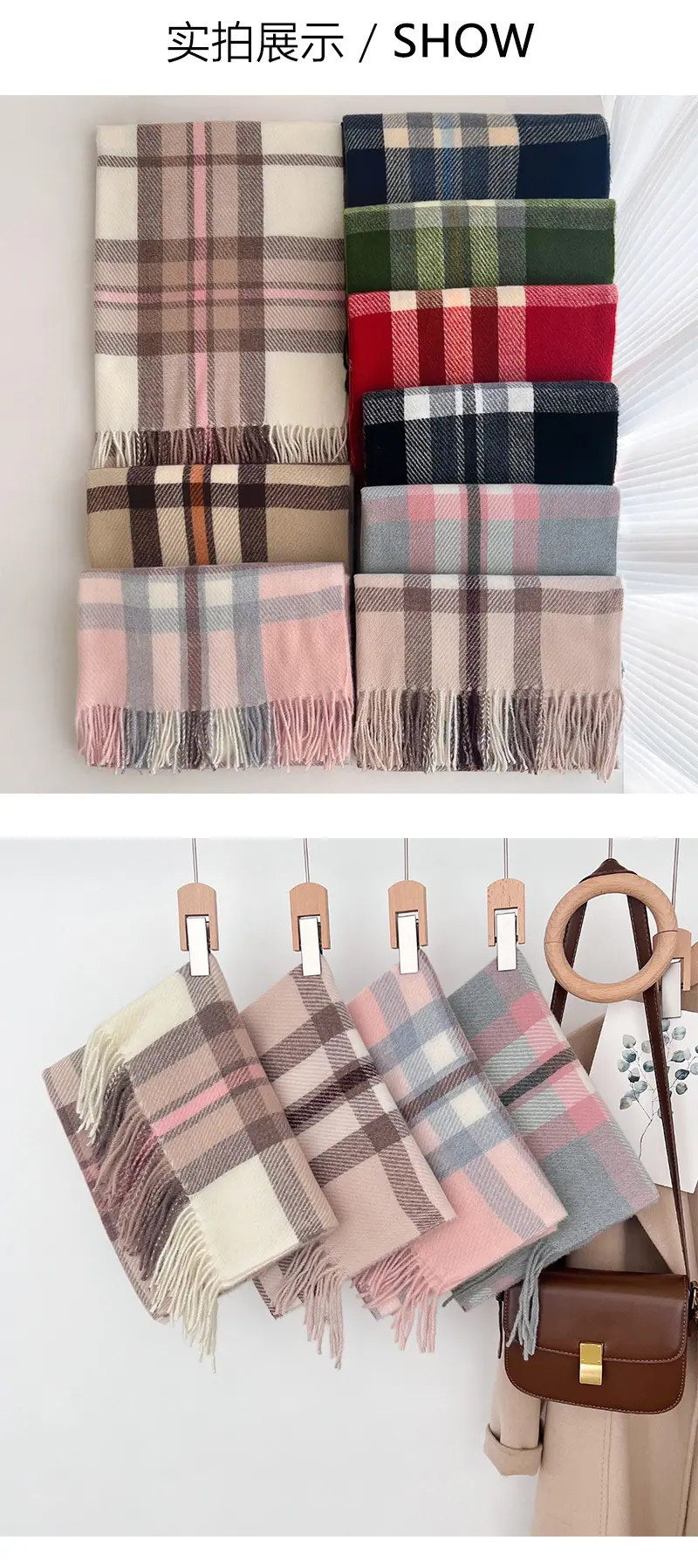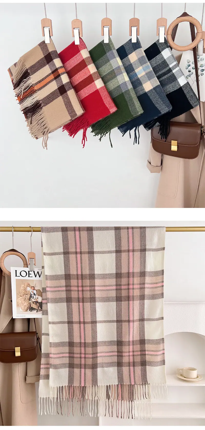 Compra Bufanda de cuadros de cachemira de imitación retro para mujer, atmósfera, otoño e invierno, nuevo estilo coreano, chal de cuadros, pañuelo para el cuello cálido grueso al por mayor en Joom.pro