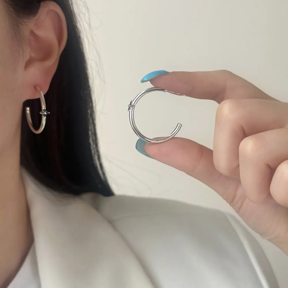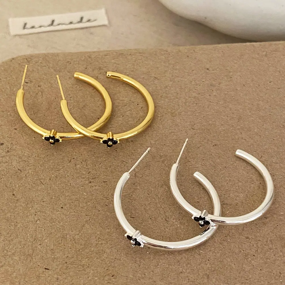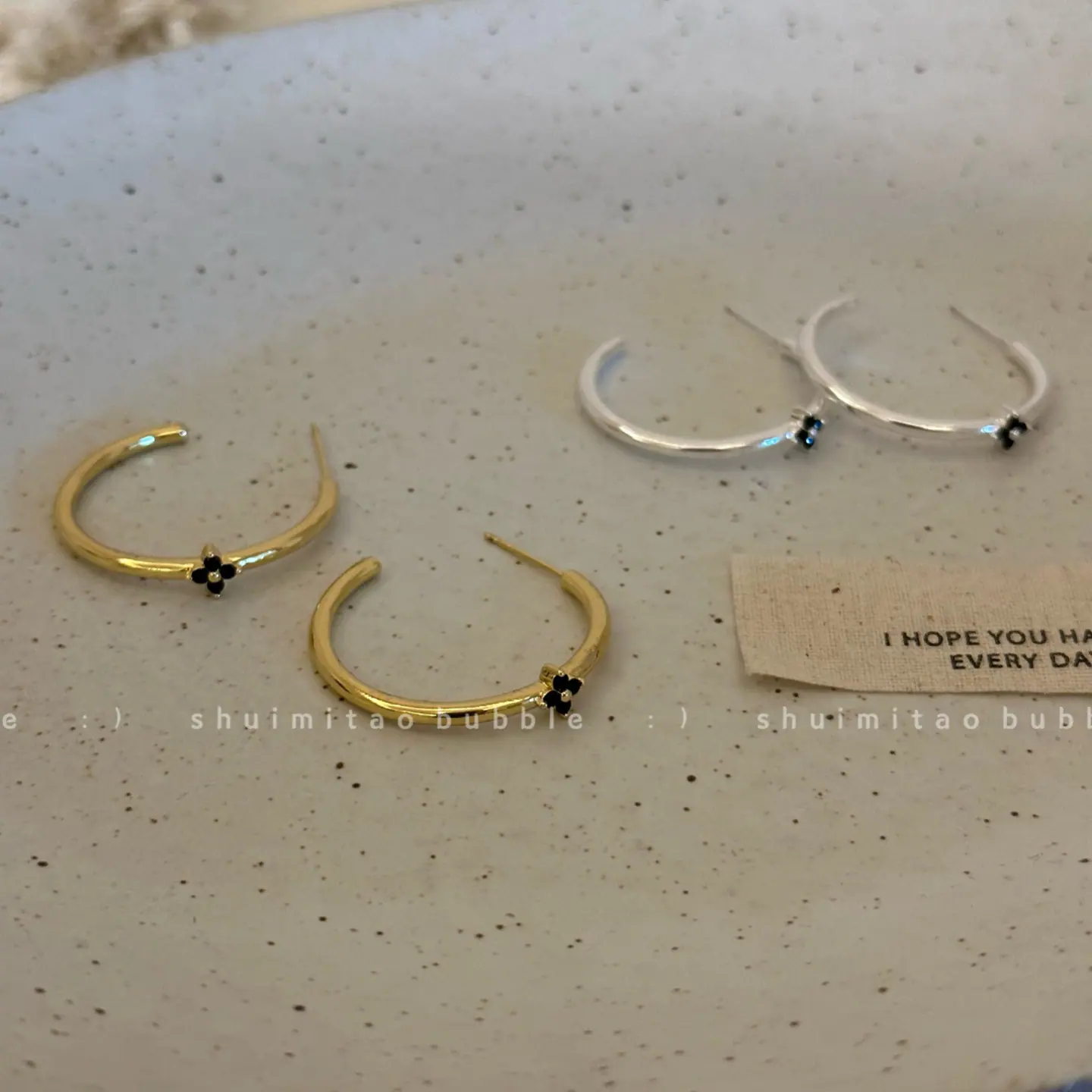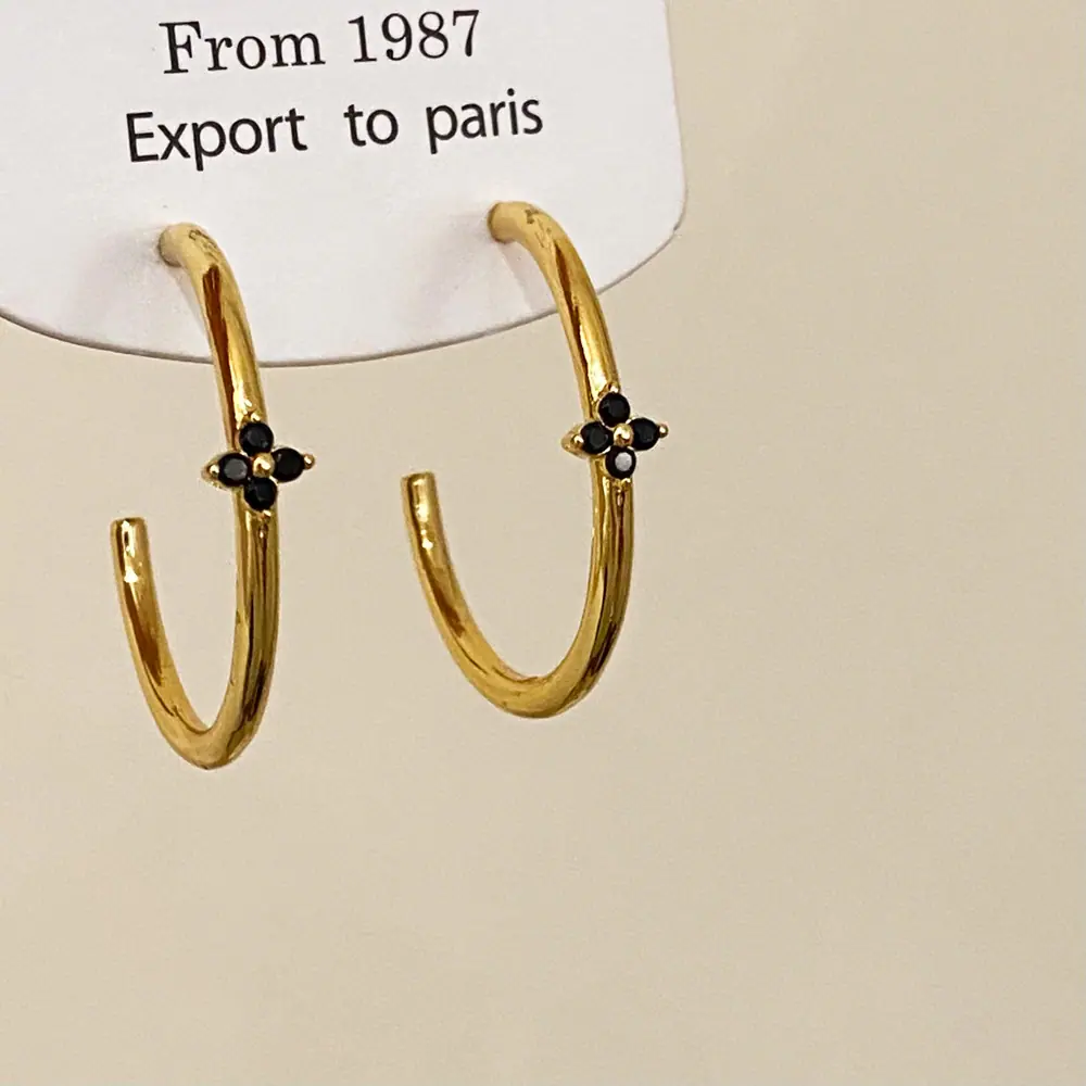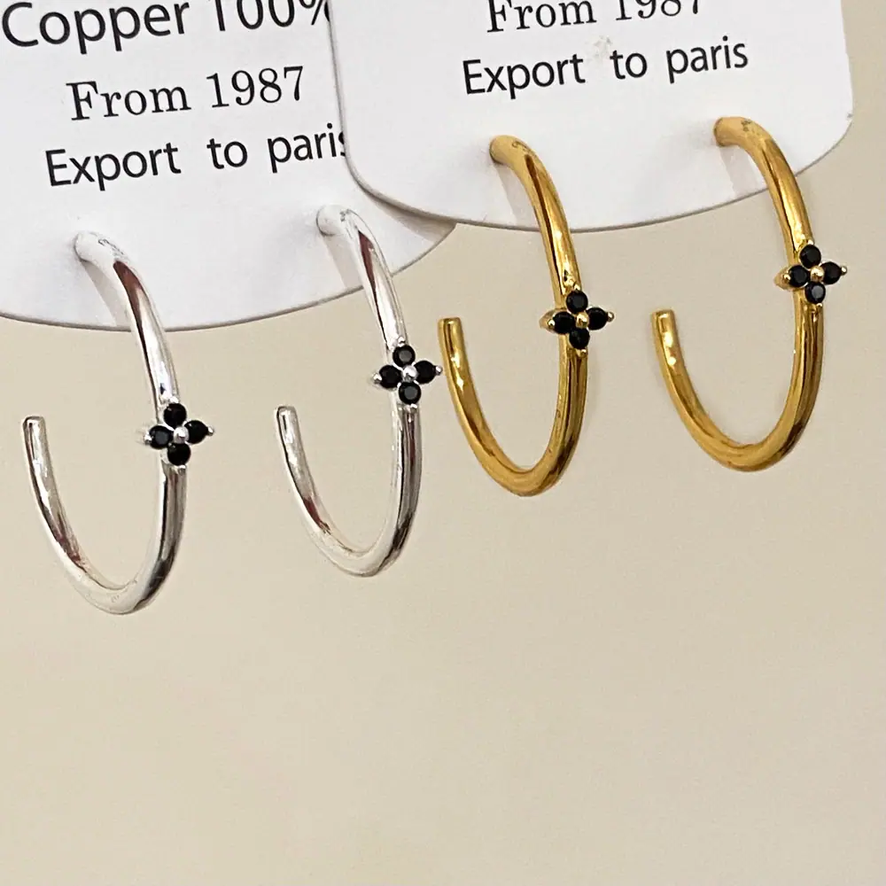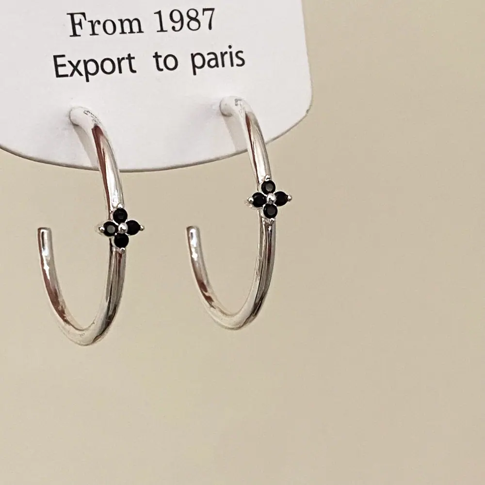 Compra Pendientes de Metal con Flor de Zircón Negro de Temperamento Simple, Lujo Ligero, Gama Alta, Diseño Nicho, Versátiles para el Trabajo, Accesorios para las Orejas al por mayor en Joom.pro