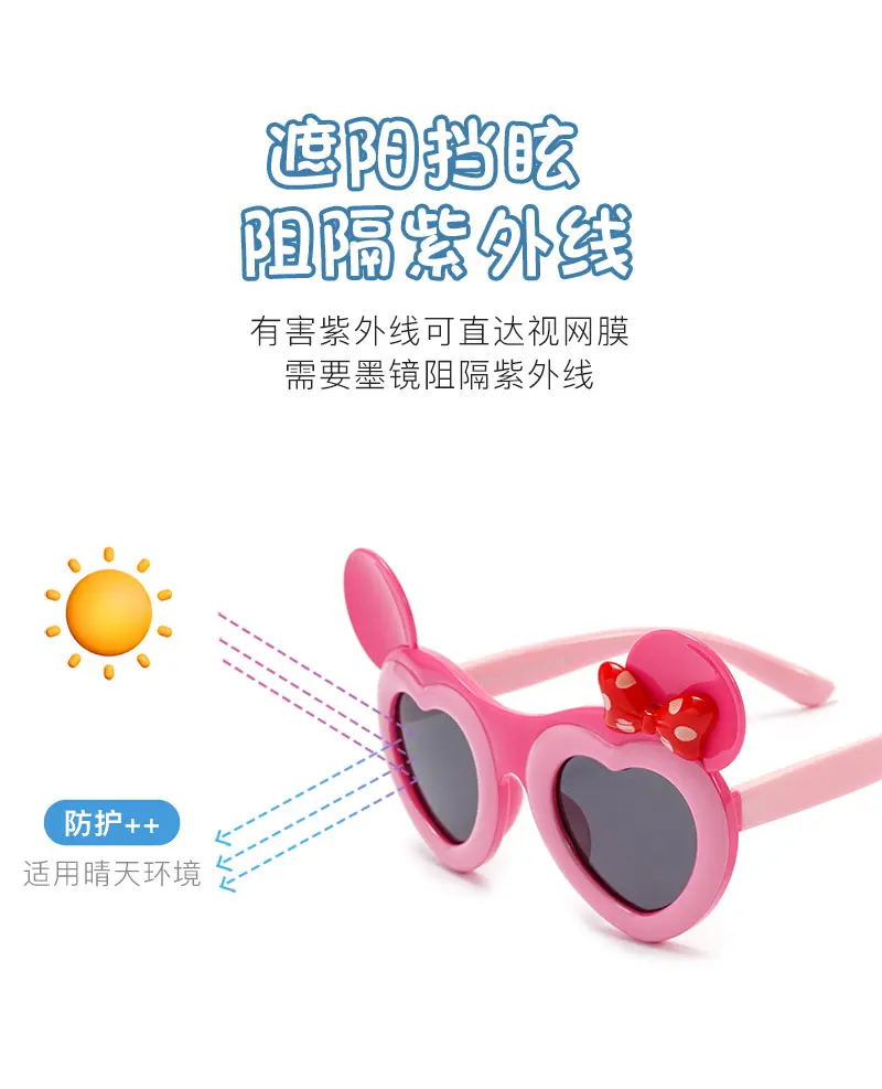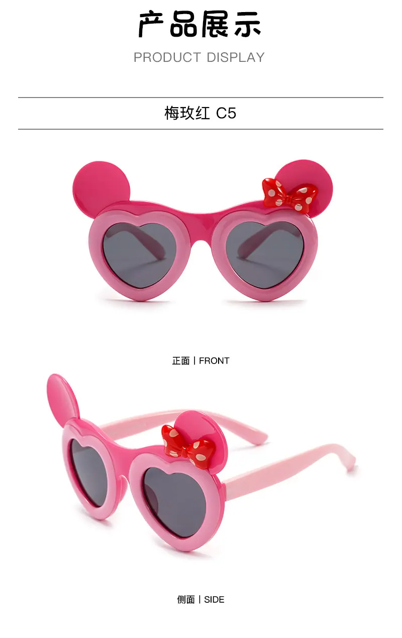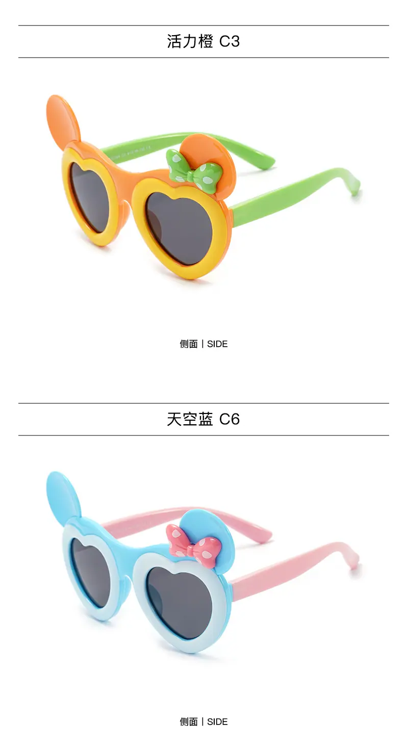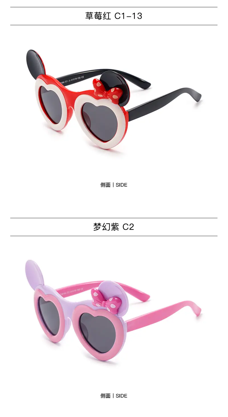 Gafas de sol de dibujos animados para niños corazón lazo lindas gafas de sol para bebé de dos colores alta sensación infantil gafas de sol sombra al por mayor