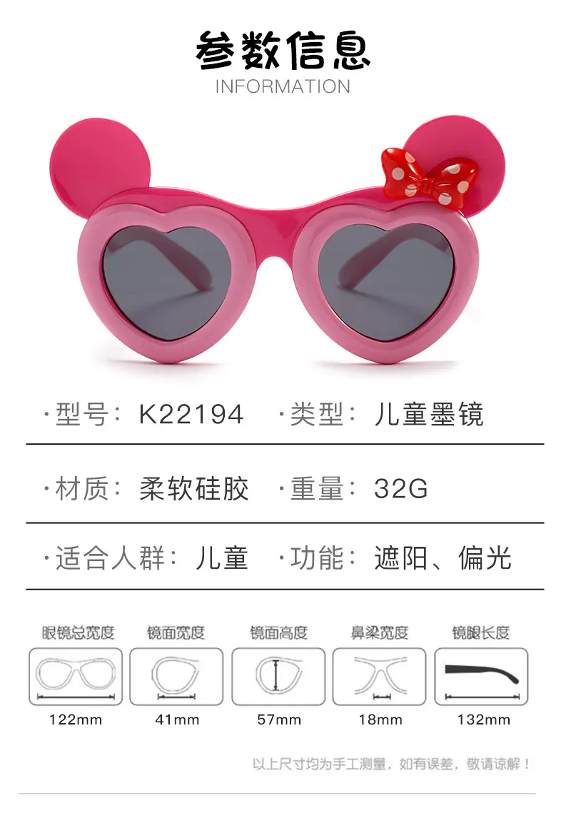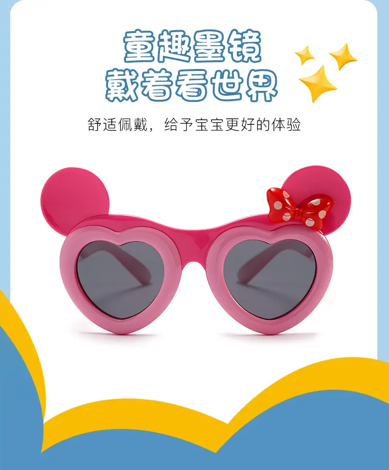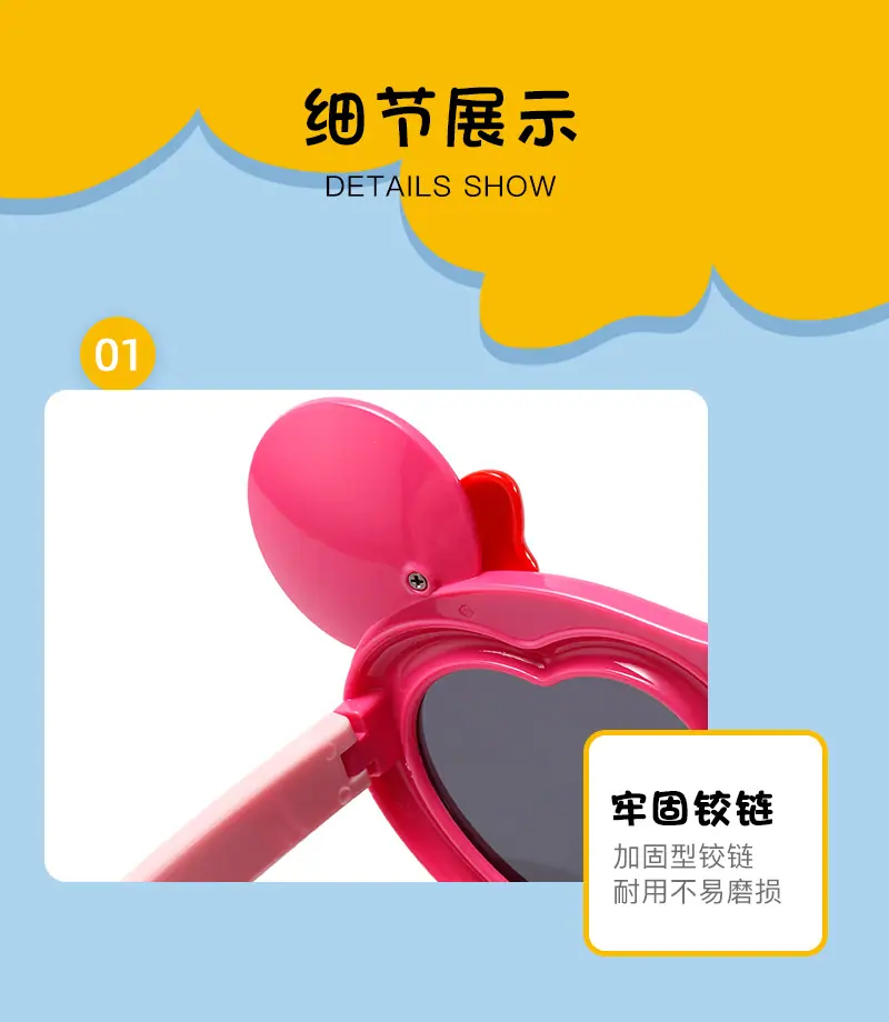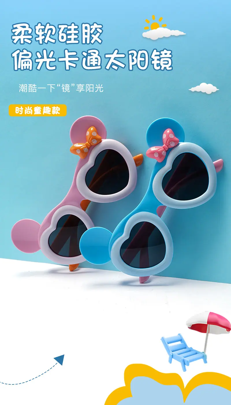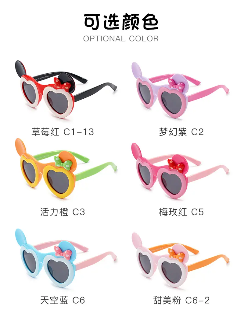 Gafas de sol de dibujos animados para niños corazón lazo lindas gafas de sol para bebé de dos colores alta sensación infantil gafas de sol sombra al por mayor