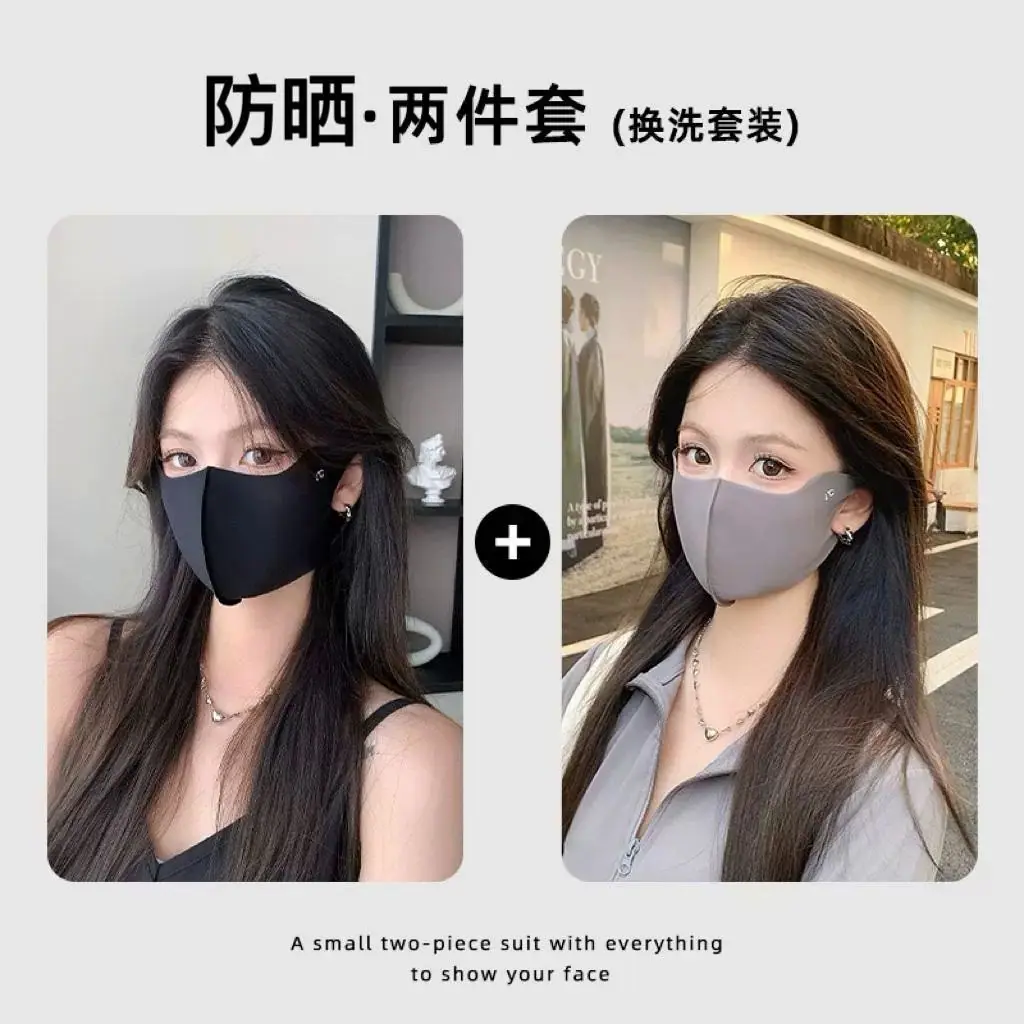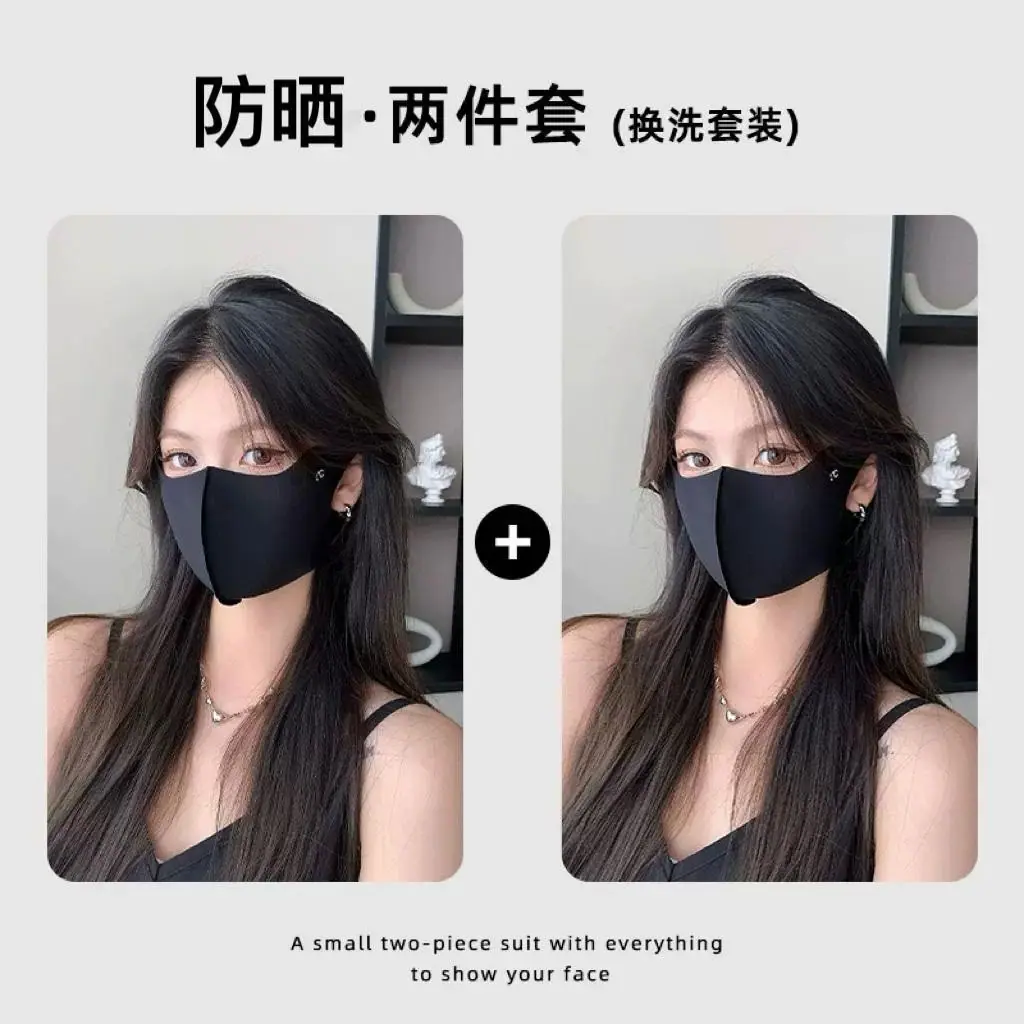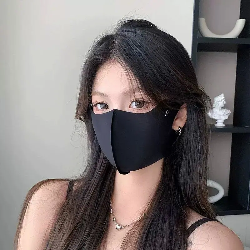 Compra Mascarilla sin costuras para mujer con buen aspecto en verano, Protección ocular de doble capa de seda helada anti-UV para mujer, Mascarilla facial negra al por mayor en Joom.pro
