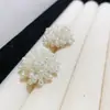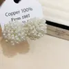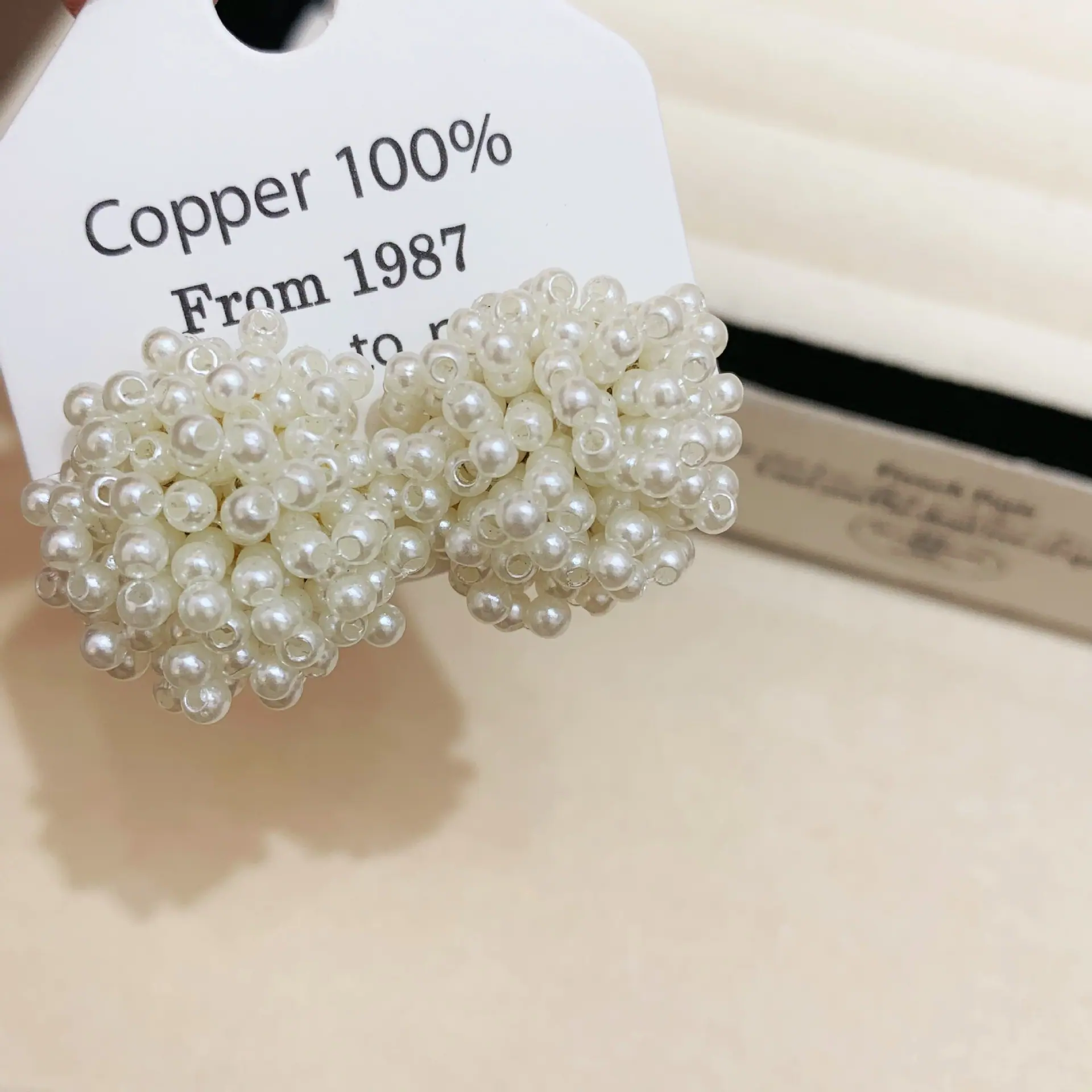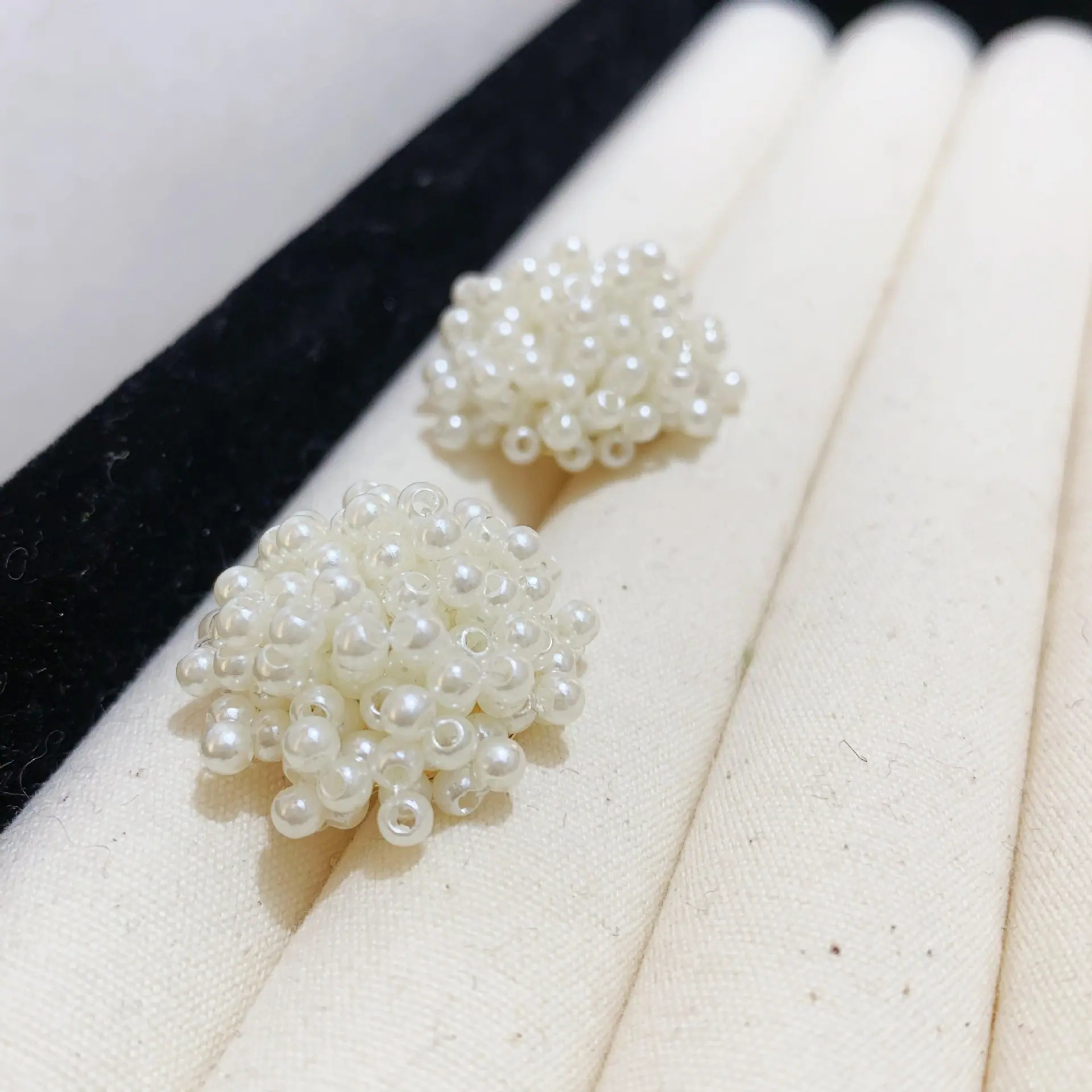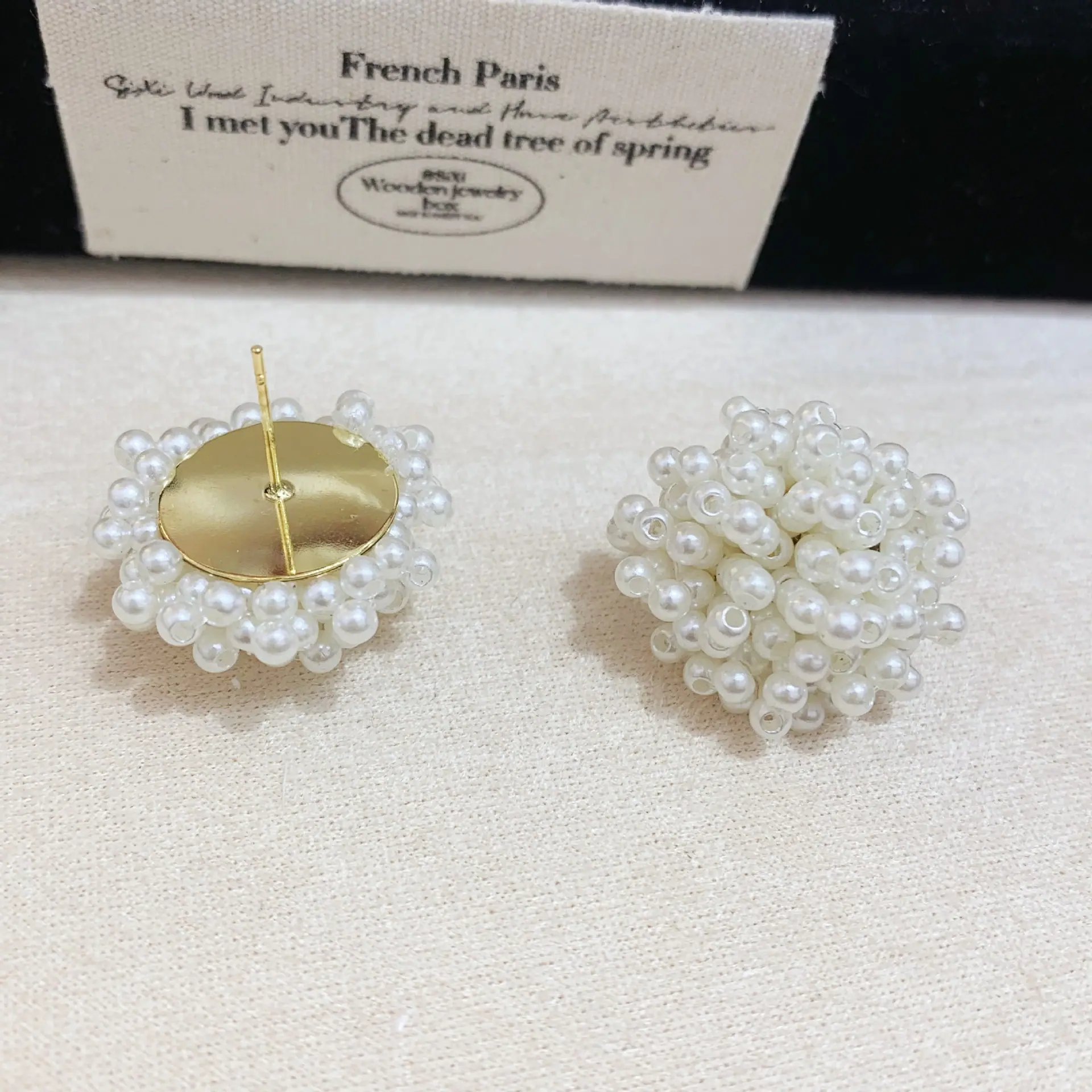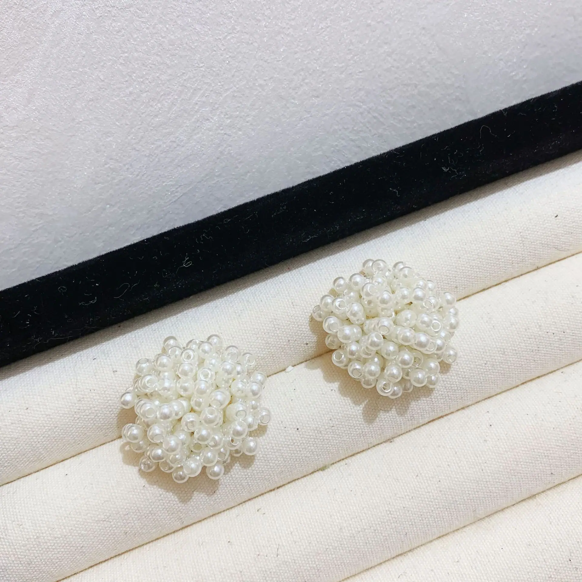 Moda estilo francés Exquisitos aretes de bola de flor tejida de perlas Nicho Super Hada Temperamento Exagerado Aretes de botón Aretes Simples Populares