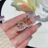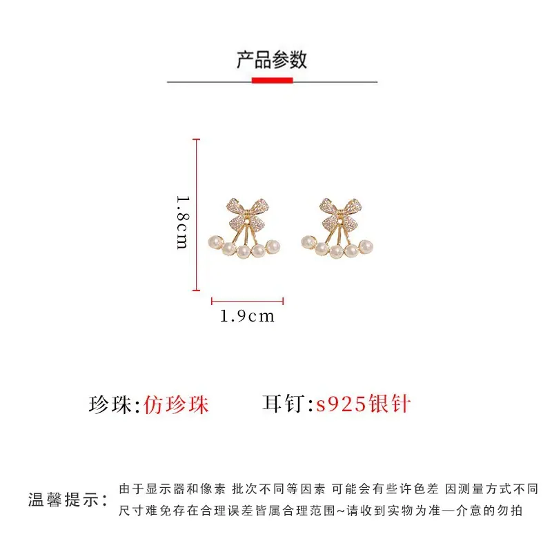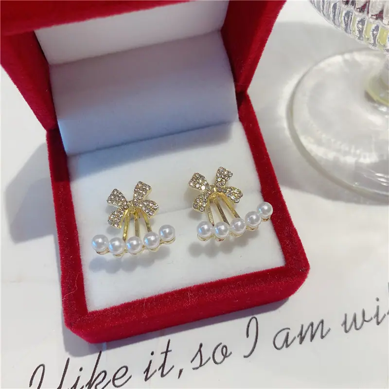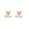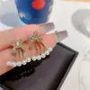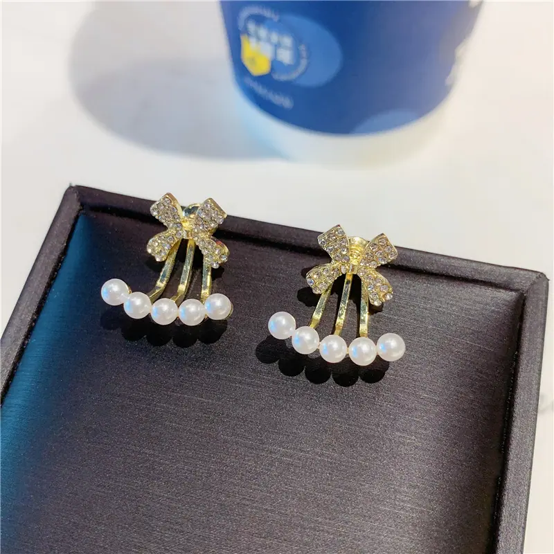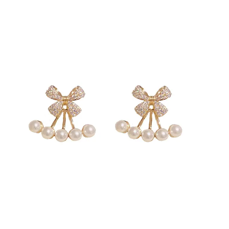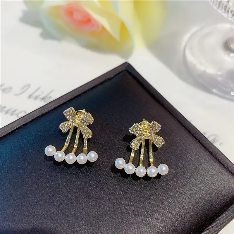 2023 nuevos aretes de lazo de dos piezas de moda, aretes de nicho de perlas, aretes de diseño elegante y de alta calidad