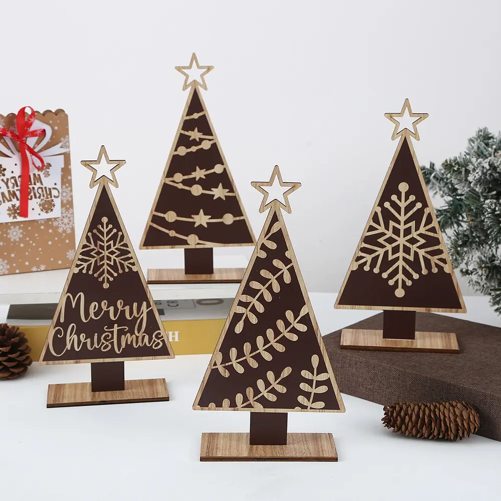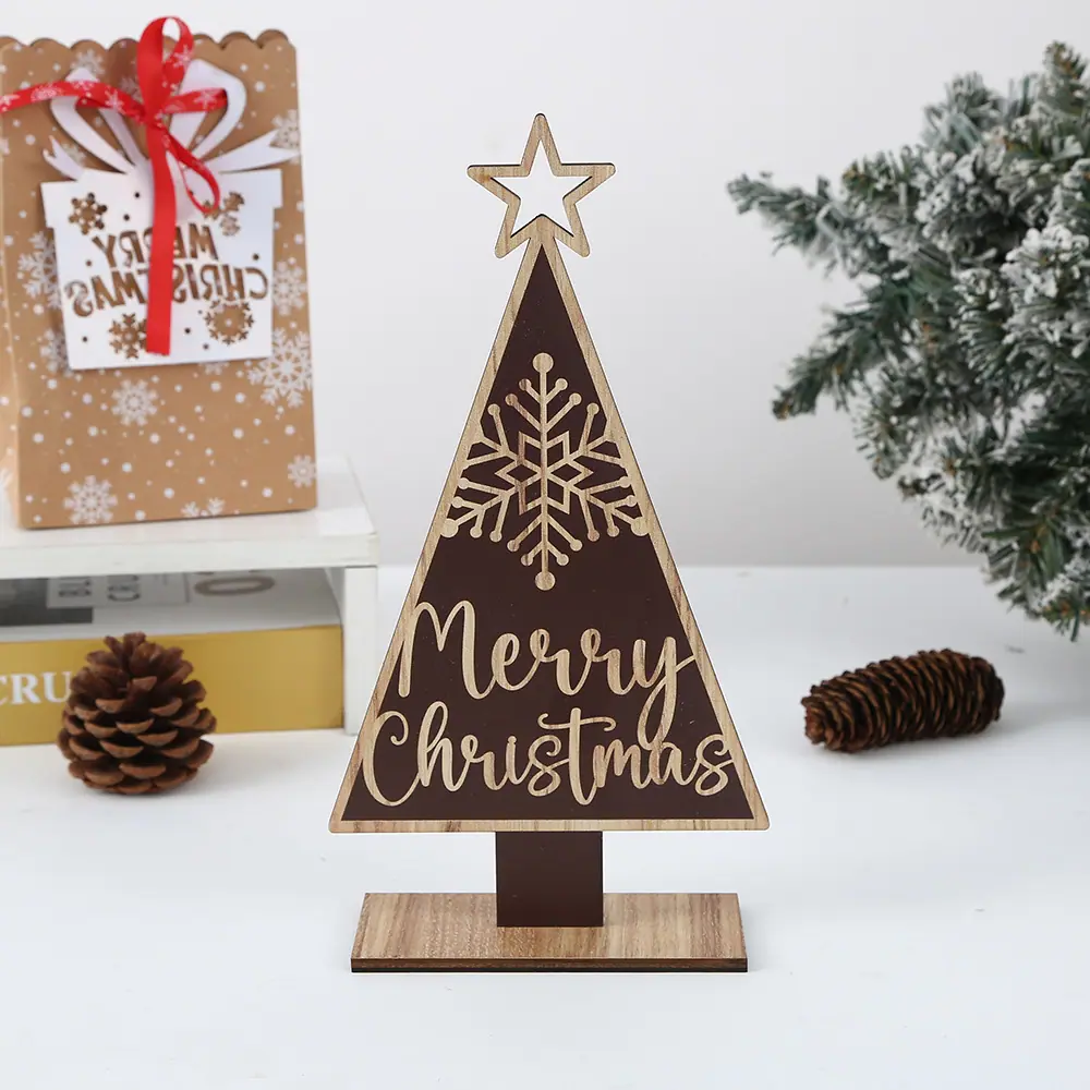 Compra Artesanías de Madera de Árbol de Navidad de Venta Caliente Adornos de Madera de Escritorio con Múltiples Patrones Adornos de Árbol de Navidad Inglés Decoraciones para el Hogar al por mayor en Joom.pro