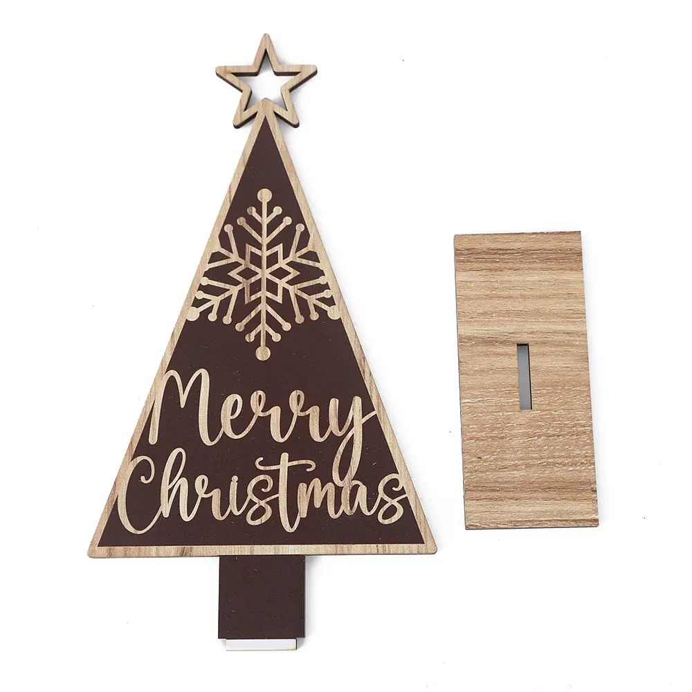 Artesanías de Madera de Árbol de Navidad de Venta Caliente Adornos de Madera de Escritorio con Múltiples Patrones Adornos de Árbol de Navidad Inglés Decoraciones para el Hogar