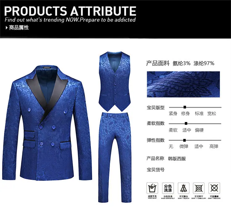 Traje traje para hombre casual de negocios de tres piezas traje formal estilo coreano corte entallado padrino novio vestido de boda para hombre