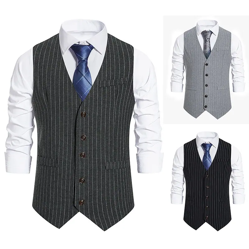 Compra Nuevo chaleco elegante a rayas de un solo botón para hombre transfronterizo 2023, chaleco casual británico para hombre al por mayor en Joom.pro