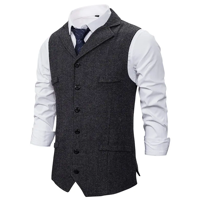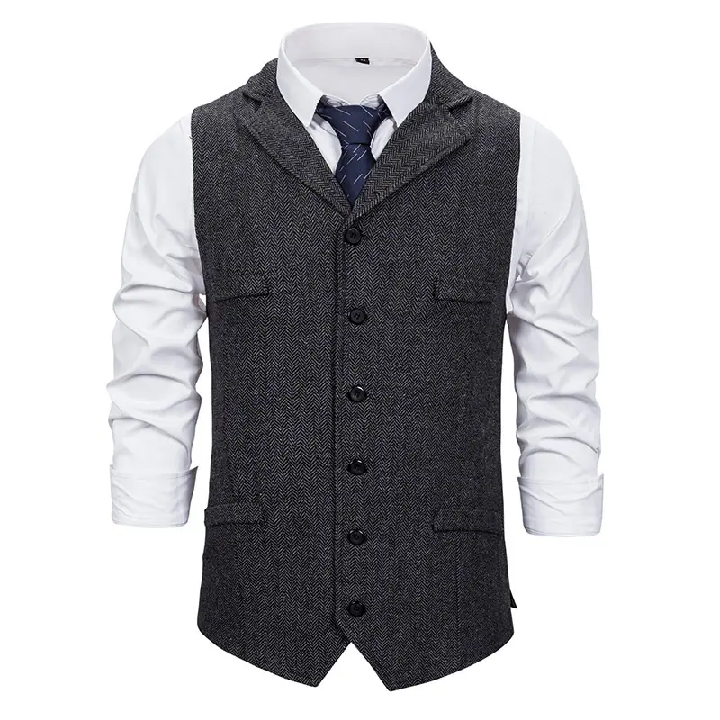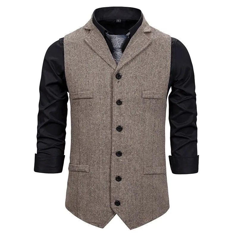Chaleco de espiga para hombre talla europea nuevo 2023 cruzado de solapa casual para traje de negocios