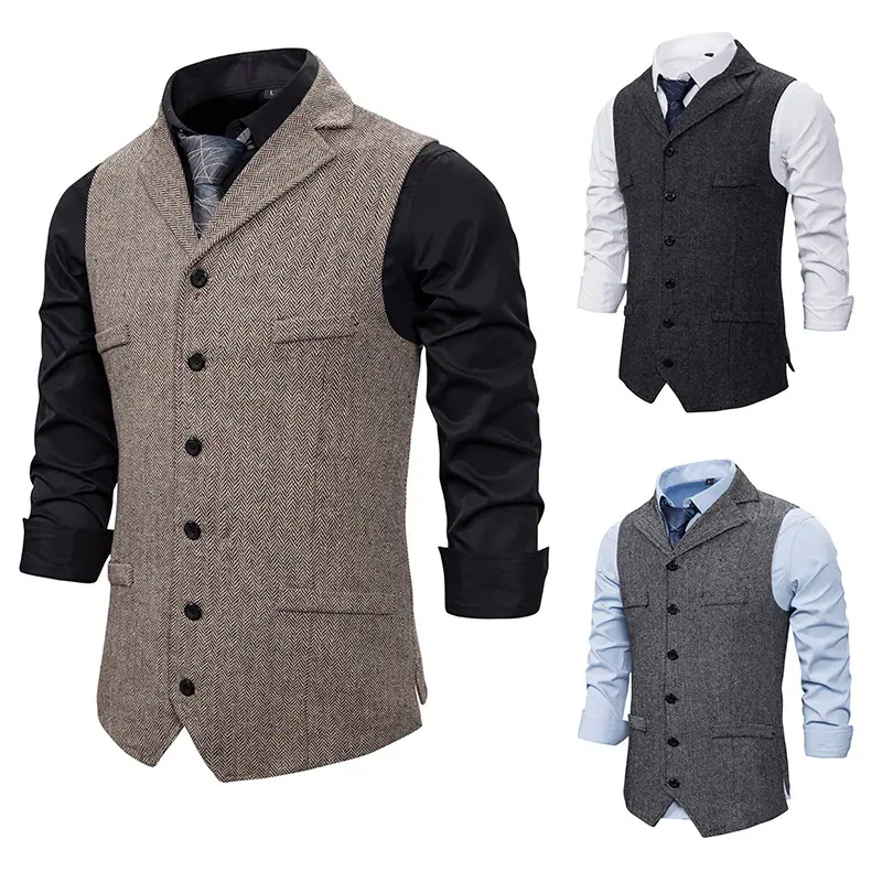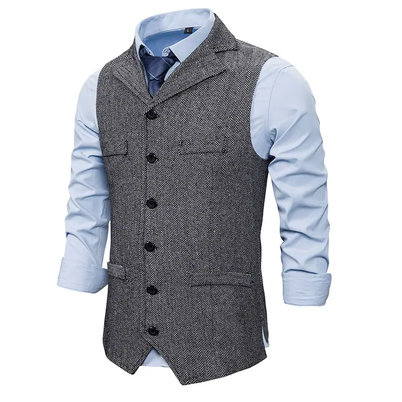Compra Chaleco de espiga para hombre talla europea nuevo 2023 cruzado de solapa casual para traje de negocios al por mayor en Joom.pro
