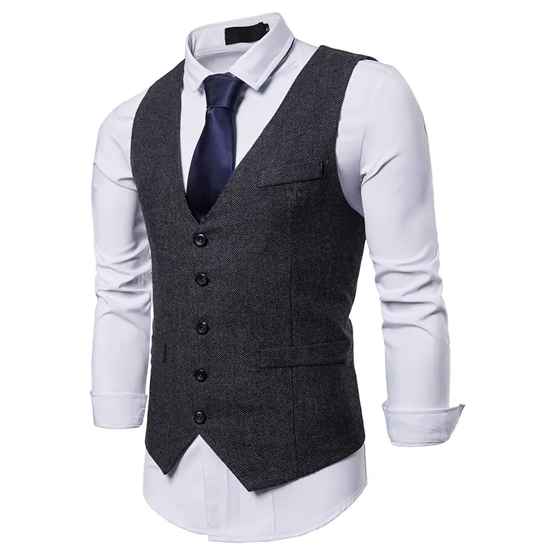 Chaleco de espiga nuevo para hombre transfronterizo 2023, moda para hombre, talla grande, chaleco de traje de un solo botón, chaqueta, chaleco para hombre