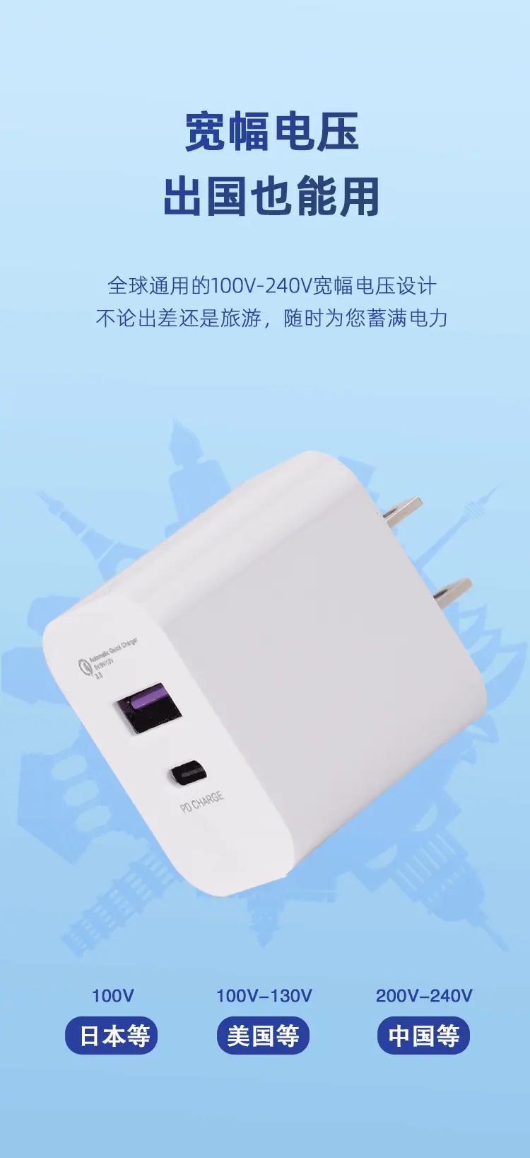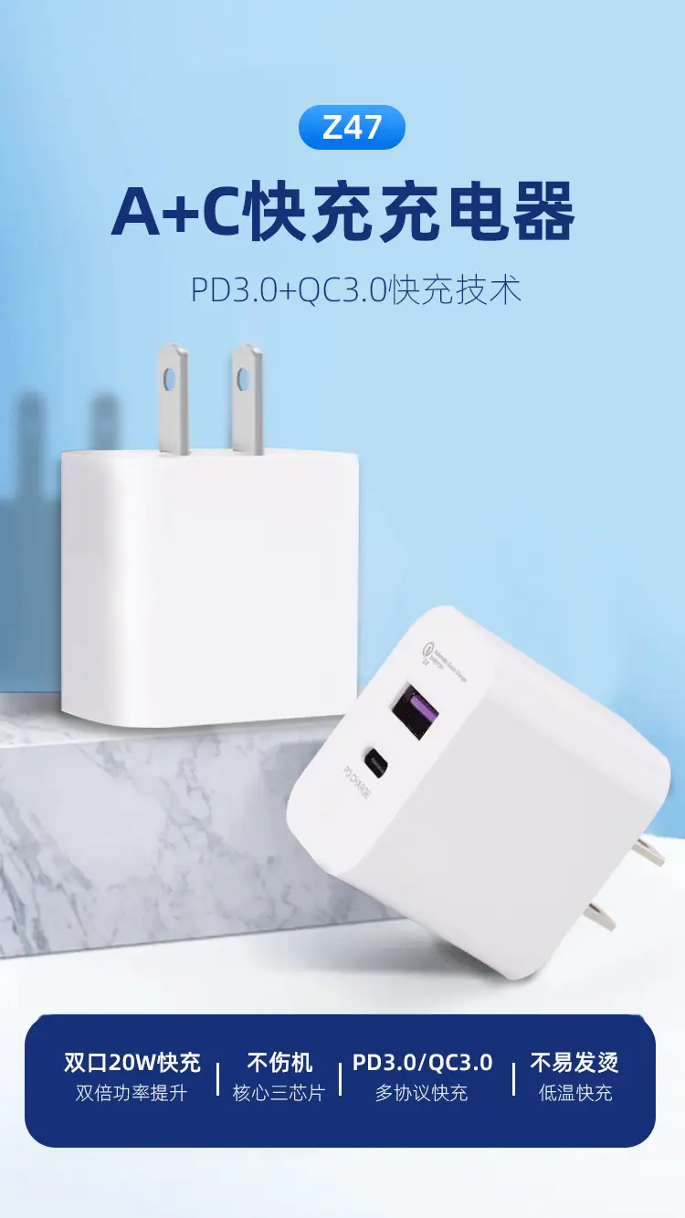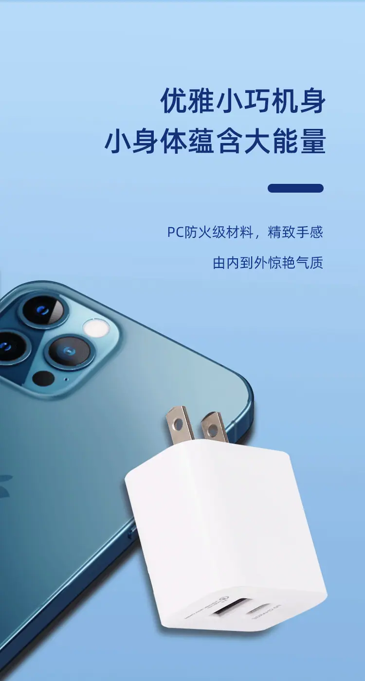 El cargador de carga rápida Pd20w es adecuado para cabezal de carga de teléfono móvil Apple Android, cargador de carga rápida multipuerto A C20w