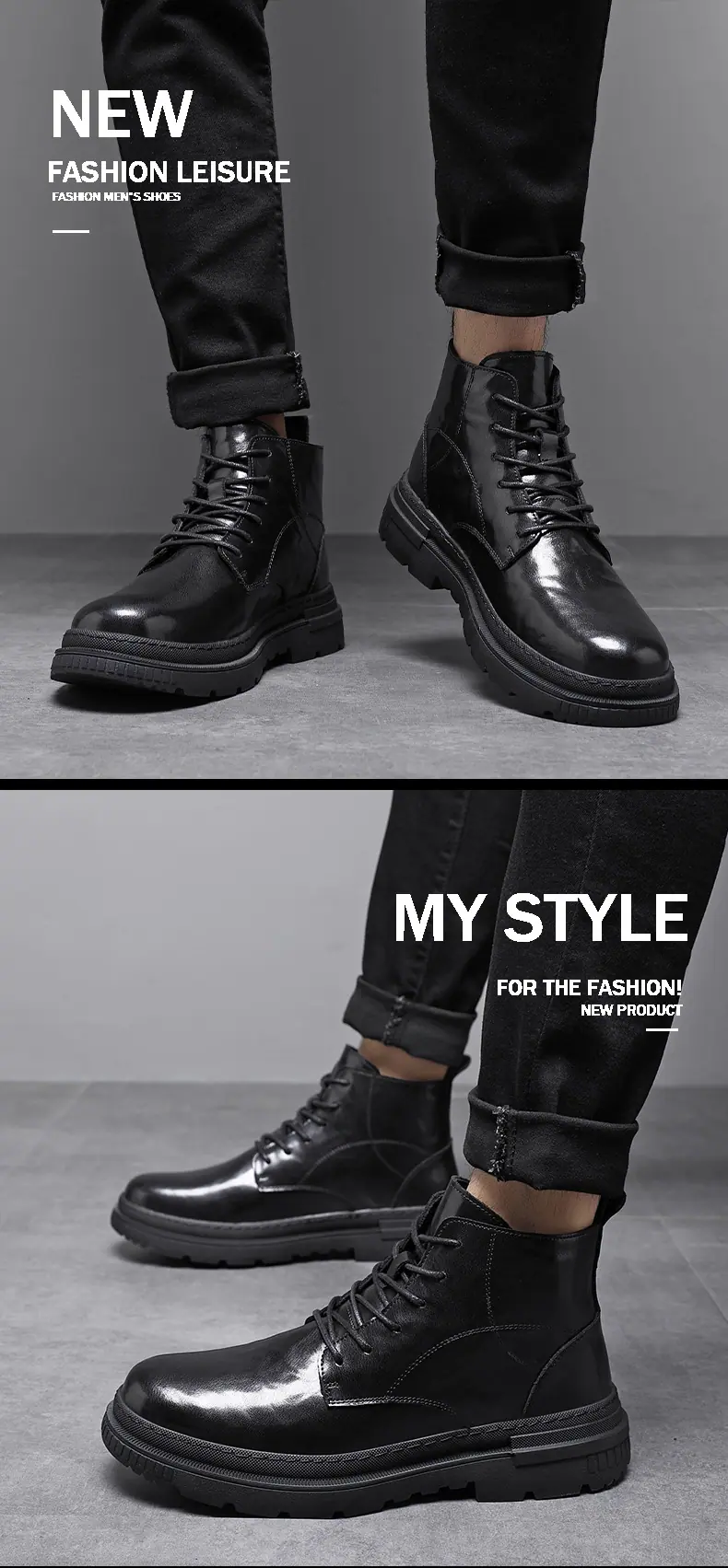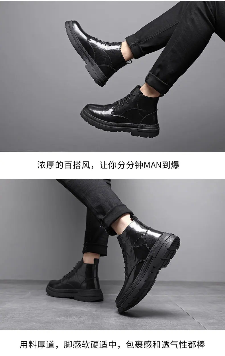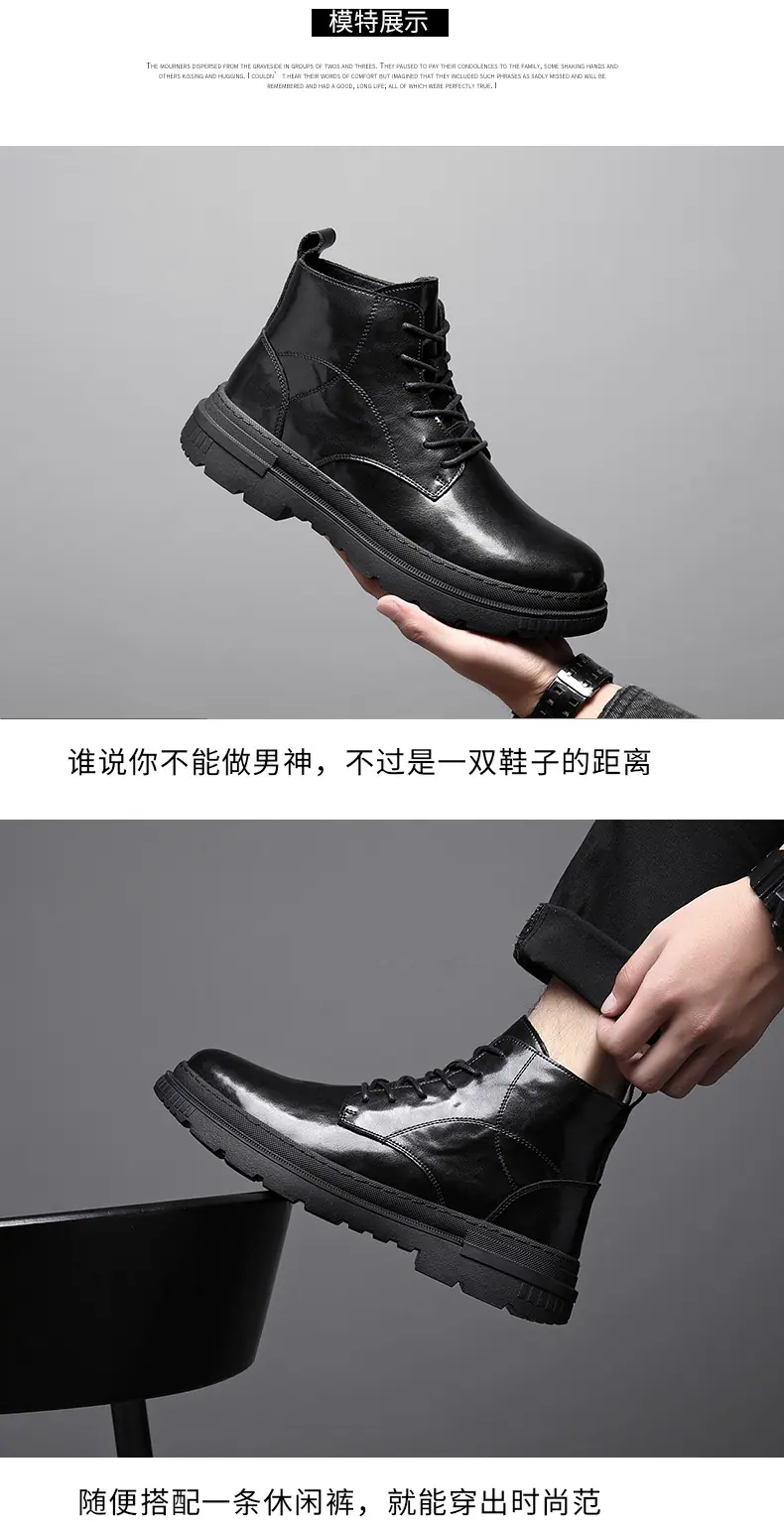 Compra Botas para Hombre Invierno de Caña Alta Transpirables Estilo Británico Zapatos de Trabajo Botines de Caña Media Nieve Retro Cuero Genuino Botas de Moda al por mayor en Joom.pro