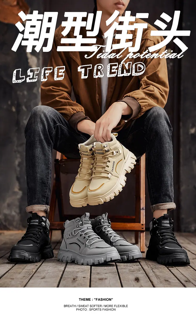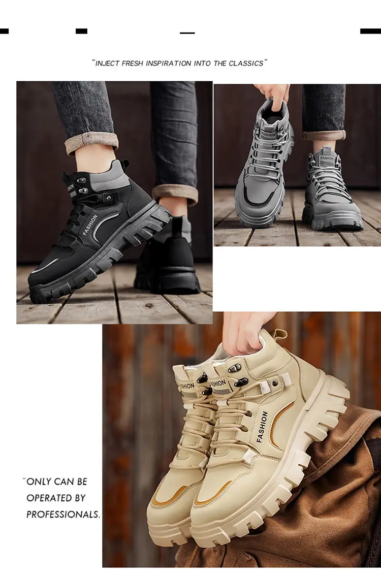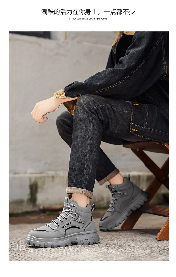 Botas Martin Zapatos de Hombre Otoño Nuevo Transpirable de Caña Alta Calzado de Trabajo para Hombre Tendencia Versátil de Suela Gruesa Antideslizante Botines Casuales
