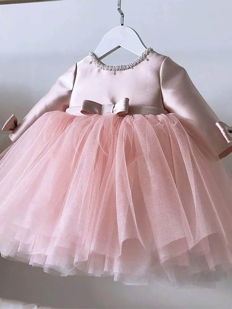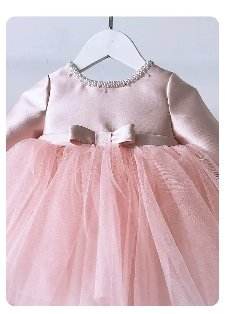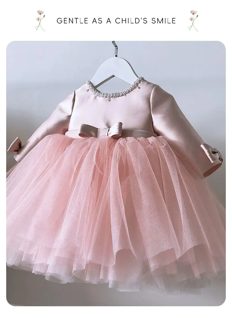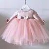 Vestido pequeño de manga larga para niños Vestido de princesa de cumpleaños para niña de un año Vestido tutú de verano para niña anfitriona