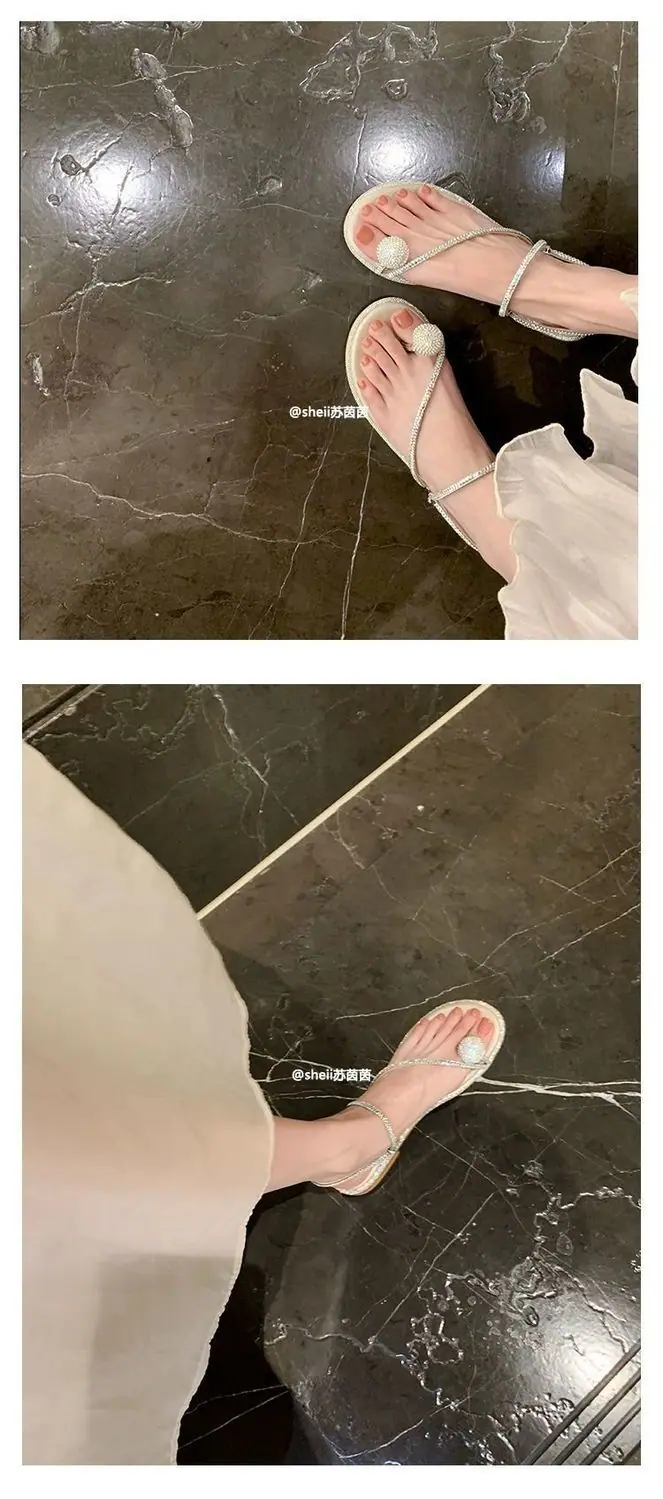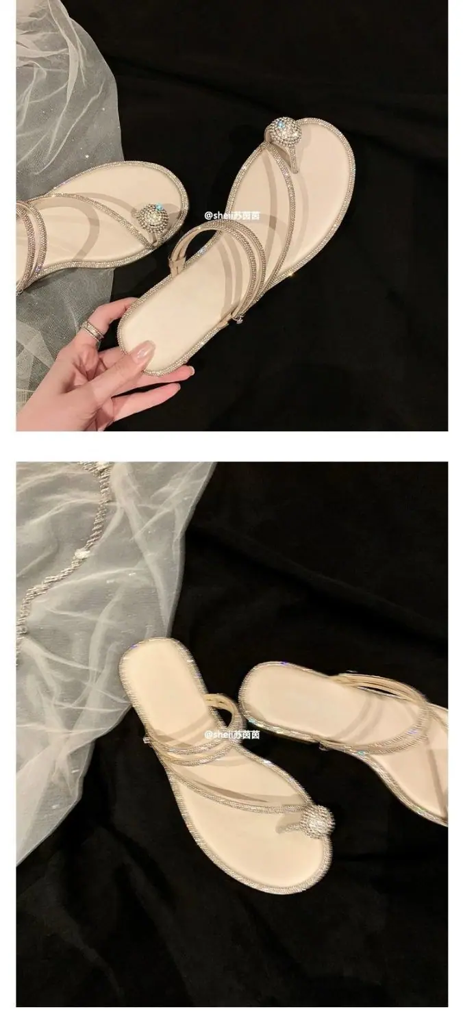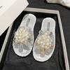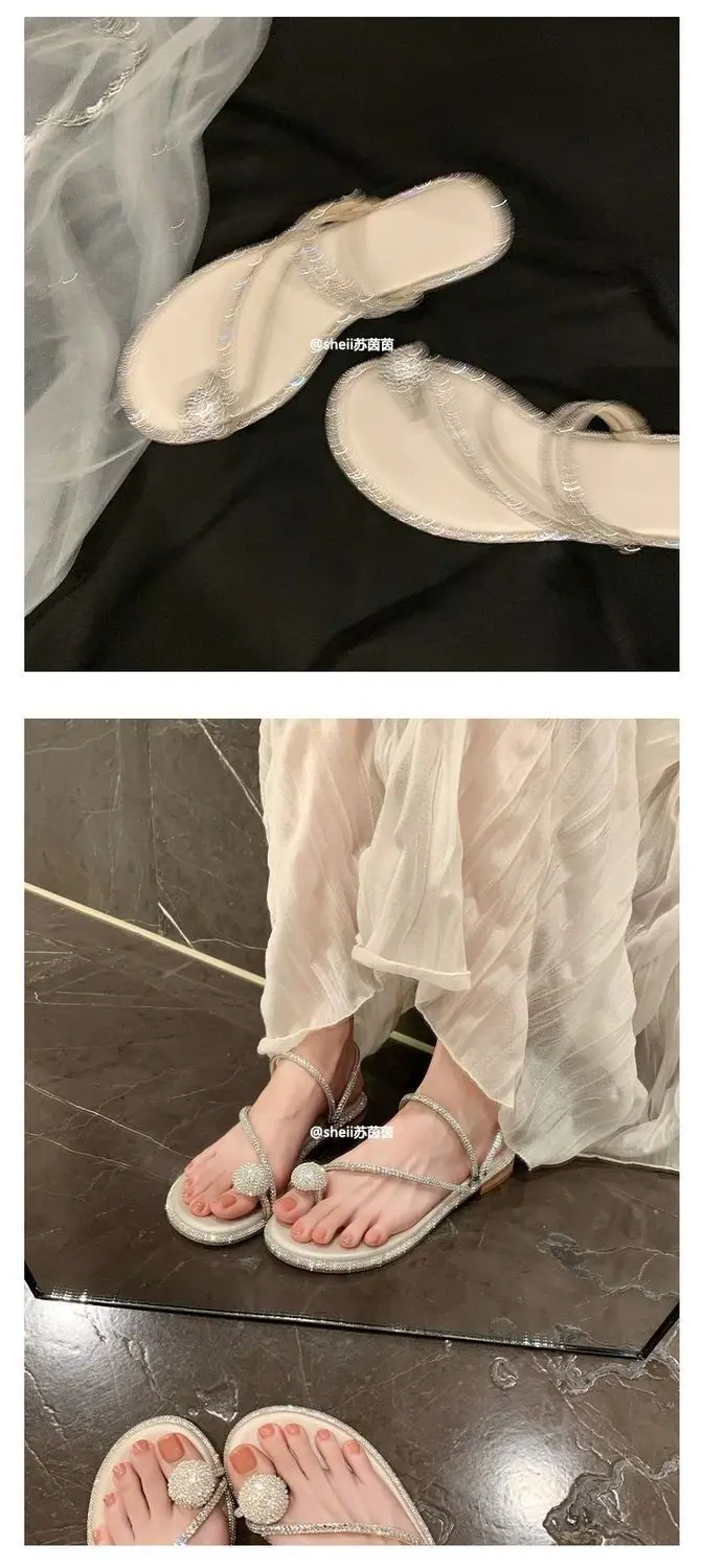 Pantuflas frescas estilo coreano viento nocturno pedrería huevo de paloma pantuflas de playa 2024 verano nuevo sandalias de estilo hada de alta gama