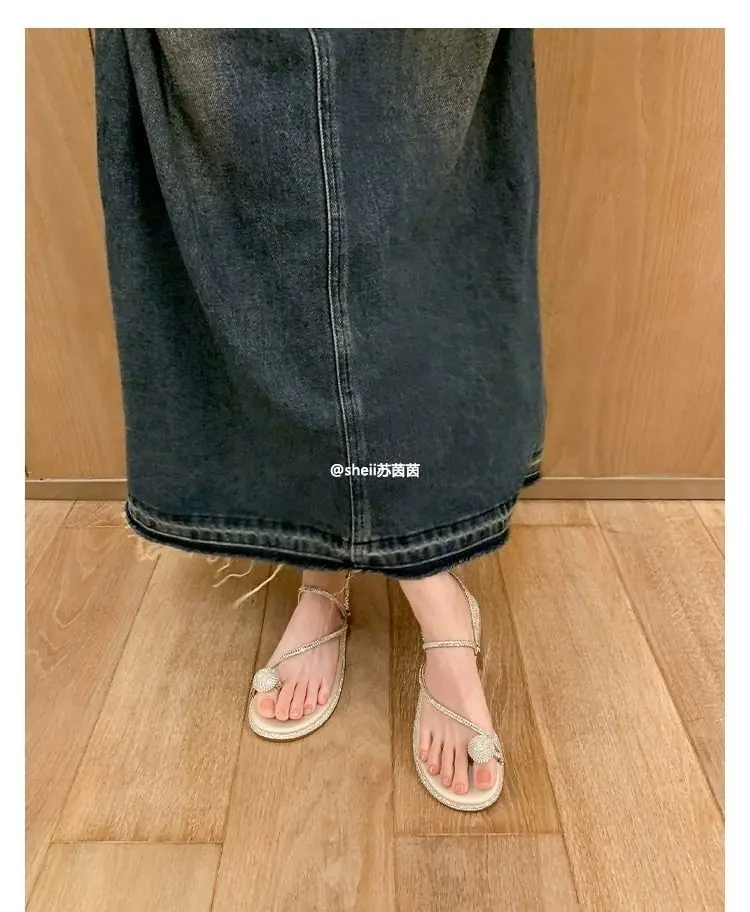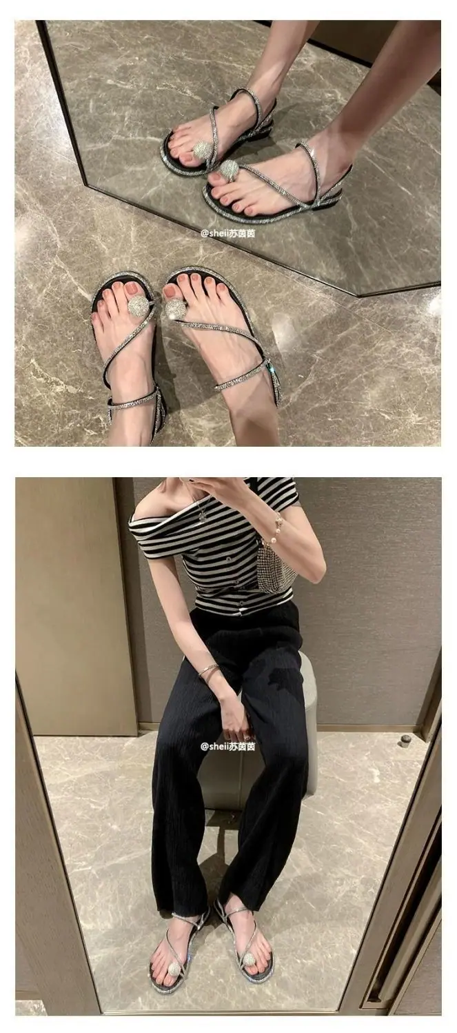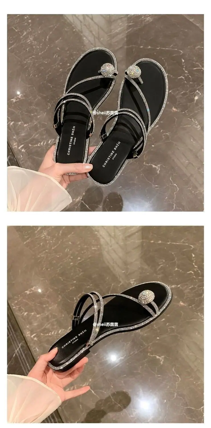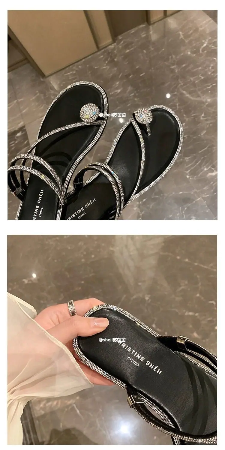 Pantuflas frescas estilo coreano viento nocturno pedrería huevo de paloma pantuflas de playa 2024 verano nuevo sandalias de estilo hada de alta gama