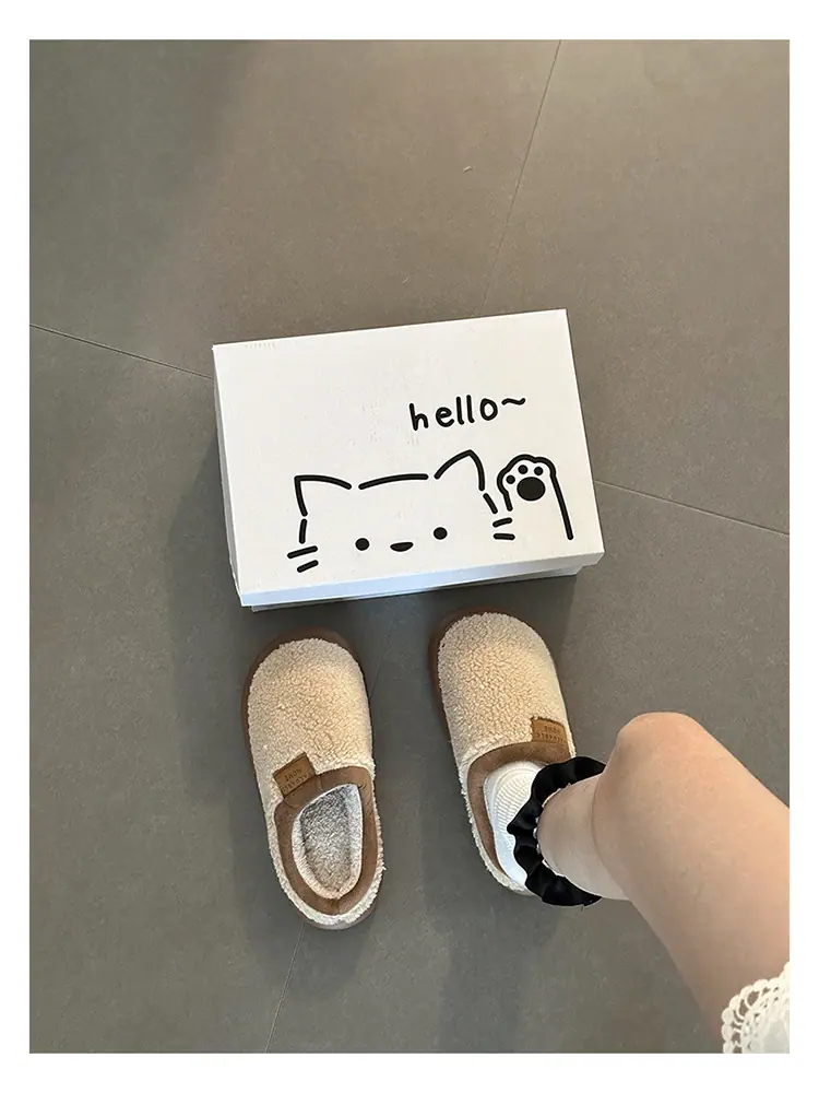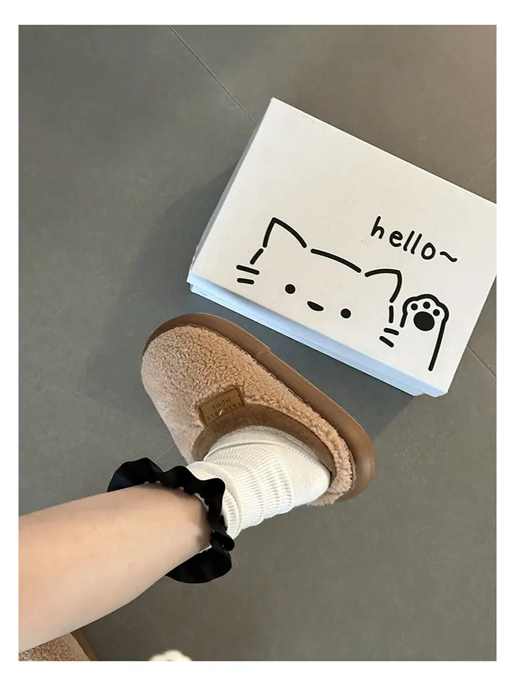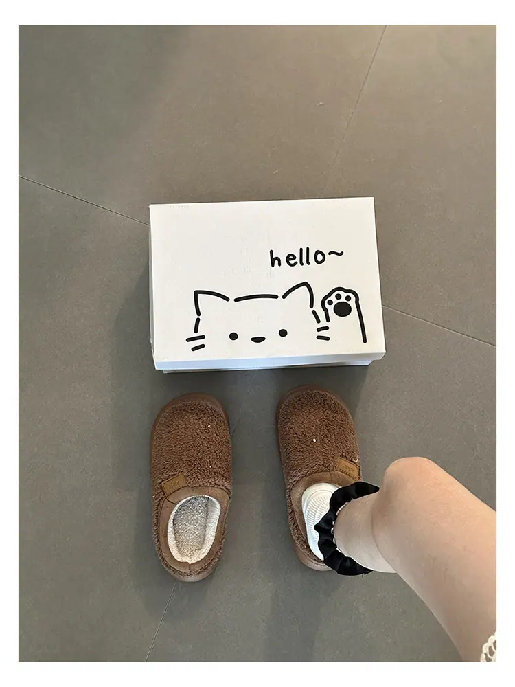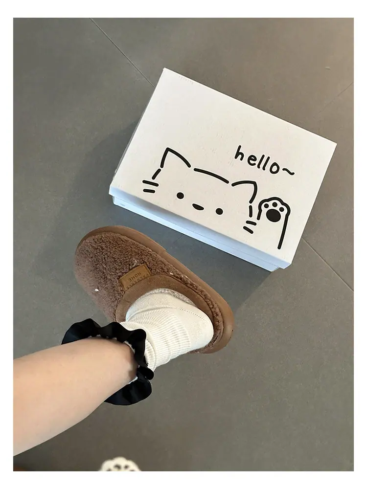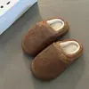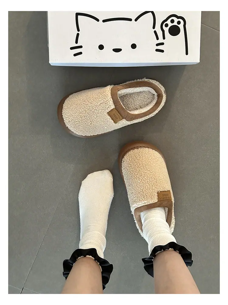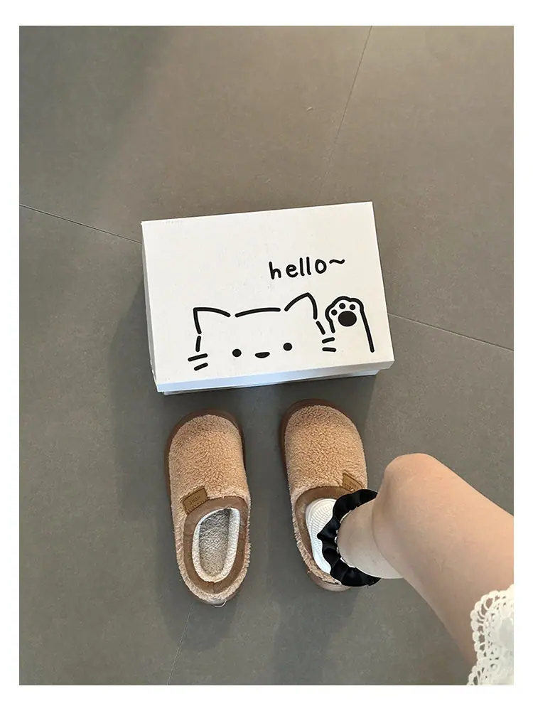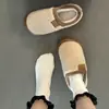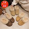 Zapatillas de felpa versátiles de punta redonda retro para mujer Otoño/Invierno 2025, estilo perezoso a la moda, zapatillas medias sin cordones, zapatos de algodón