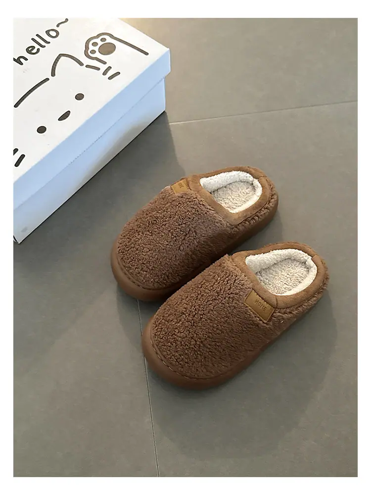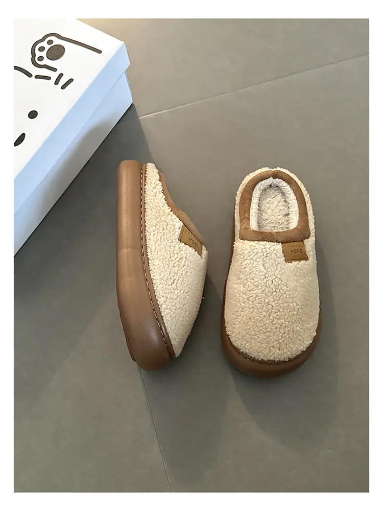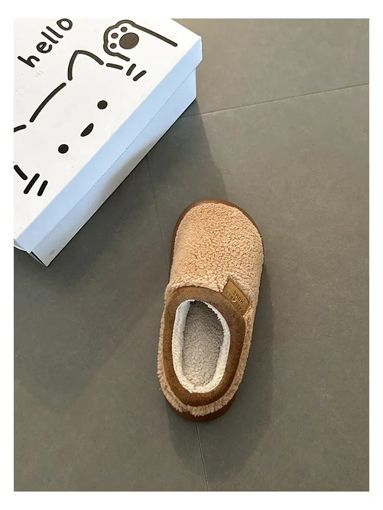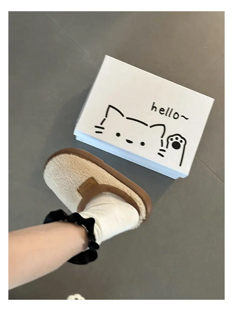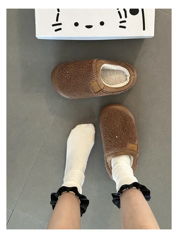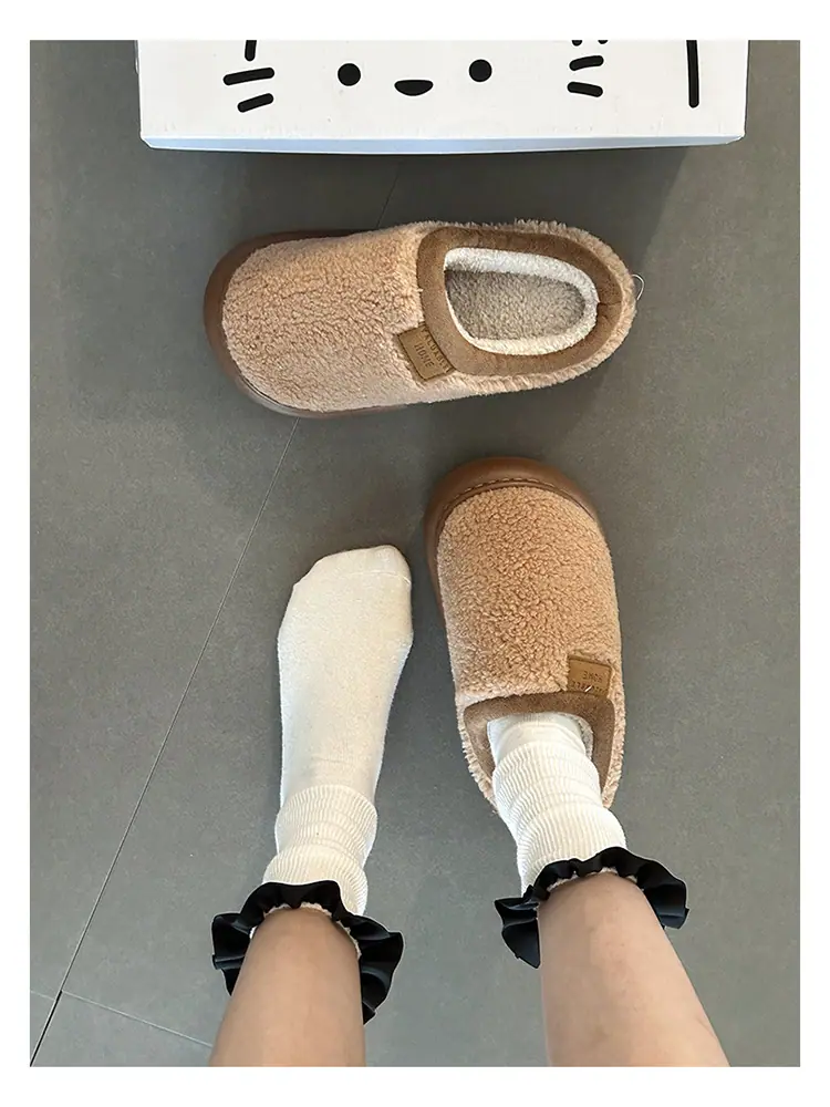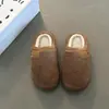 Zapatillas de felpa versátiles de punta redonda retro para mujer Otoño/Invierno 2025, estilo perezoso a la moda, zapatillas medias sin cordones, zapatos de algodón