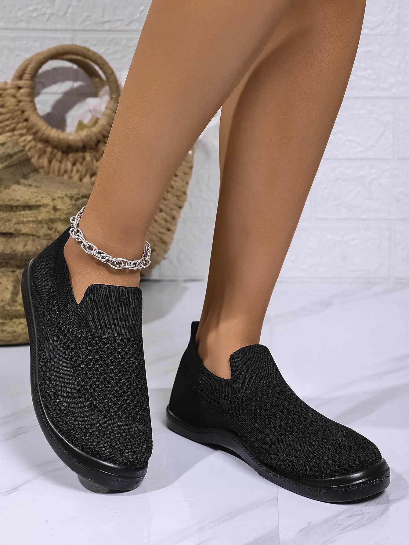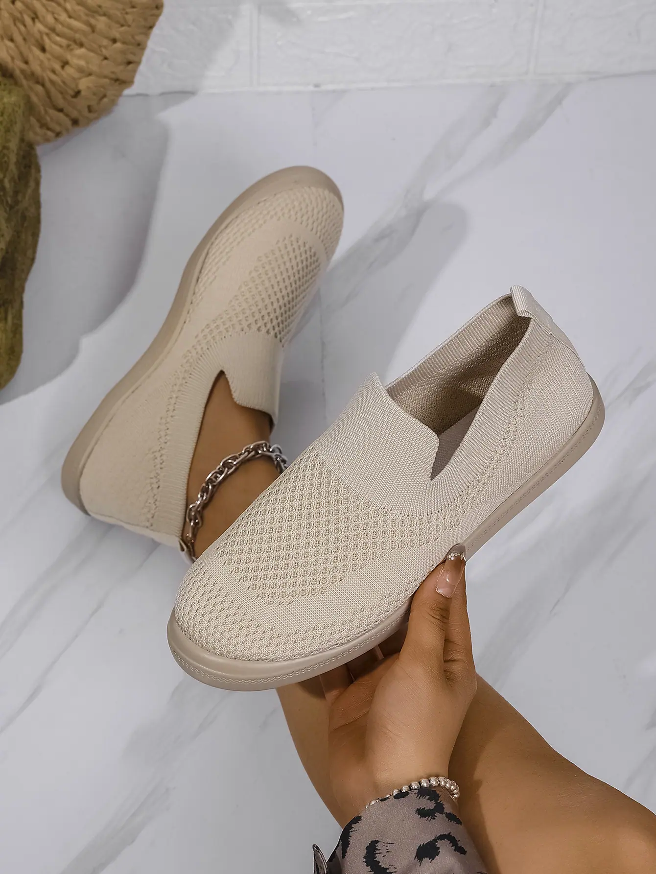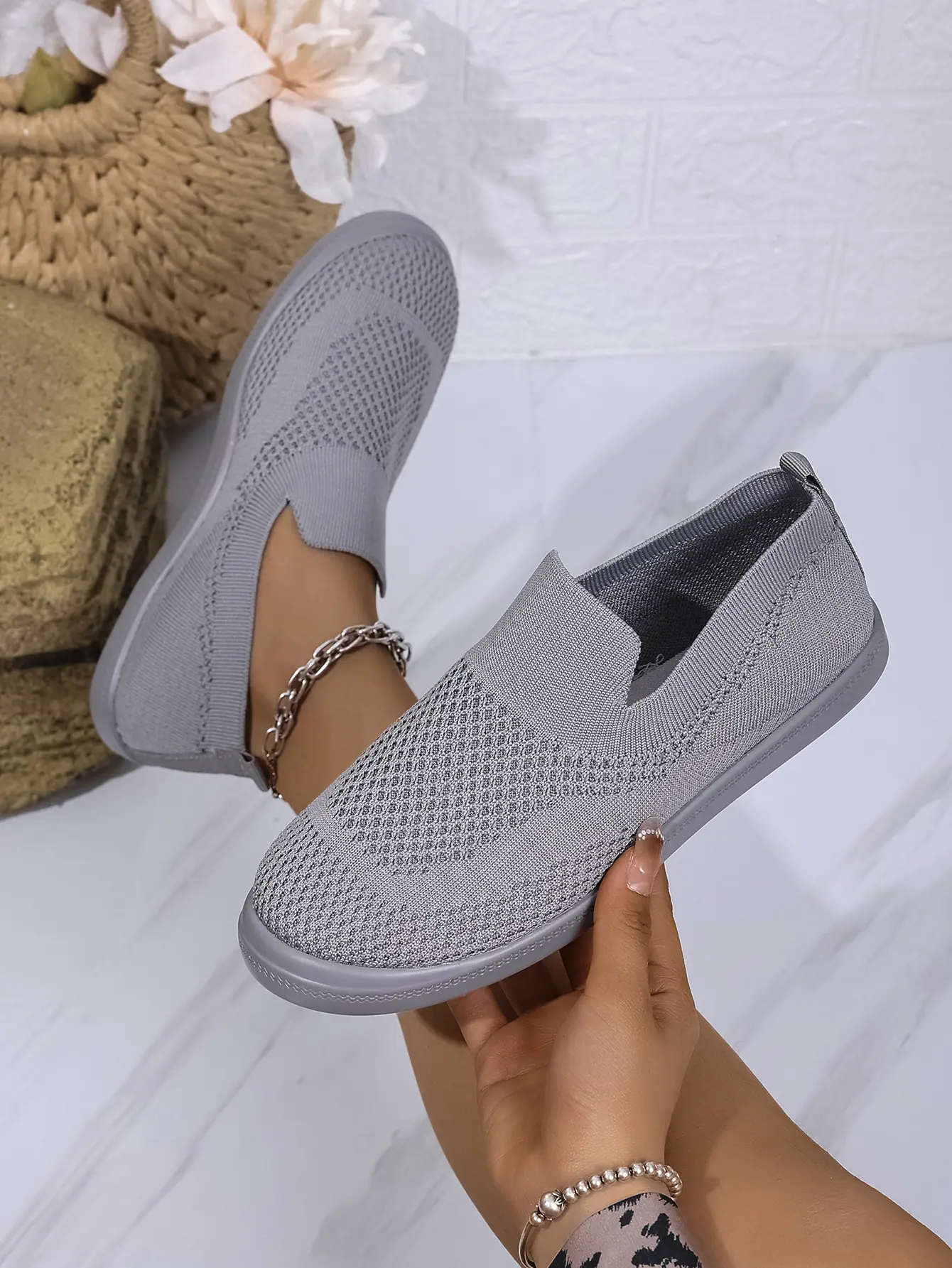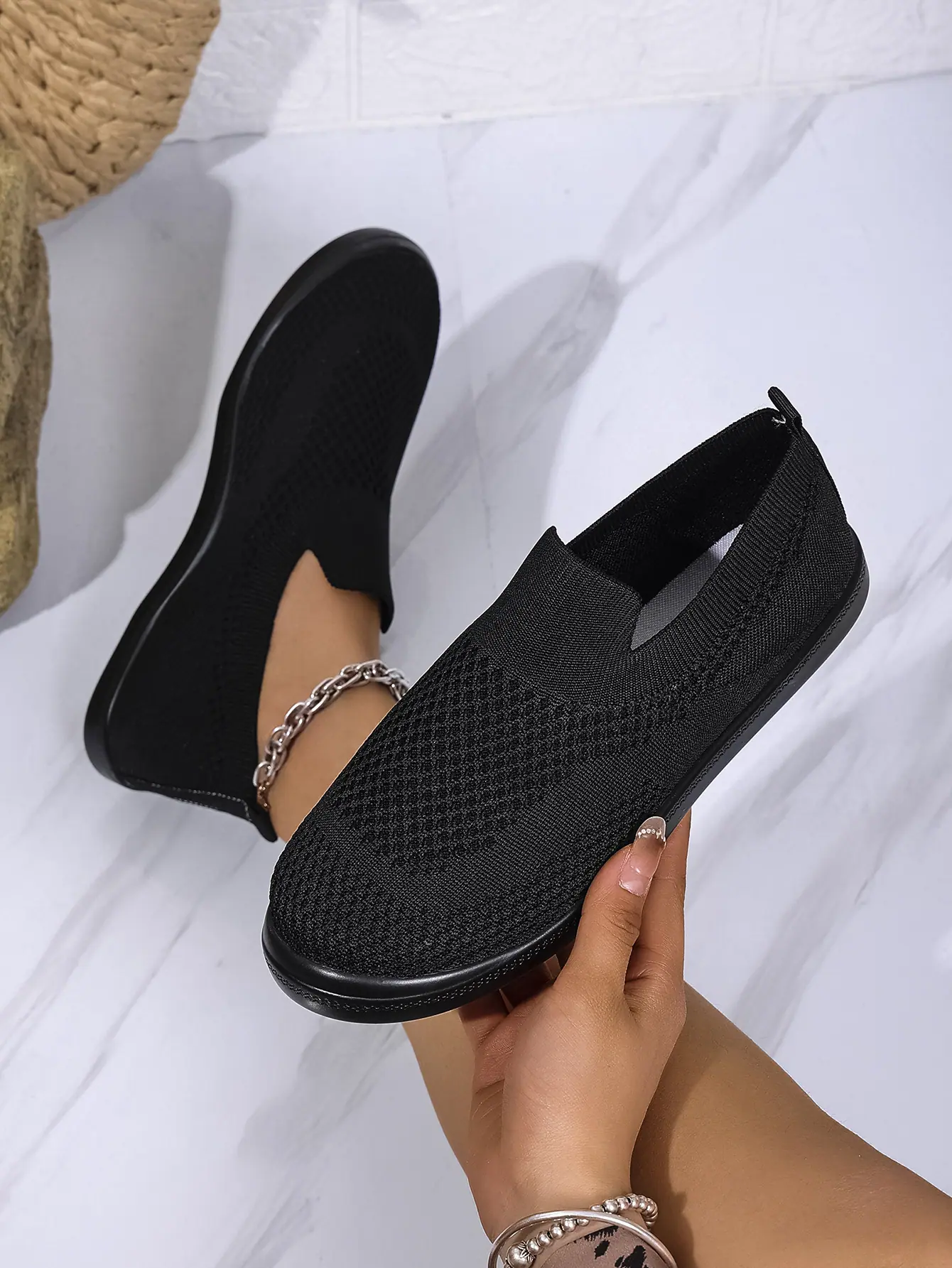 Zapatos casuales transfronterizos de punto de mosca perezoso transpirables sin cordones otoño nuevo talla grande suela plana para exteriores zapatos individuales de suela suave para mujer