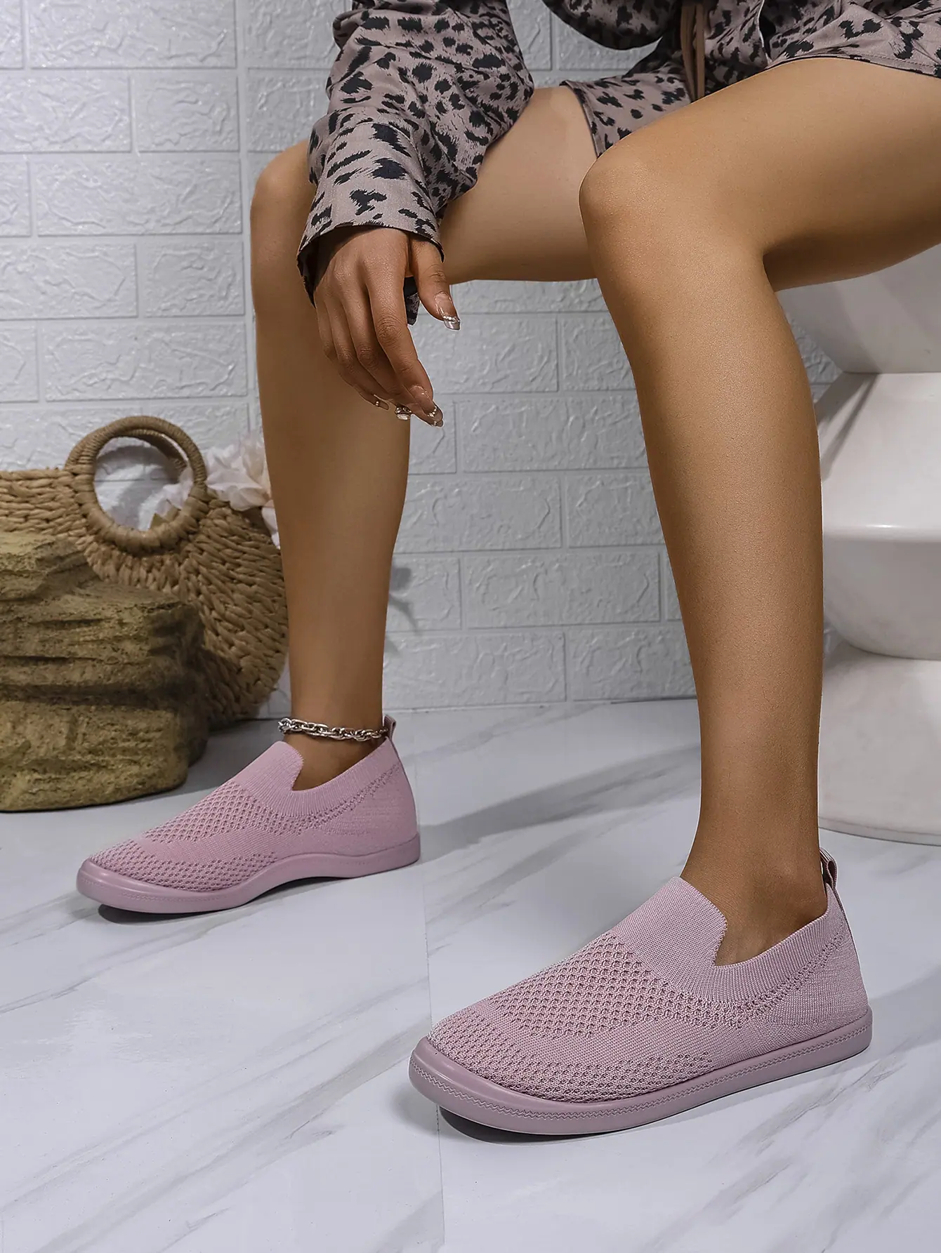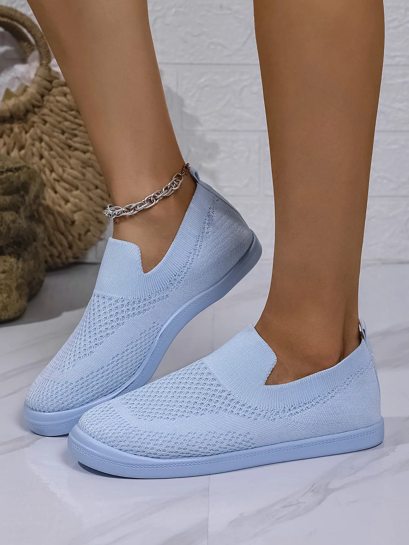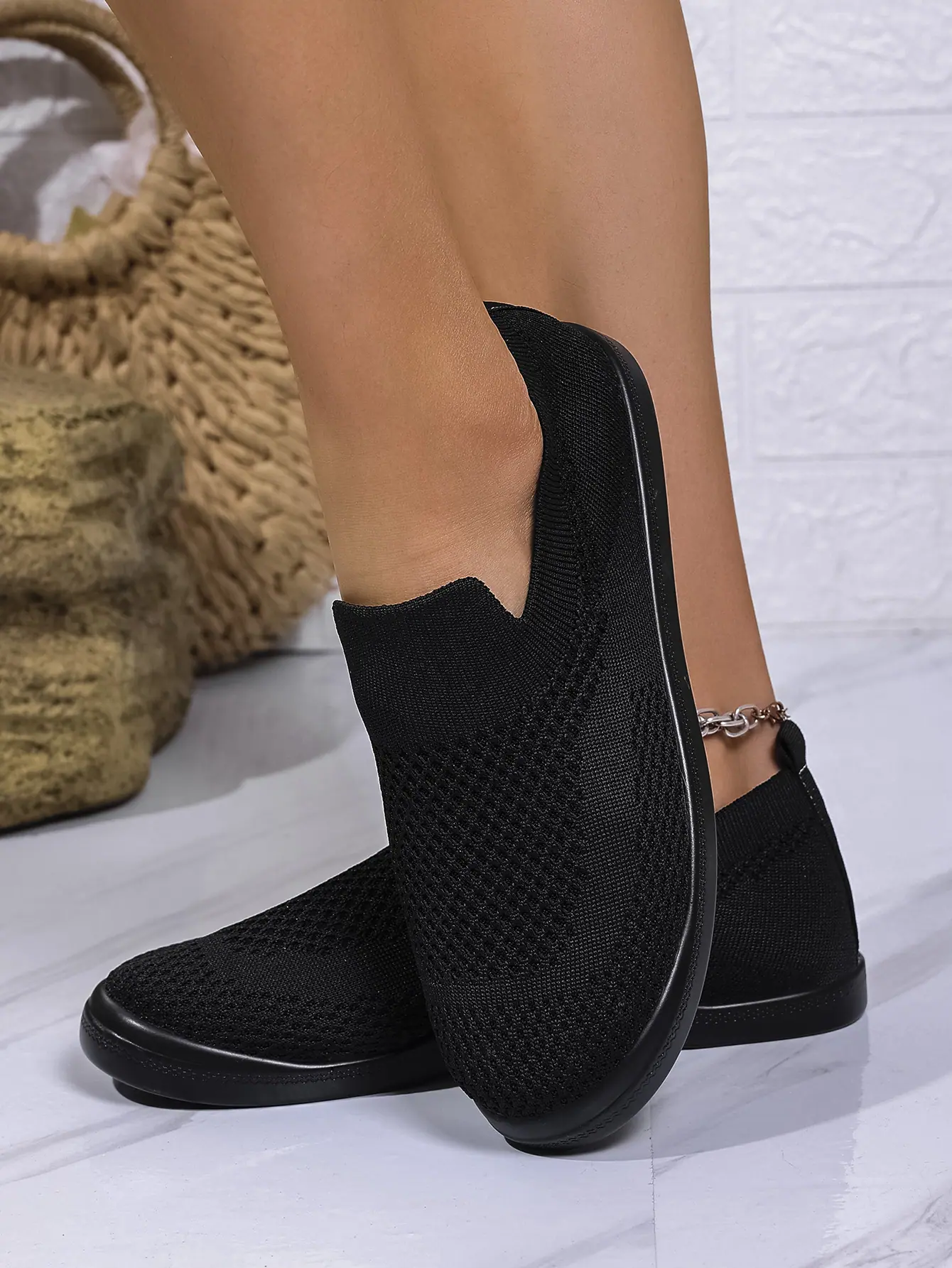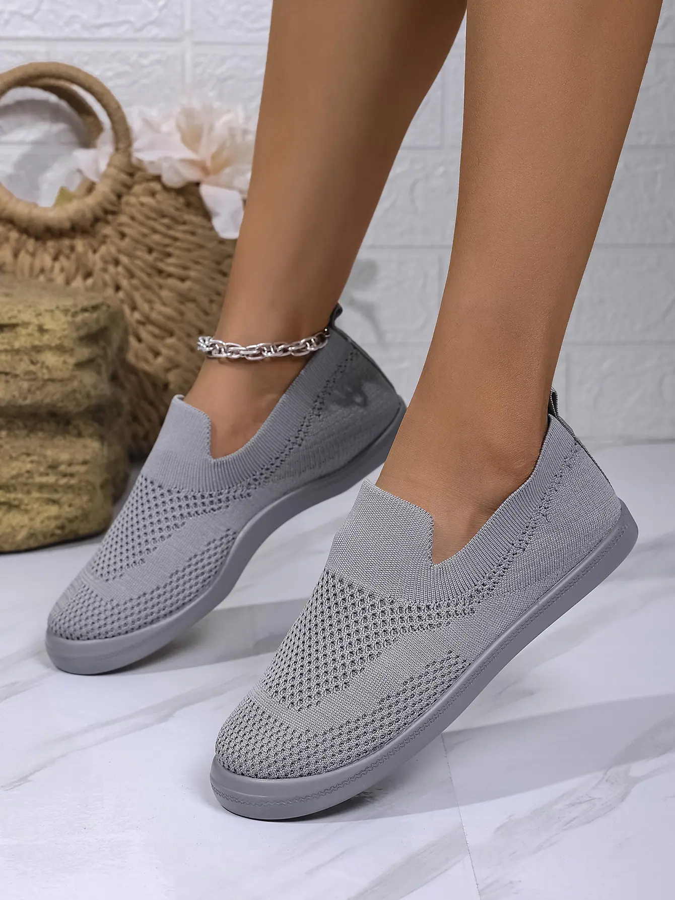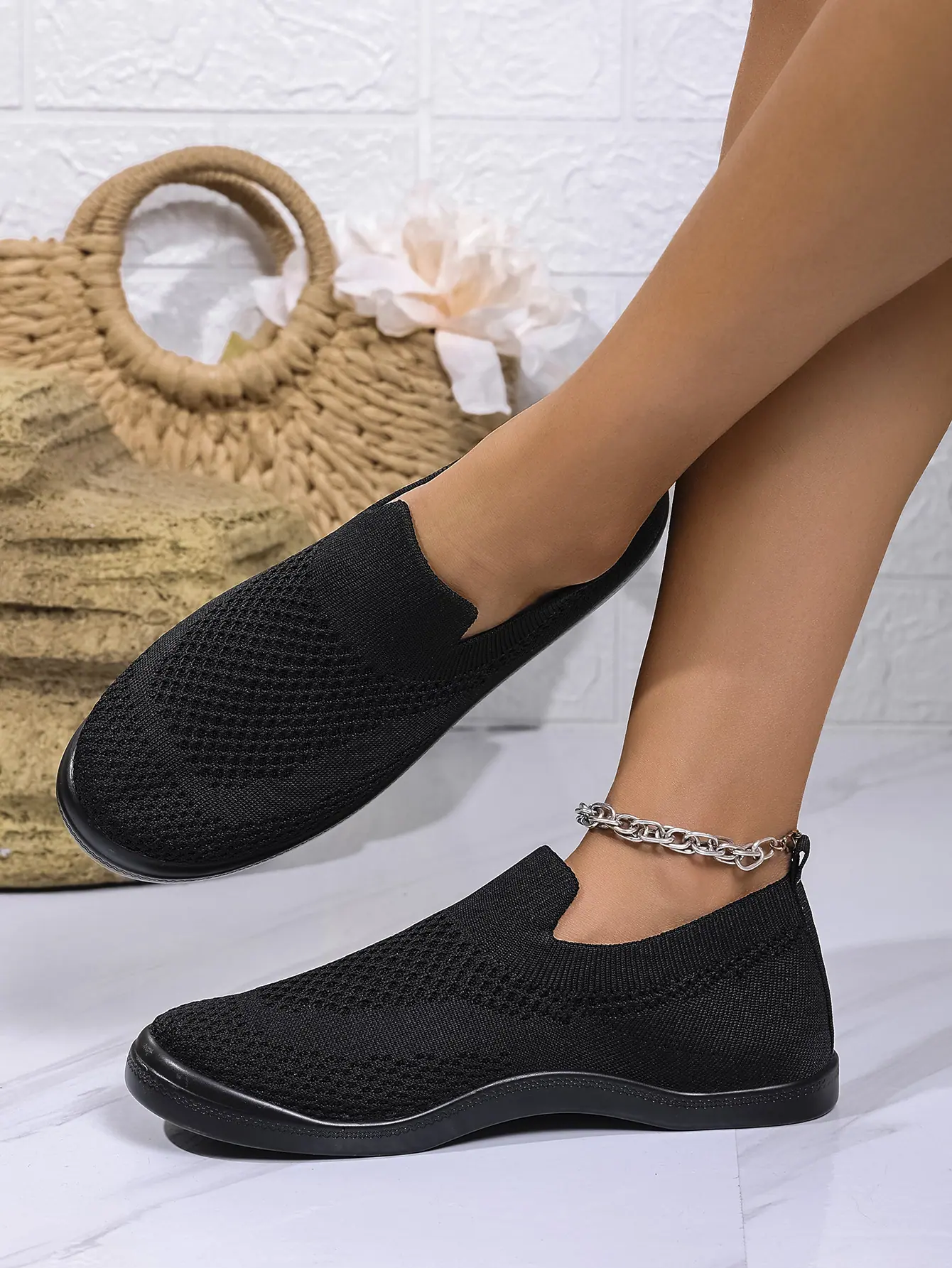 Zapatos casuales transfronterizos de punto de mosca perezoso transpirables sin cordones otoño nuevo talla grande suela plana para exteriores zapatos individuales de suela suave para mujer