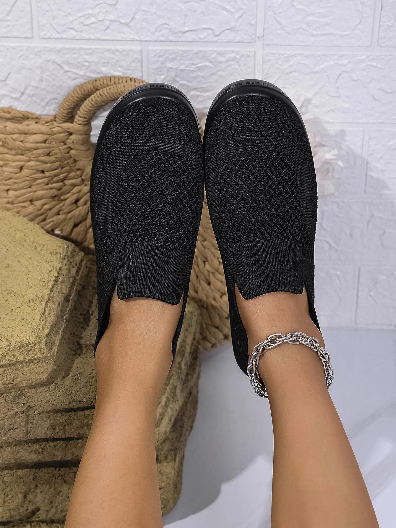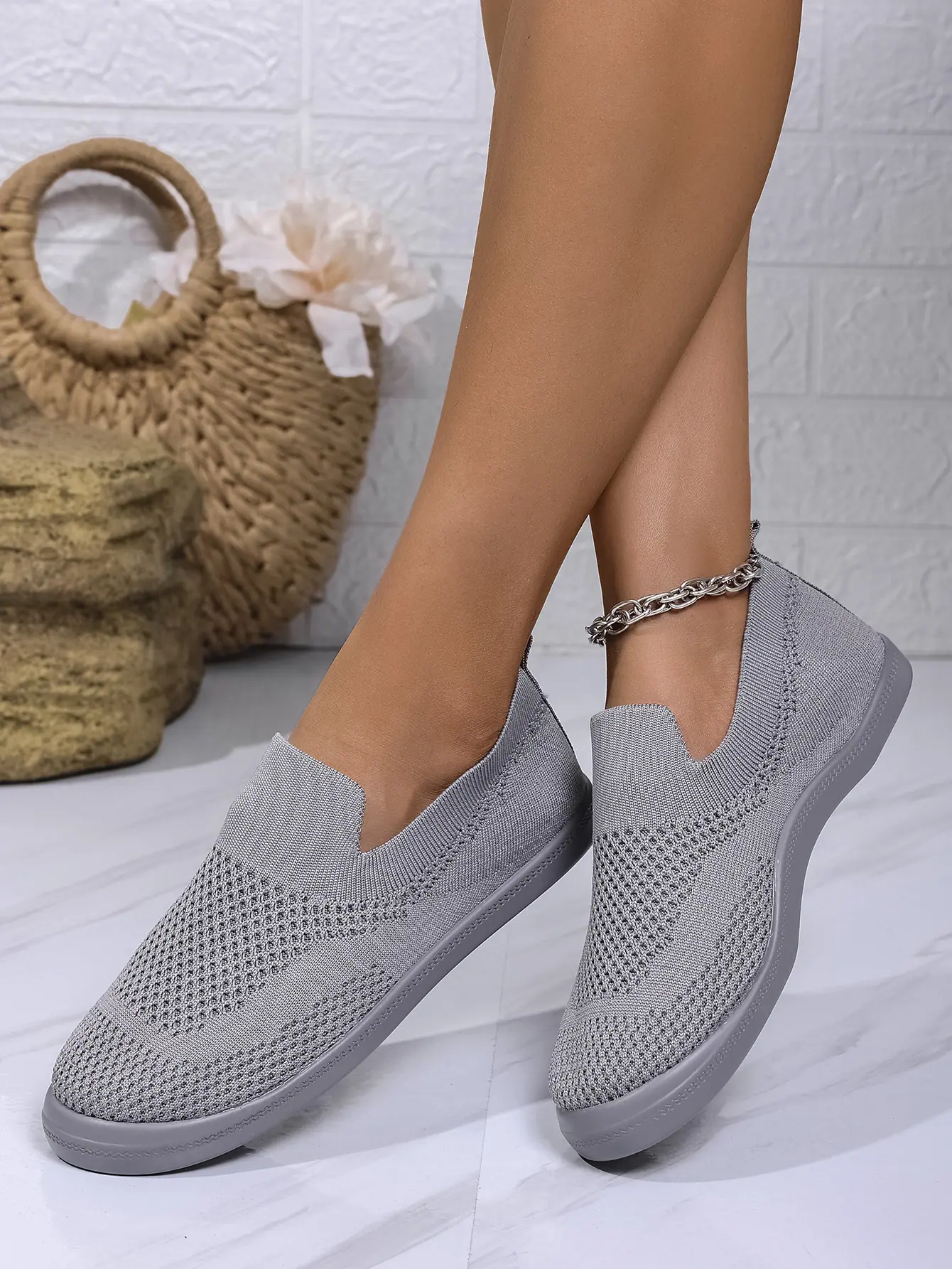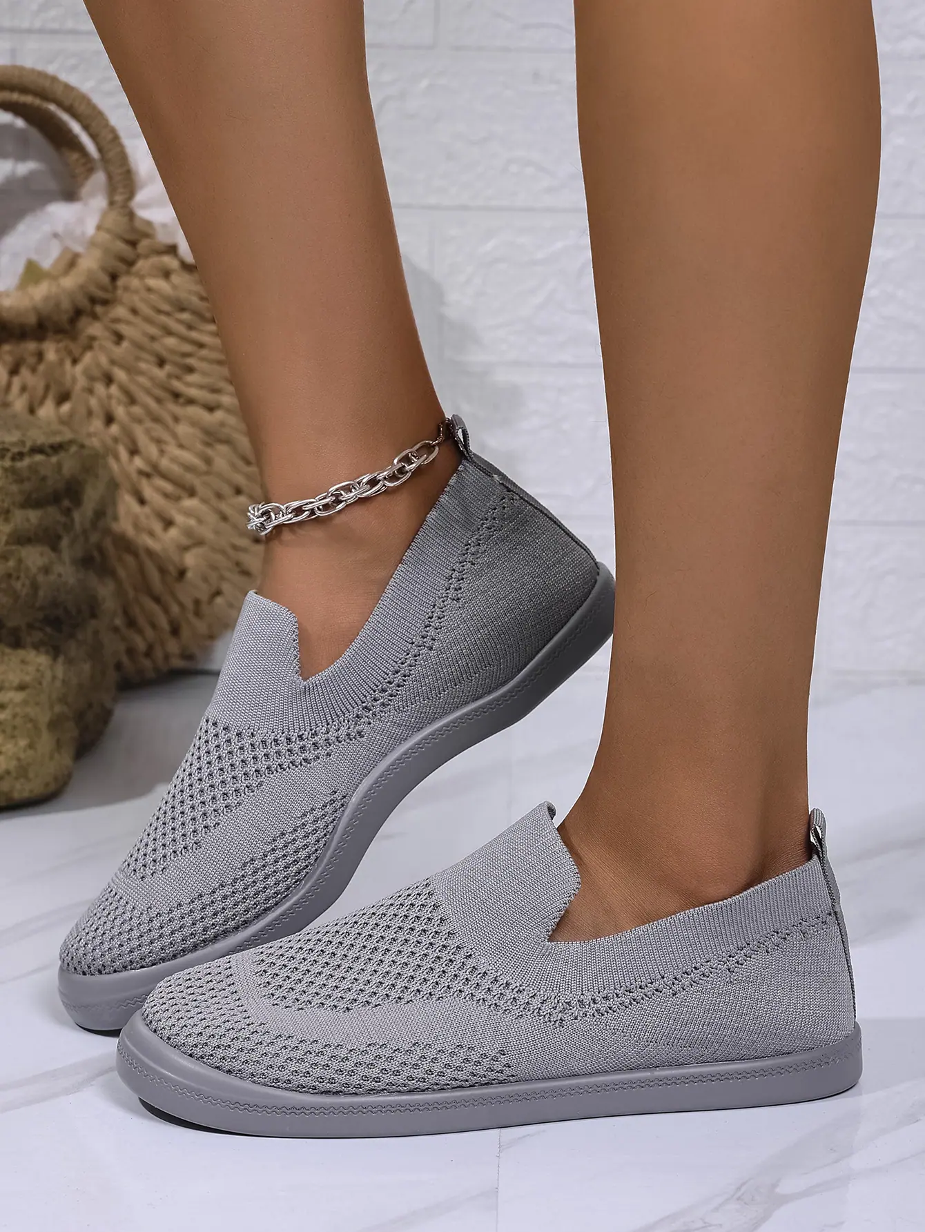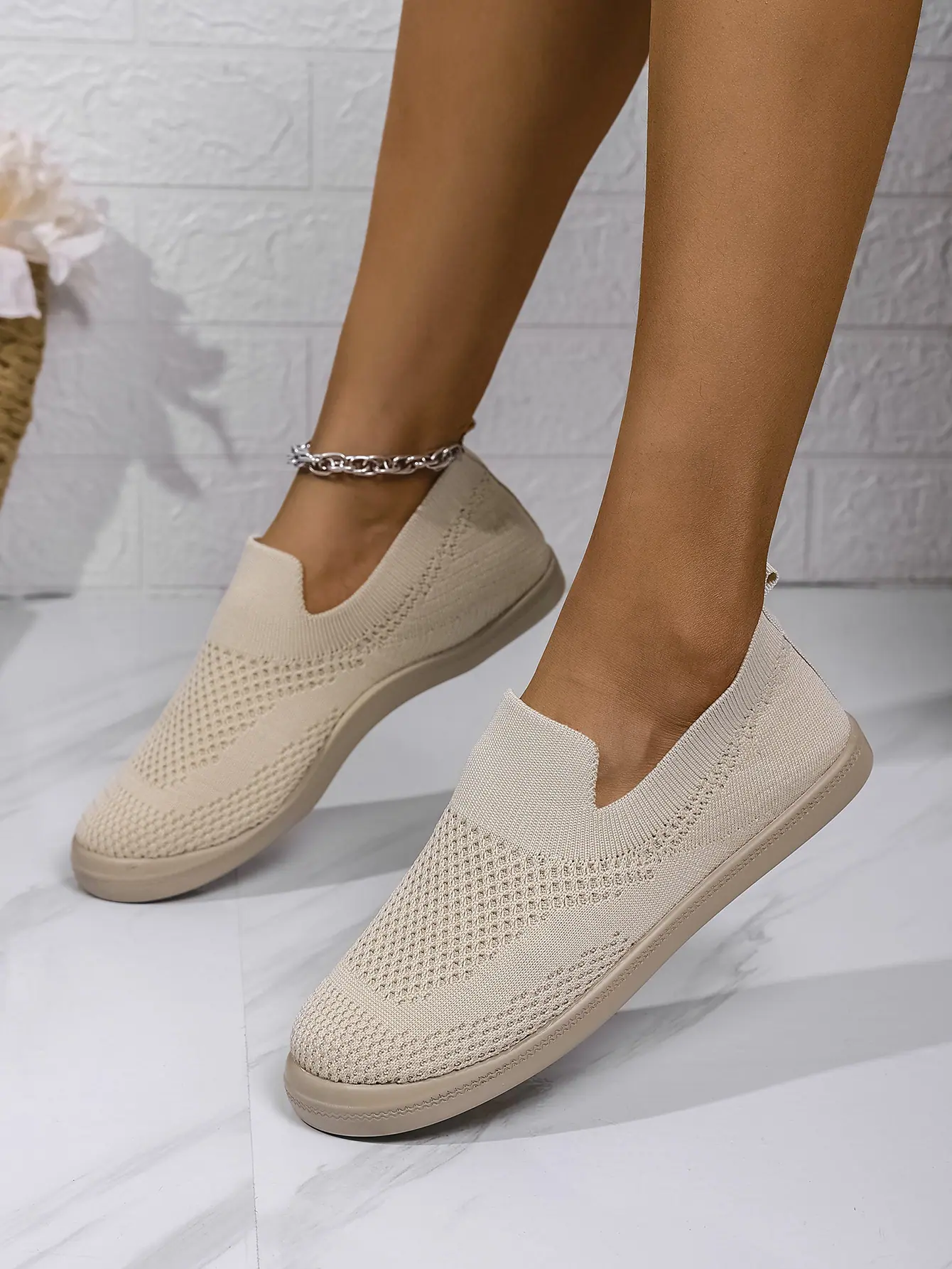 Zapatos casuales transfronterizos de punto de mosca perezoso transpirables sin cordones otoño nuevo talla grande suela plana para exteriores zapatos individuales de suela suave para mujer