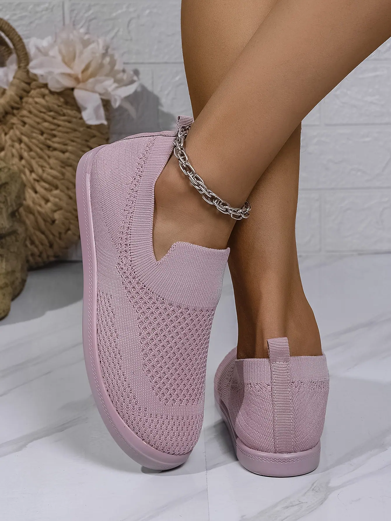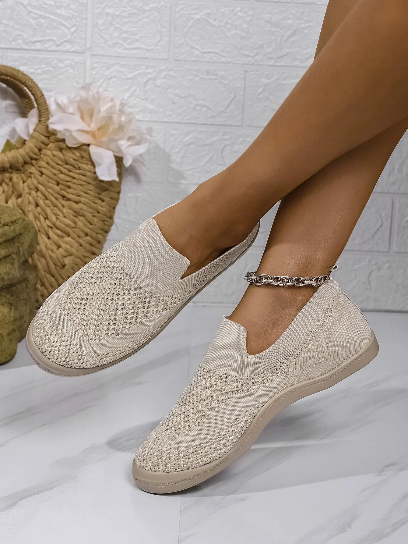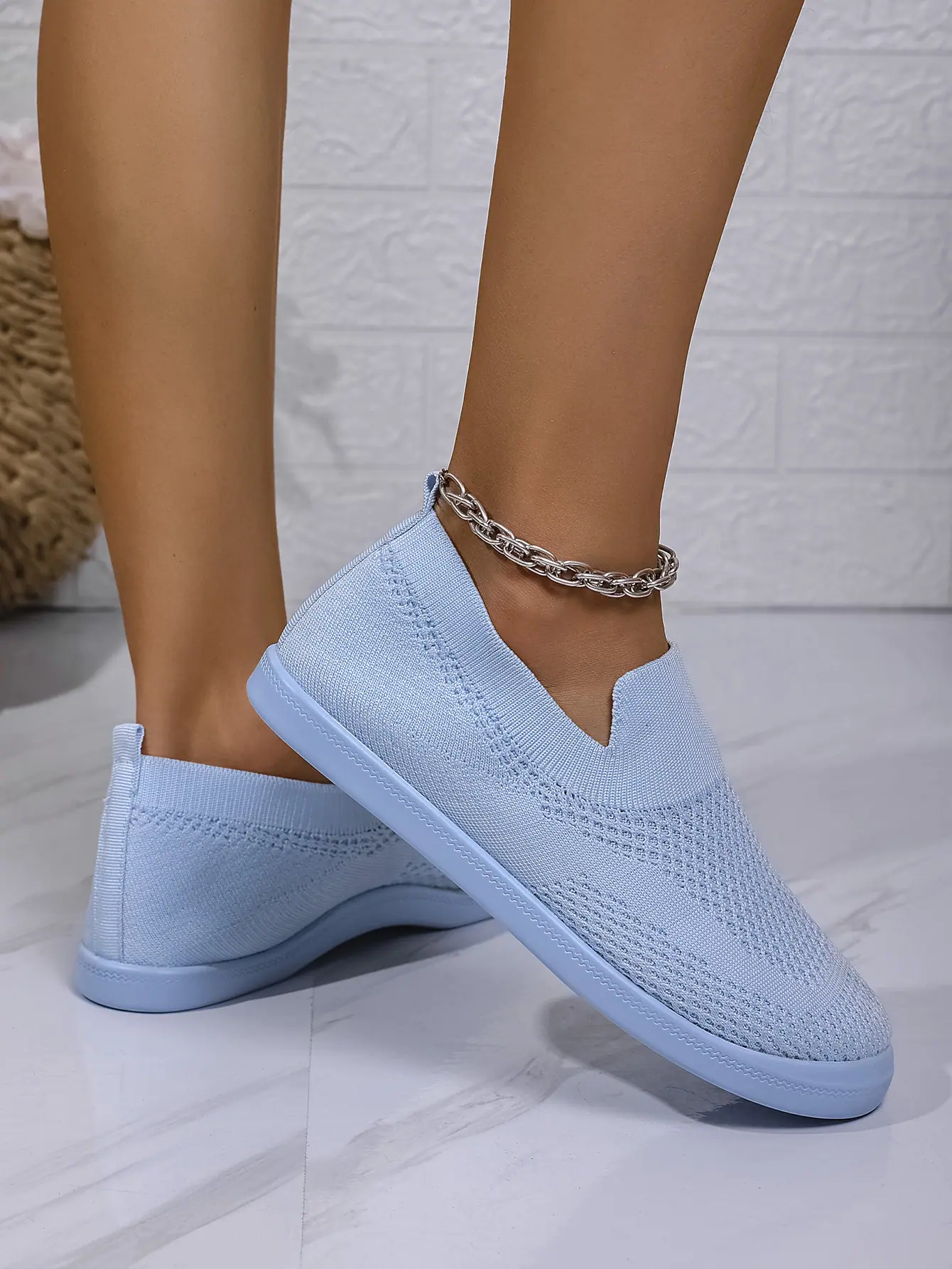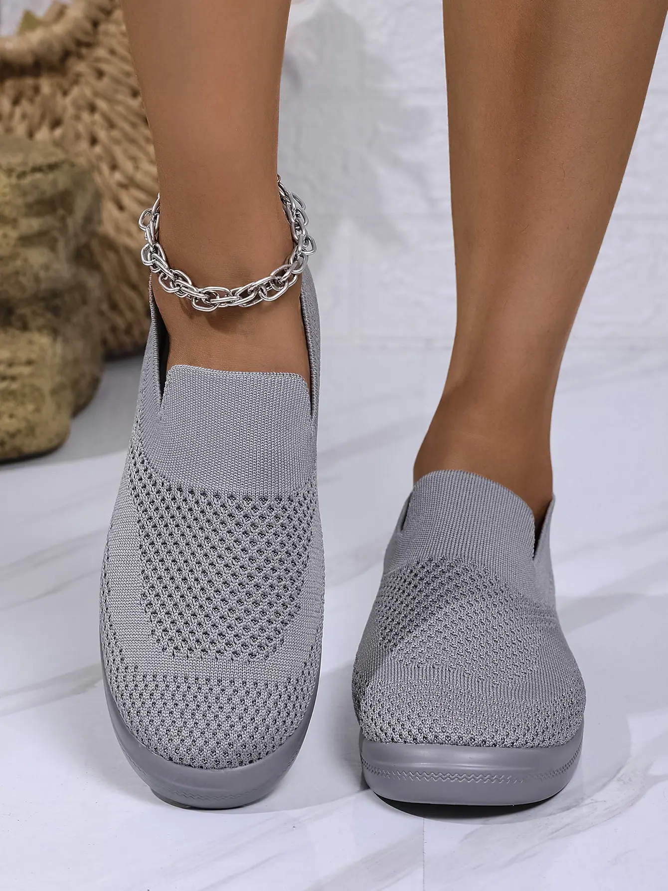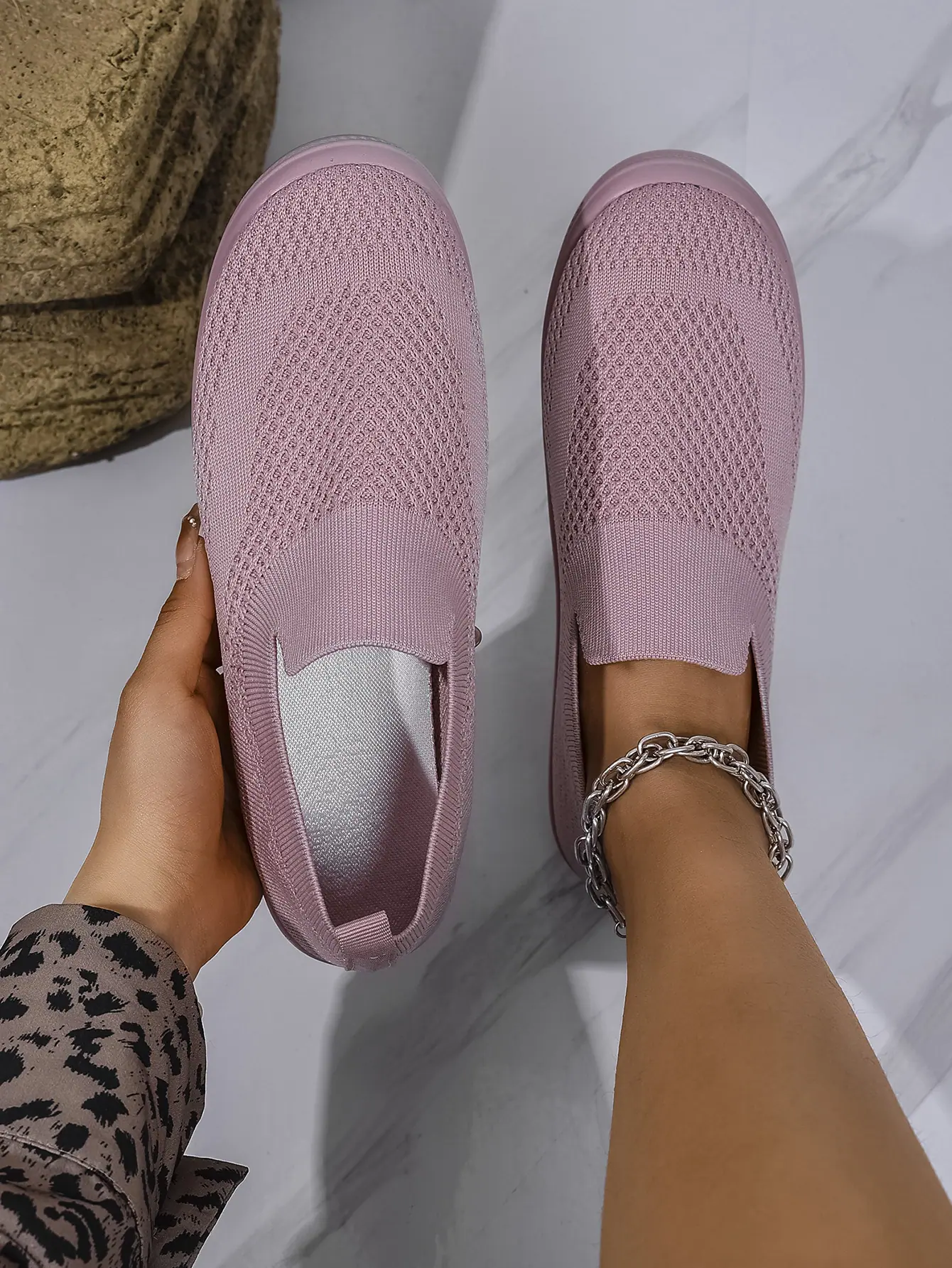 Zapatos casuales transfronterizos de punto de mosca perezoso transpirables sin cordones otoño nuevo talla grande suela plana para exteriores zapatos individuales de suela suave para mujer
