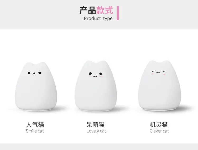 [nombre del producto] Lámpara de Silicona de Gatito Lindo (Funciona con Baterías)